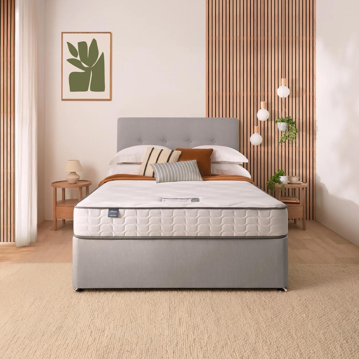 Return - Silentnight Divan Bed With Francisco Fabric Headboard, Double Grey with 2 Drawers