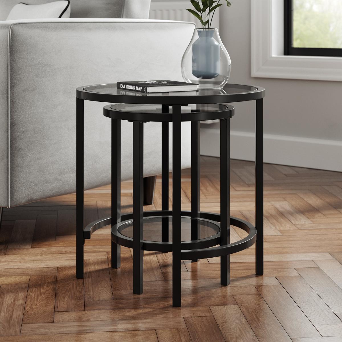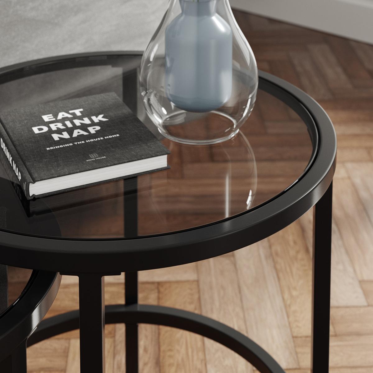 Return - Sofia Nest of Tables, Smoked Glass Black Black