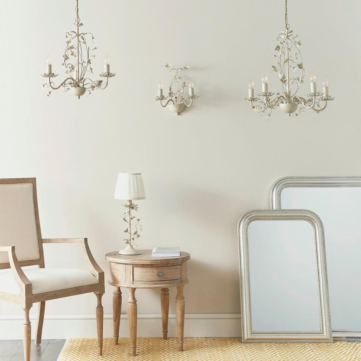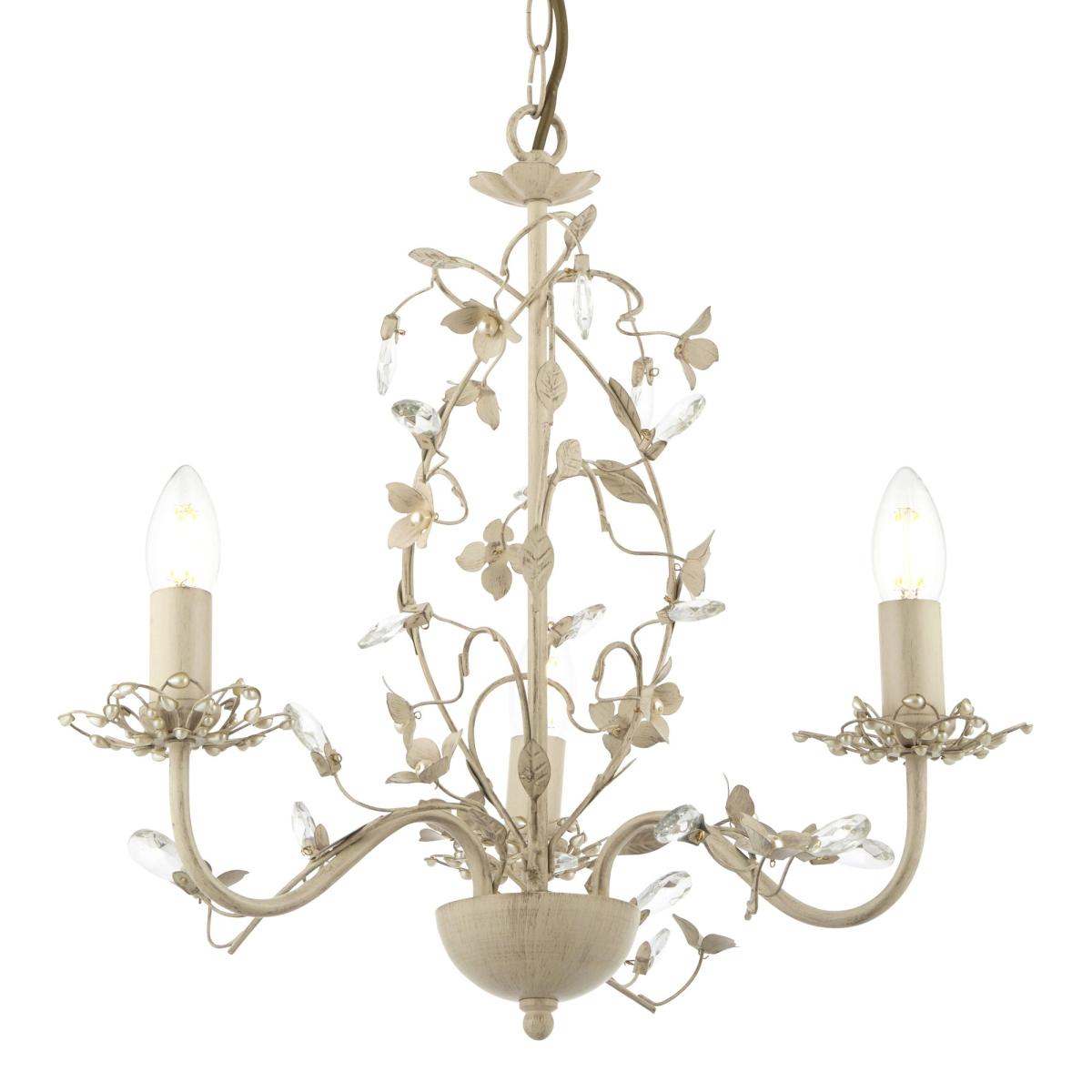 This product is priced at 10% less than a brand new model. Brand new price is £129. Returned product price is £116.10. Saving of £12.90. This is a returned item. It has previously been ordered, dispatched, cancelled and collected from our customers and then fully checked by our expert team to ensure that it is in 100% tip top condition and fully packaged. It was cancelled upon delivery and has therefore never been used. However, because this line is not strictly 'new', we have discounted it to clear!Decorated with intricate flower detail and glass drops, the Olive 3 light Chandelier is finished in gold and cream with beading detail. This fitting has an adjustable drop and can also convert to a flush fitting, as well as being compatible with dimmer switches.