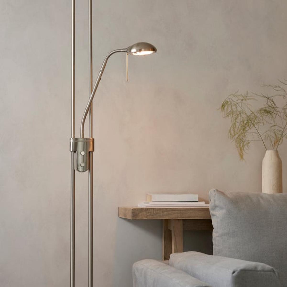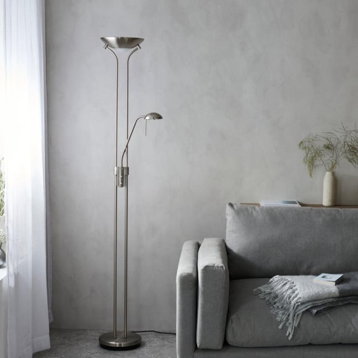 This product is priced at 10% less than a brand new model. Brand new price is £69. Returned product price is £62.10. Saving of £6.90. This is a returned item. It has previously been ordered, dispatched, cancelled and collected from our customers and then fully checked by our expert team to ensure that it is in 100% tip top condition and fully packaged. It was cancelled upon delivery and has therefore never been used. However, because this line is not strictly 'new', we have discounted it to clear!Bring a touch of elegance to your home with this stunning floor lamp that has been beautifully designed with an opal up lighter shade and an adjustable reading arm that’s satin chrome plated. This practical light offers a double rotary dimmer switch to create the perfect ambience inside any interior. Compatible to use with LED and halogen lamps. This ceiling fitting floor lamp comes with a 2 year guarantee. Top Light Requires: Halogen R7s 230W or LED bulb. Reading Light Requires: Halogen G9 22W or LED bulb. Please note: Bulbs are not included. Don’t forget your bulb! We sell a variety of light bulbs that you can browse online now. Please note: This light includes a dimmer switch.