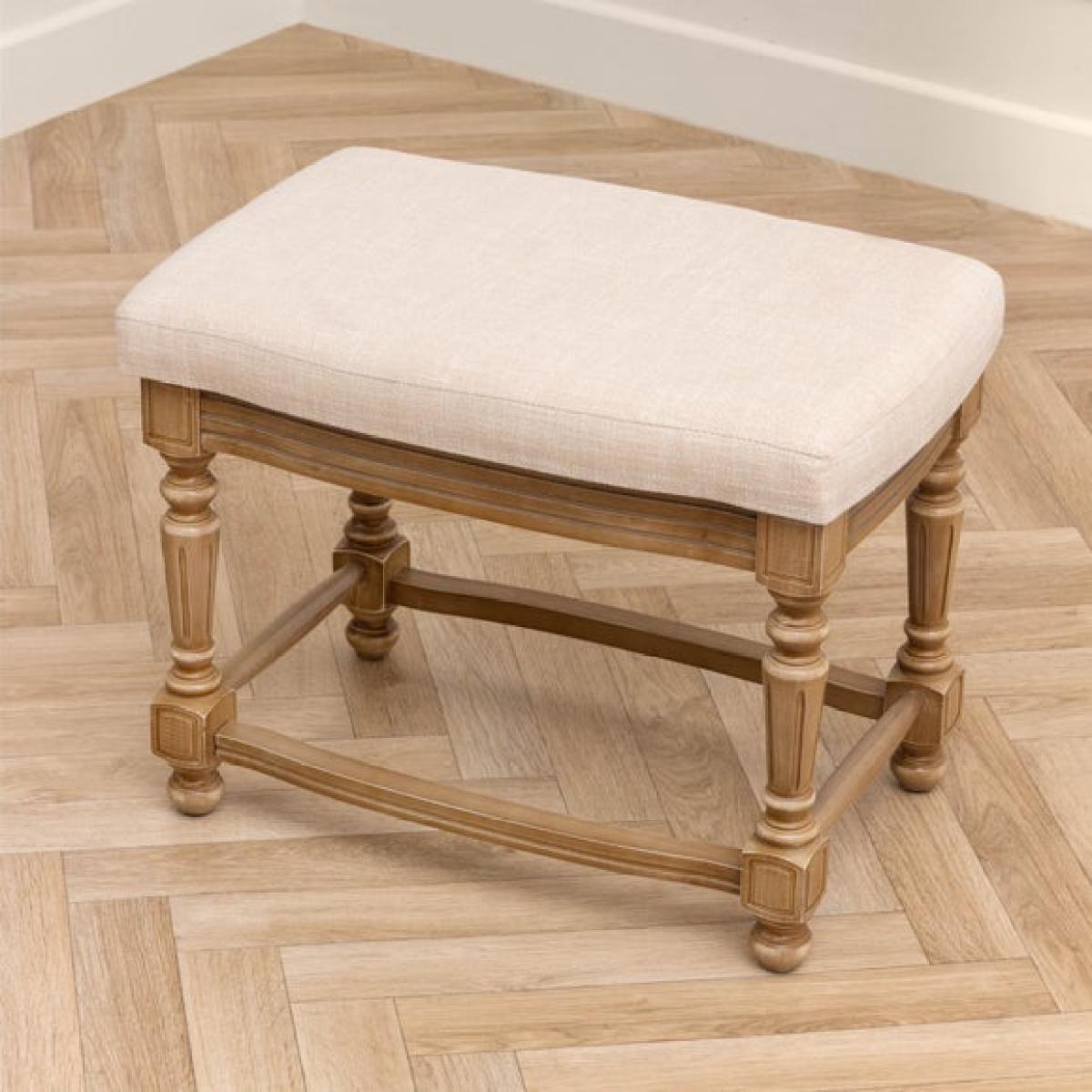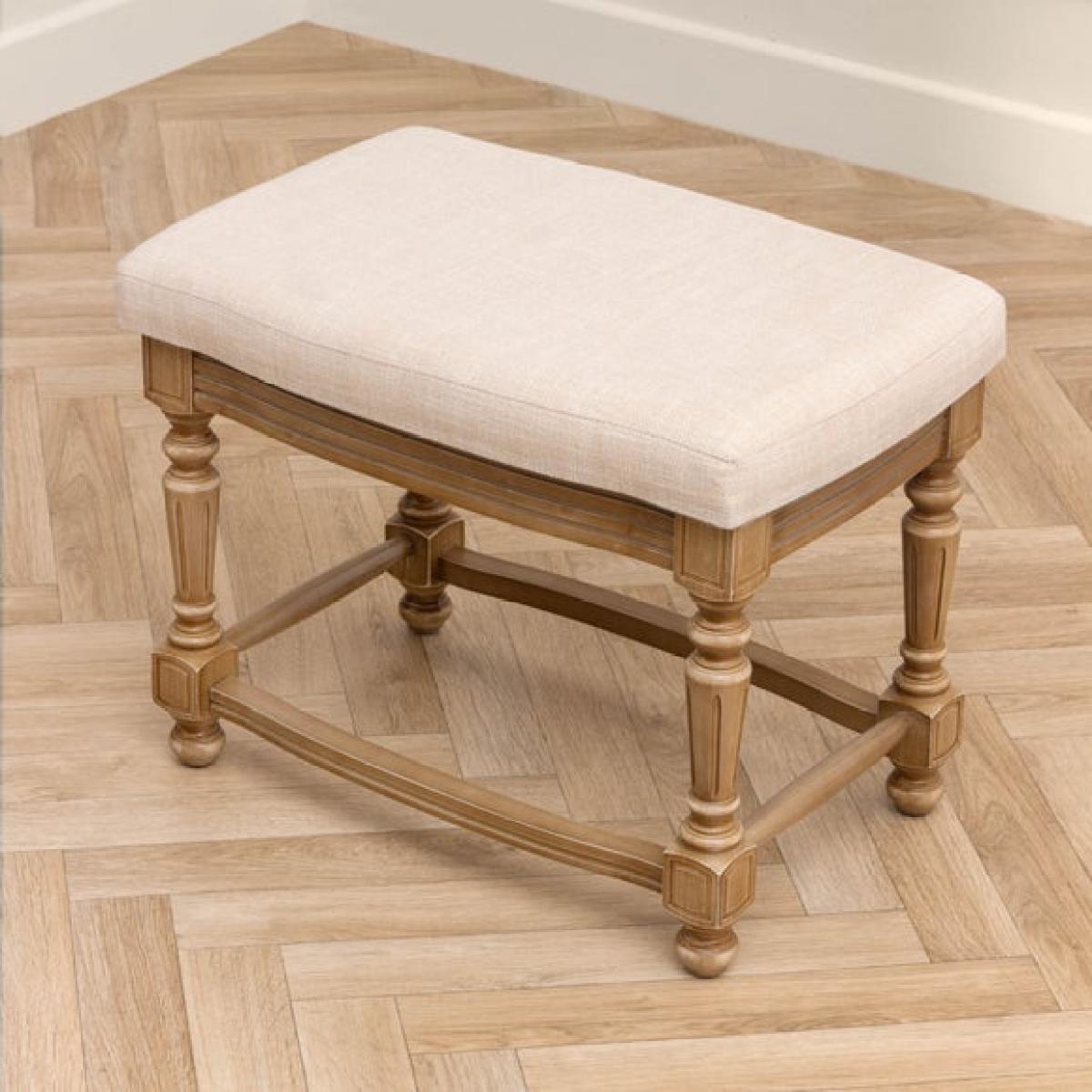 This product is priced at 10% less than a brand new model. Brand new price is £99. Returned product price is £89.10. Saving of £9.90. This is a returned item. It has previously been ordered, dispatched, cancelled and collected from our customers and then fully checked by our expert team to ensure that it is in 100% tip top condition and fully packaged. It was cancelled upon delivery and has therefore never been used. However, because this line is not strictly 'new', we have discounted it to clear! * Timeless style footstool * Soft upholstery * Oak stained carved legs Charming and compact, this rectangular footstool is perfect for adding a touch of country elegance to your home. The woven fabric upholstery brings a cosy, tactile feel, while the carved wooden legs, finished in a warm oak stain, lend a traditional touch. Its petite proportions make it ideal for smaller spaces, such as under a dressing table or beside a favourite chair, without compromising on comfort or style.