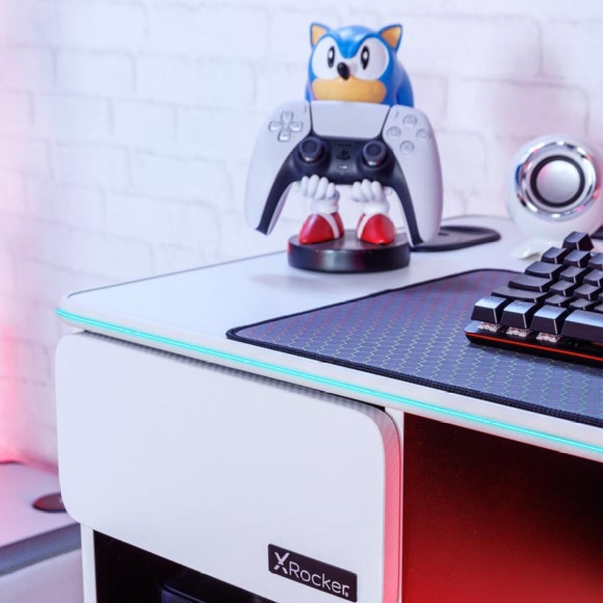 This product is priced at 10% less than a brand new model. Brand new price is £169. Returned product price is £152.10 Saving of £16.90. This is a returned item. It has previously been ordered, dispatched, cancelled and collected from our customers and then fully checked by our expert team to ensure that it is in 100% tip top condition and fully packaged. It was cancelled upon delivery and has therefore never been used. However, because this line is not strictly 'new', we have discounted it to clear! * Illuminated Neo Fibre LED technology * Wireless charging pad * Storage compartments: drawer unit and large open space * Futuristic carbon fibre finish * 1 year guarantee included Light up your gaming set up with X Rocker’s innovative Neo Fibre LED lighting technology and this futuristic carbon fibre effect design. Built for style and practicality, this gaming desk is enhanced with high tech functionalities and versatile storage, perfect for displaying gaming accessories in the open space and snacks and controllers in the neat drawer. Equipped with wireless charging technology, you’ll never have to worry about your battery being on low or disconnecting as the built-in charge pad delivers up to 15W of charge power once activated (USB power supply not included, use in conjunction with the manufacturer's phone charger for best results). To boost the ultra-cool looks in your den, the innovative LED lighting provides a unique and colourful glow to your gaming set up with multi-colour options to choose from. Powered by a built-in control panel that connects via USB Type-A cable to your power supply (wall adapter or power bank and remote control not included).