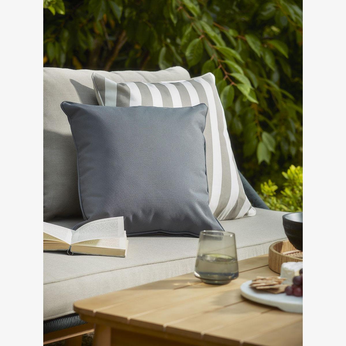 Simplicity meets style in our Reva Outdoor Cushion. In a block pewter grey tone, the neutrality allows this cushion to blend seamlessly with a variety of garden furniture sets. Layer up with throws for extra warmth and enjoy the long summer days in the cosiest way.