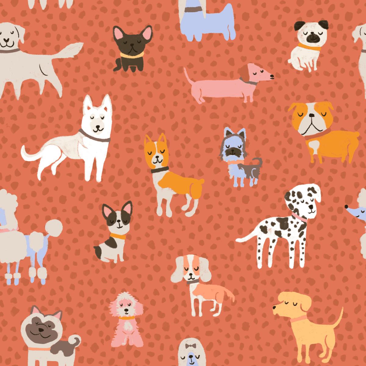 Reversable Dogs Duvet Cover Set - Coral / Double