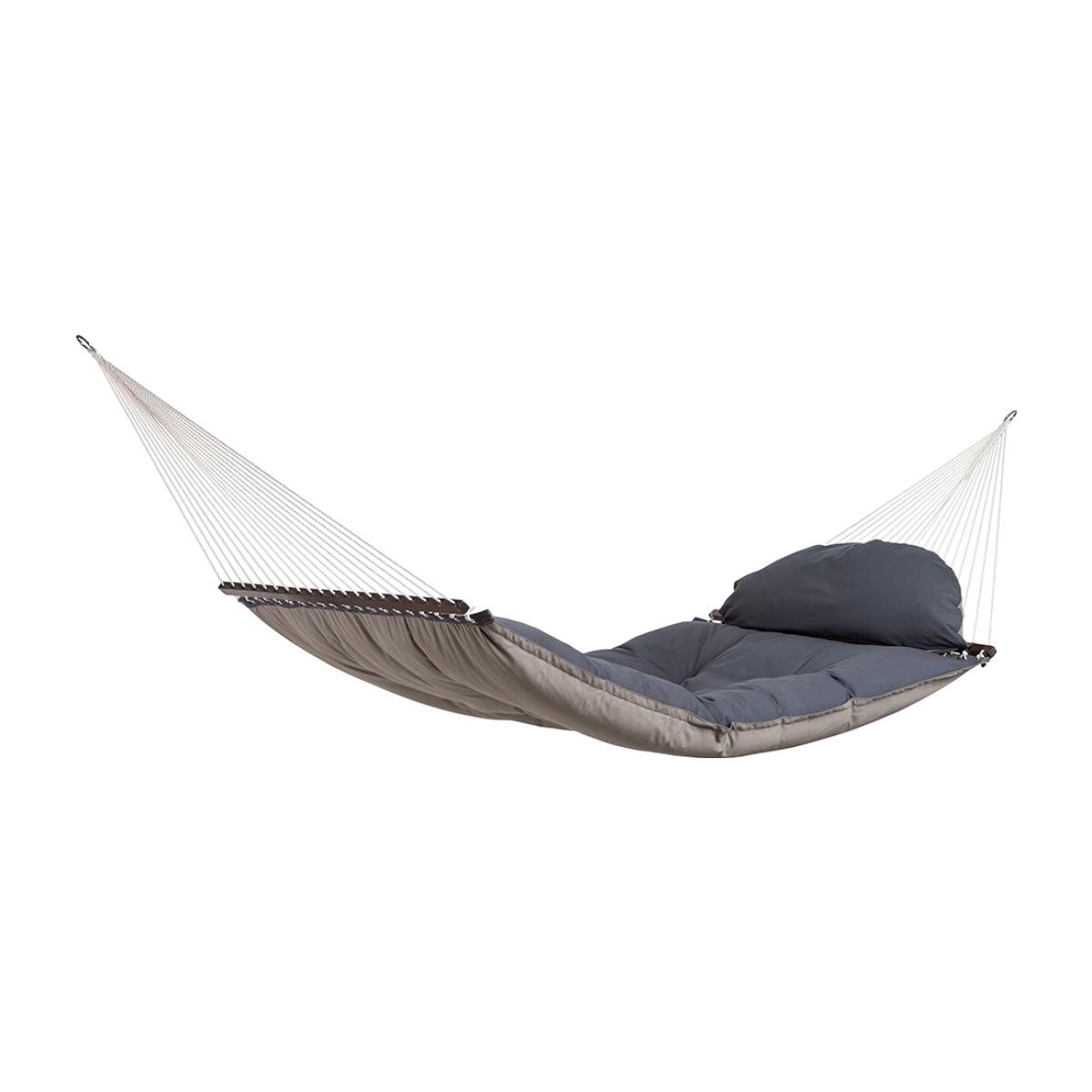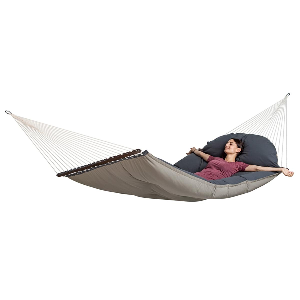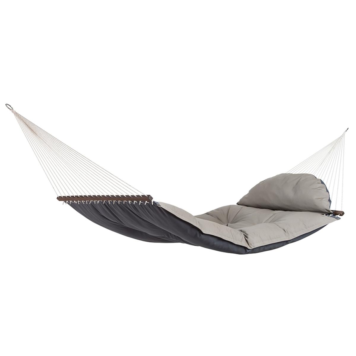 Possibly the most luxurious hammock you'll ever lay on, the Reversible Fat Hammock from Amazonas will leave you feeling completely rested and relaxed. Especially designed with a thick cushioned filling, a large removable pillow and a spreader bar at either end, snuggle into the soft fabric and enjoy the glorious summer sunshine in pure comfort. With the option to flip the bed over; choose from two gorgeous colours, Anthracite grey or taupe. Made from a solution dyed acrylic to protect against staining, the weatherproof fabric and padding ensure your hammock is protected whatever the weather! Not just for outside, bring your hammock indoors and enjoy swinging at any time of day. With the option to attach to a wall, secure between two trees or pair with the Olymp stand, hanging your hammock has never been simpler. With so much to offer, you'll wonder why it took you so long to invest in an Amazonas hammock!.
