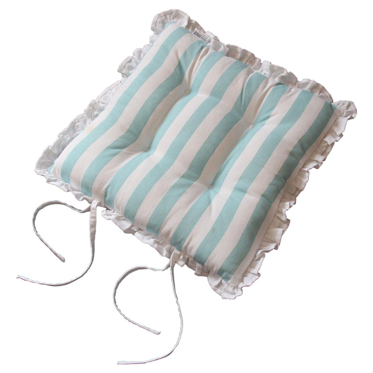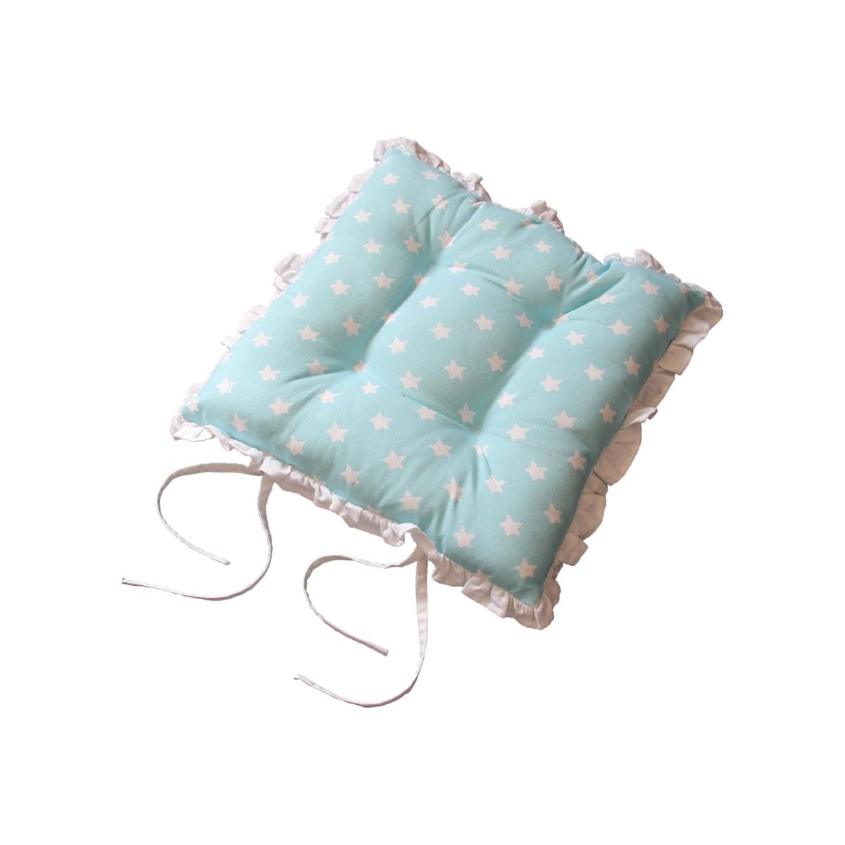 These beautifully hand-made chair pads with frills are fancy home accessories and a absolute must for your garden chairs, bench or seating area. Or why not add one of them to a newly decorated nursery on a rocking chair There are many designs available that fit both, boys and girls rooms such as Blue Stars, Cup Cakes, Owls, Ballerina and many more. The seat pads have a plain or subtle patterned side and one side with a more colourful design, which makes them perfect for many occasions and room concepts. Use them for a dinner party or festive meal with your family and friends or decorate your kids room with the more fancy side. Select your favourite seat cushion from 8 unique designs.