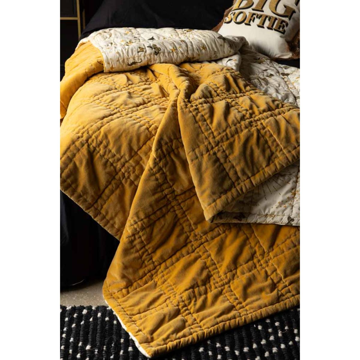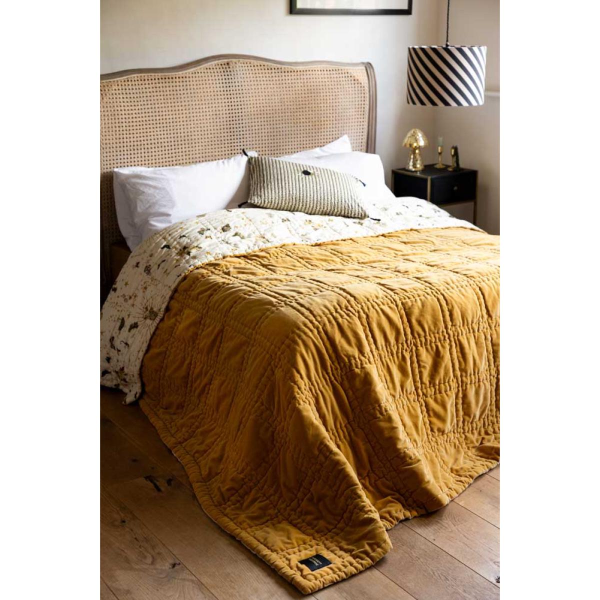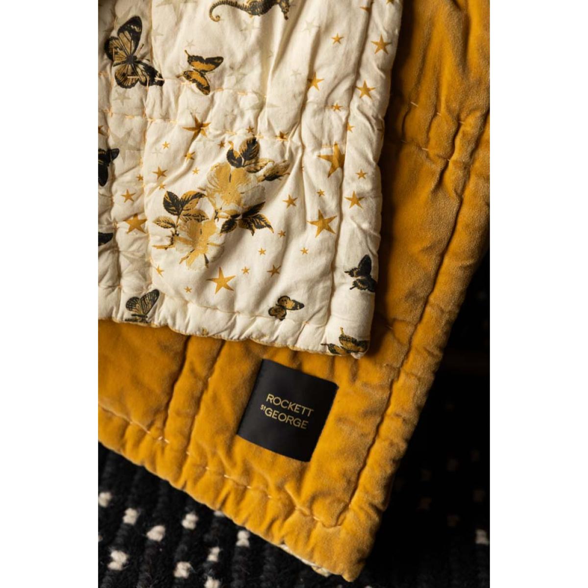 Meet the Reversible Gold Rock & Rose Throw — the ultimate blend of comfort, character, and luxe style. This beauty is totally reversible, with Jane Rockett’s bold, eclectic Jane's Rose print on one side and a rich mustard velvet on the other for a splash of warmth and vintage glam. Team RSG is obsessed. It’s king-size, irresistibly soft, and perfect for snuggling. Drape this throw over your bed or sofa for an instant style hit and a forever piece you’ll love for years to come. Statement-making, mood-lifting, and unapologetically unique — just how we like it. - Reversible Gold Rock & Rose Throw - Measures: W220cm x L240cm- Materials: Cotton