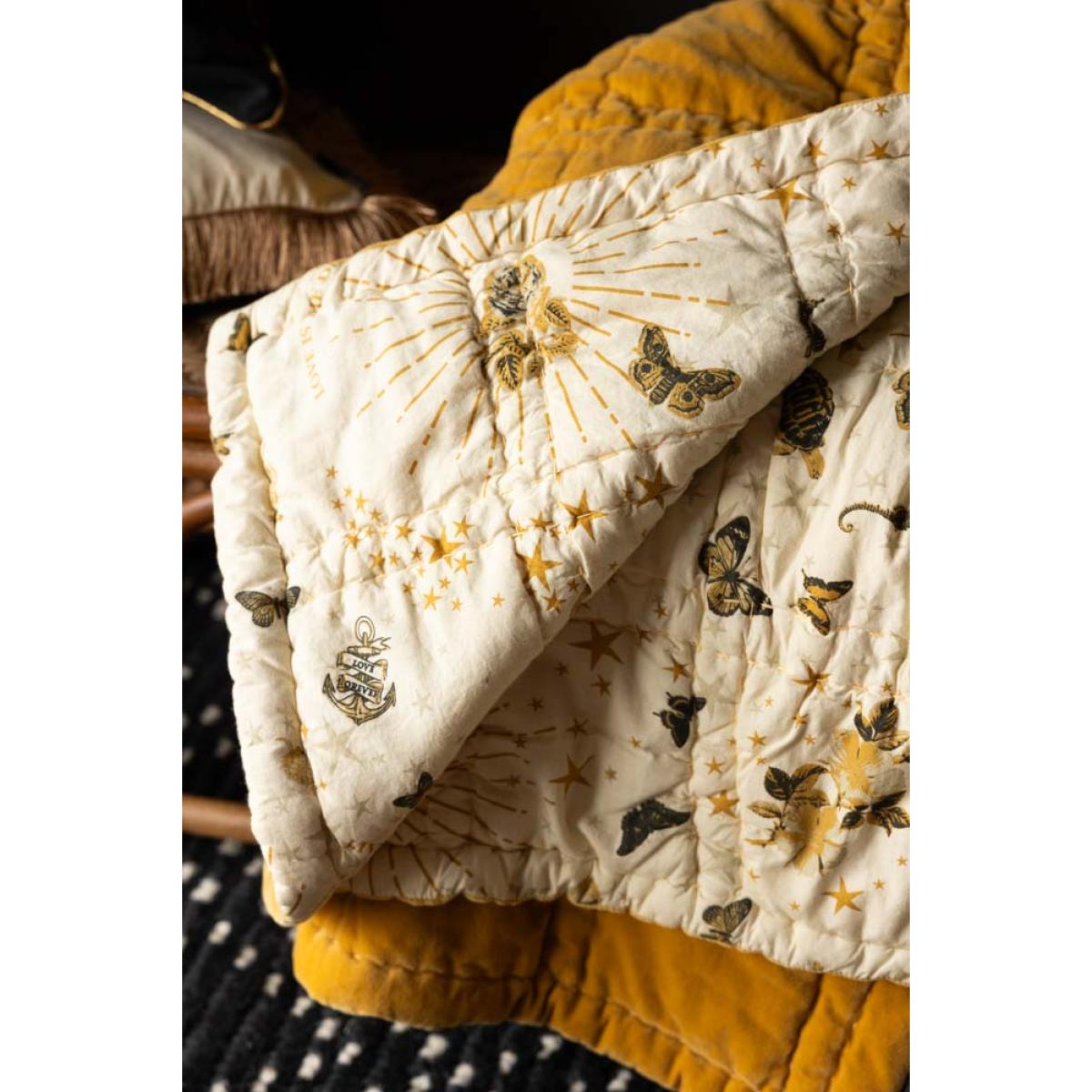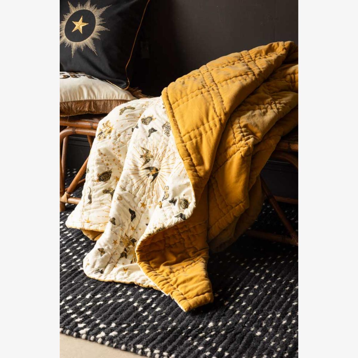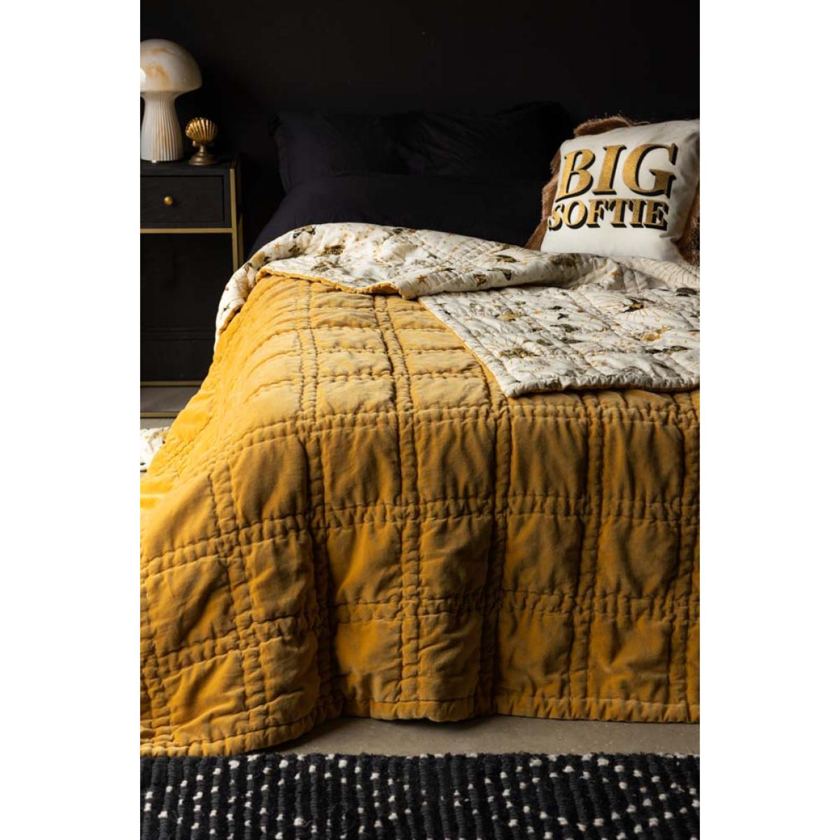 Meet the Reversible Gold Rock & Rose Throw — the ultimate blend of comfort, character, and luxe style. This beauty is totally reversible, with Jane Rockett’s bold, eclectic Jane's Rose print on one side and a rich mustard velvet on the other for a splash of warmth and vintage glam. Team RSG is obsessed. It’s king-size, irresistibly soft, and perfect for snuggling. Drape this throw over your bed or sofa for an instant style hit and a forever piece you’ll love for years to come. Statement-making, mood-lifting, and unapologetically unique — just how we like it. - Reversible Gold Rock & Rose Throw - Measures: W220cm x L240cm- Materials: Cotton