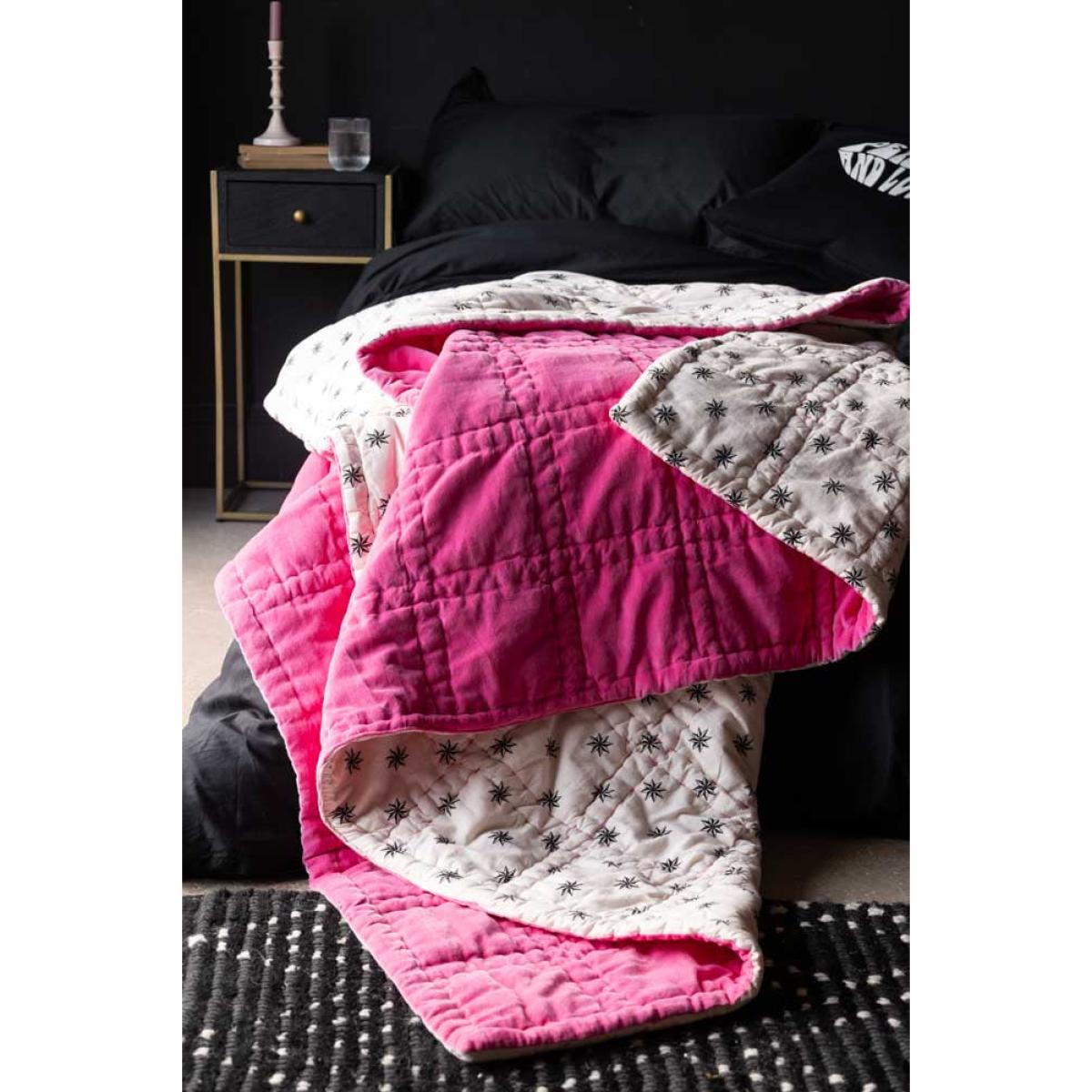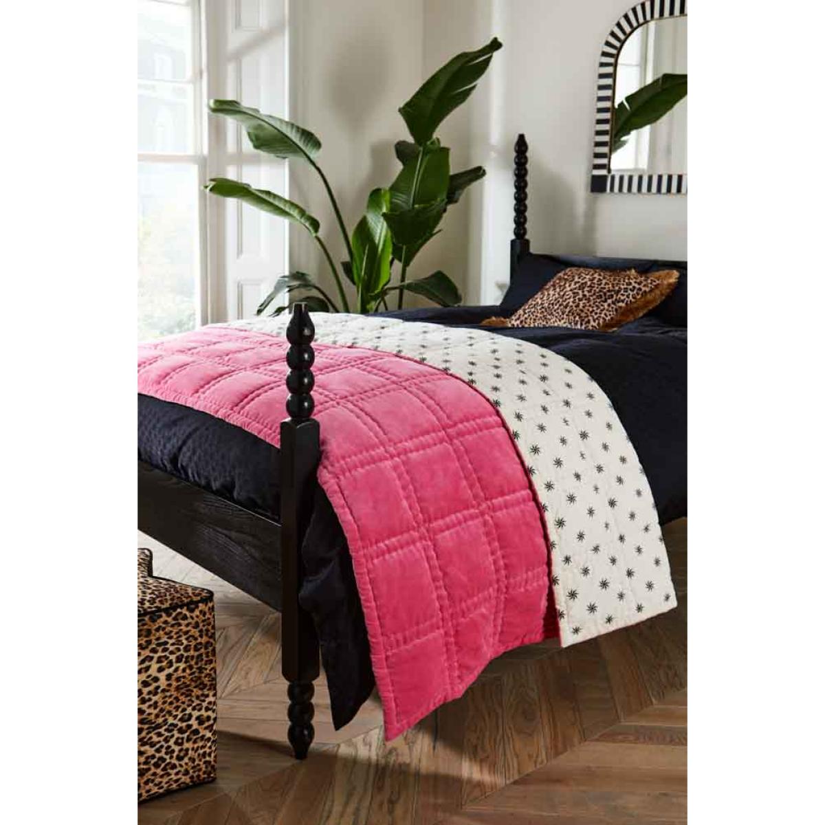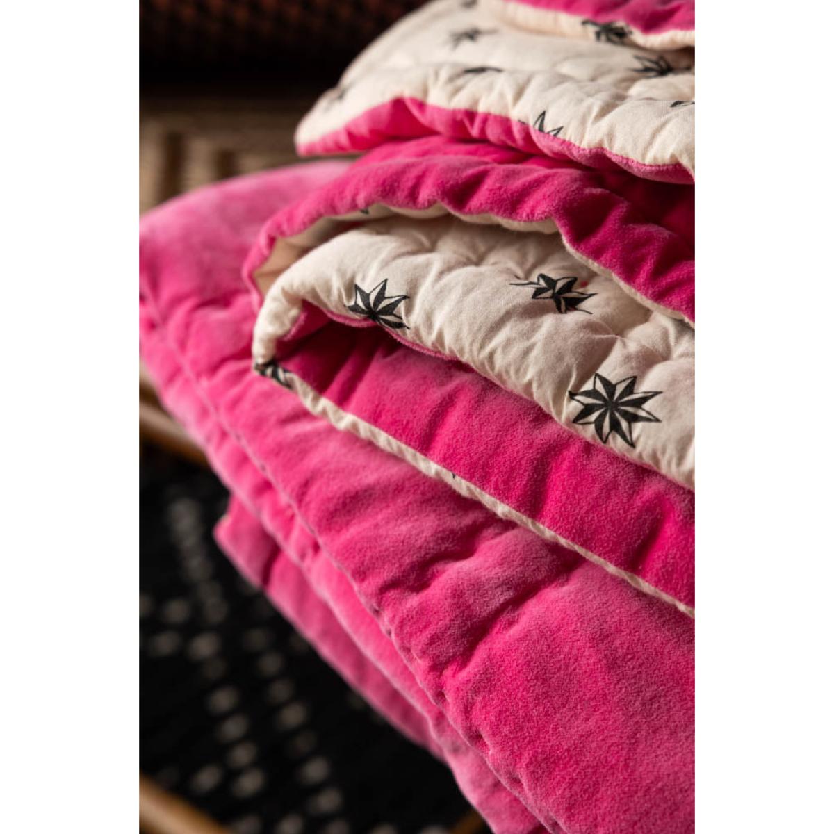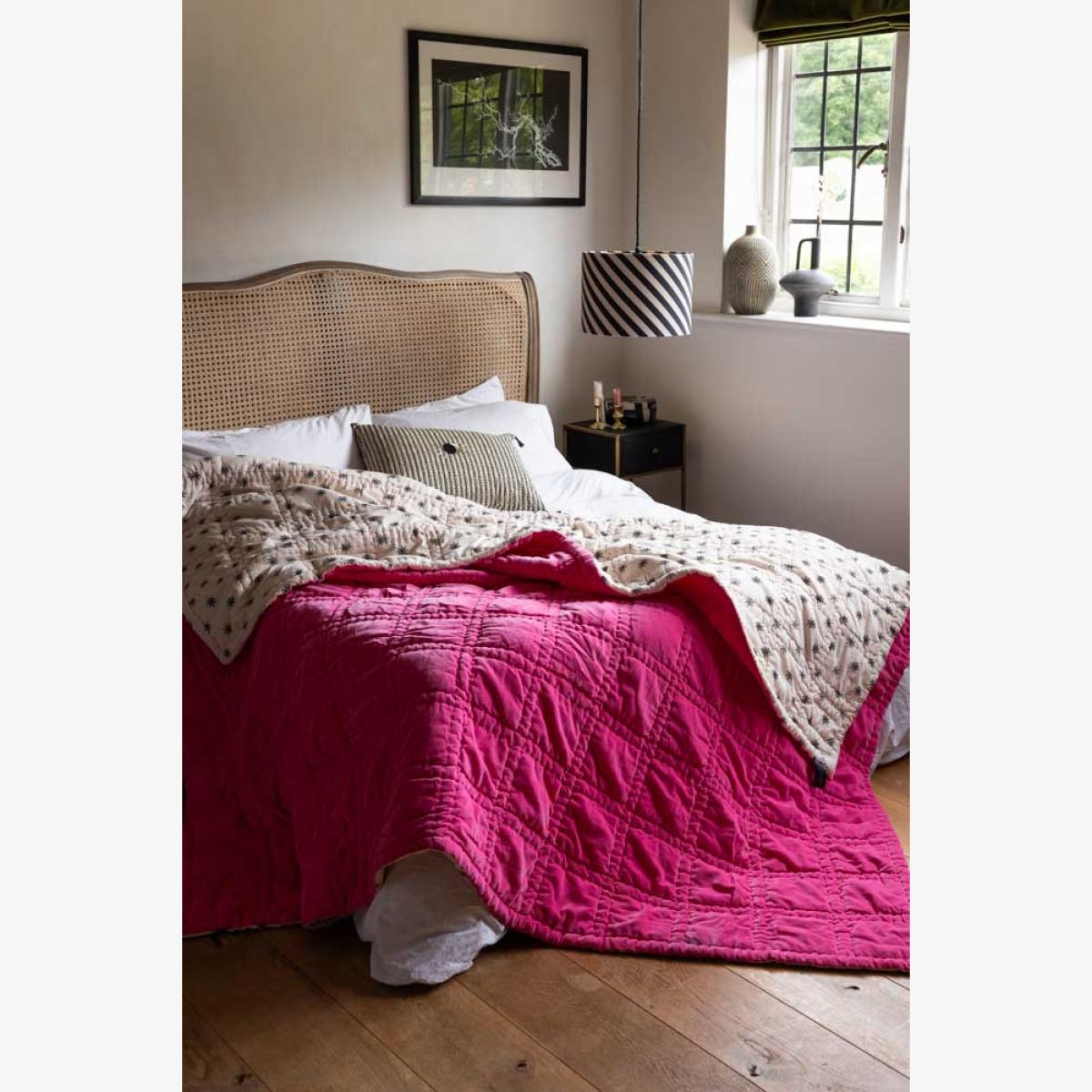 This gorgeous Pink Star Reversible Throw is designed to dazzle, captivate and comfort. Created using a confident pop of colour that’s just perfect for making everyday moments brighter, one side features an opulent confection of vibrant pink velvet to add splash of magical sophistication to any room, while the reverse consists of a chic monochrome star pattern to provide a stylish contrast. It gives you the flexibility to switch up your style with ease, whether this is your go-to piece for snuggling down with for an evening of Netflix, or using in the bedroom as a mood-boosting statement piece that ties the entire room together. - Reversible Hot Pink Star Throw- Measures: 220cm x 240cm - Rockett St George Exclusive Design - Material: 100% Cotton and Velvet - Velvet is dry clean only - As a raised pile fabric, velvet can show subtle crushing lines and bruising from the manufacturing process - this is not considered a flaw. - Please note that this throw features hand-dyed velvet and artisan block printed fabric, with variation in colour and print expected. <!--td -->
