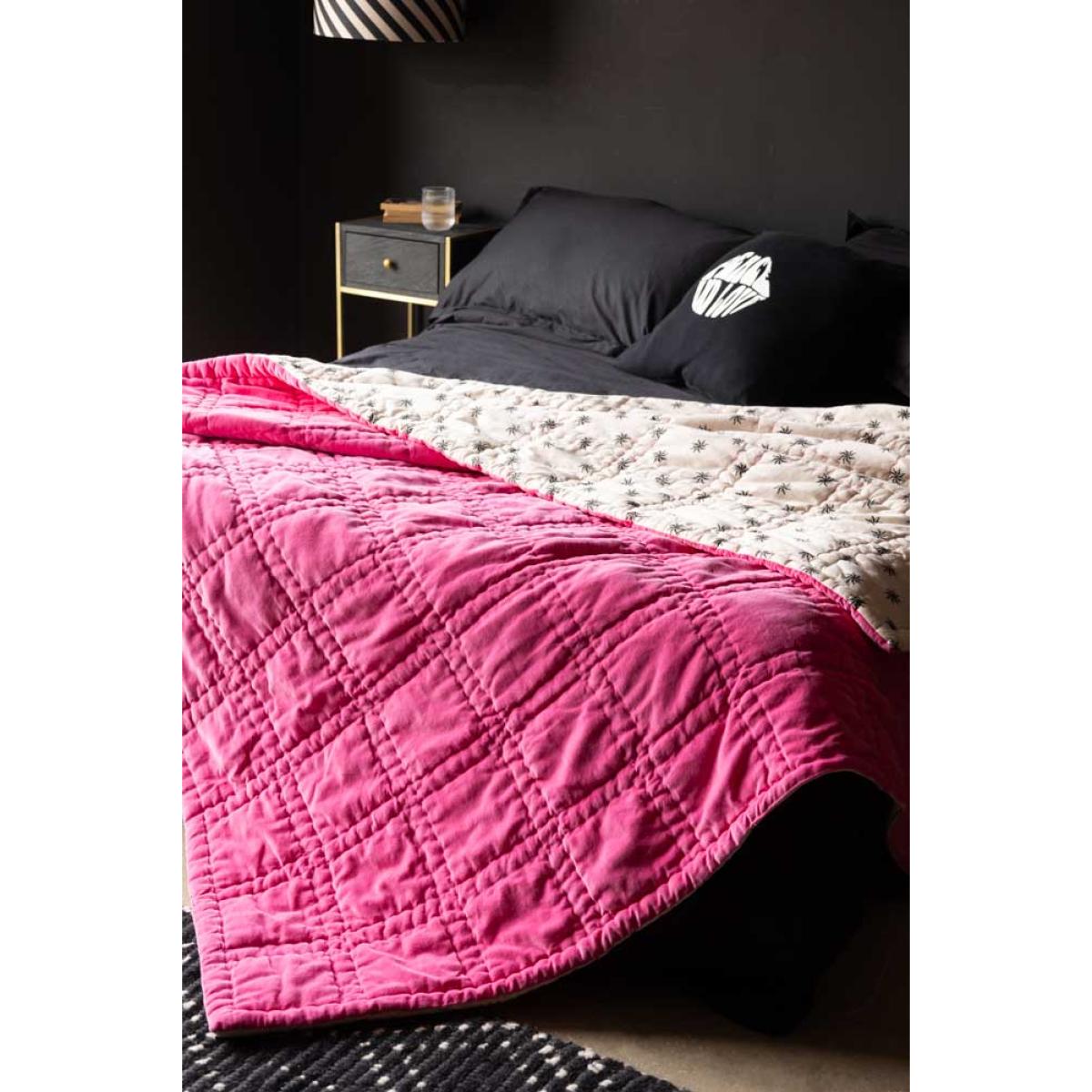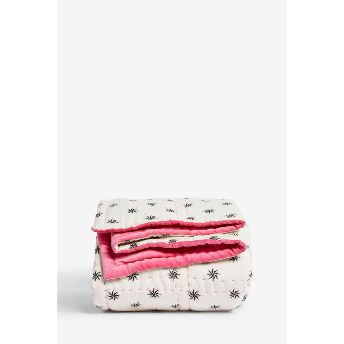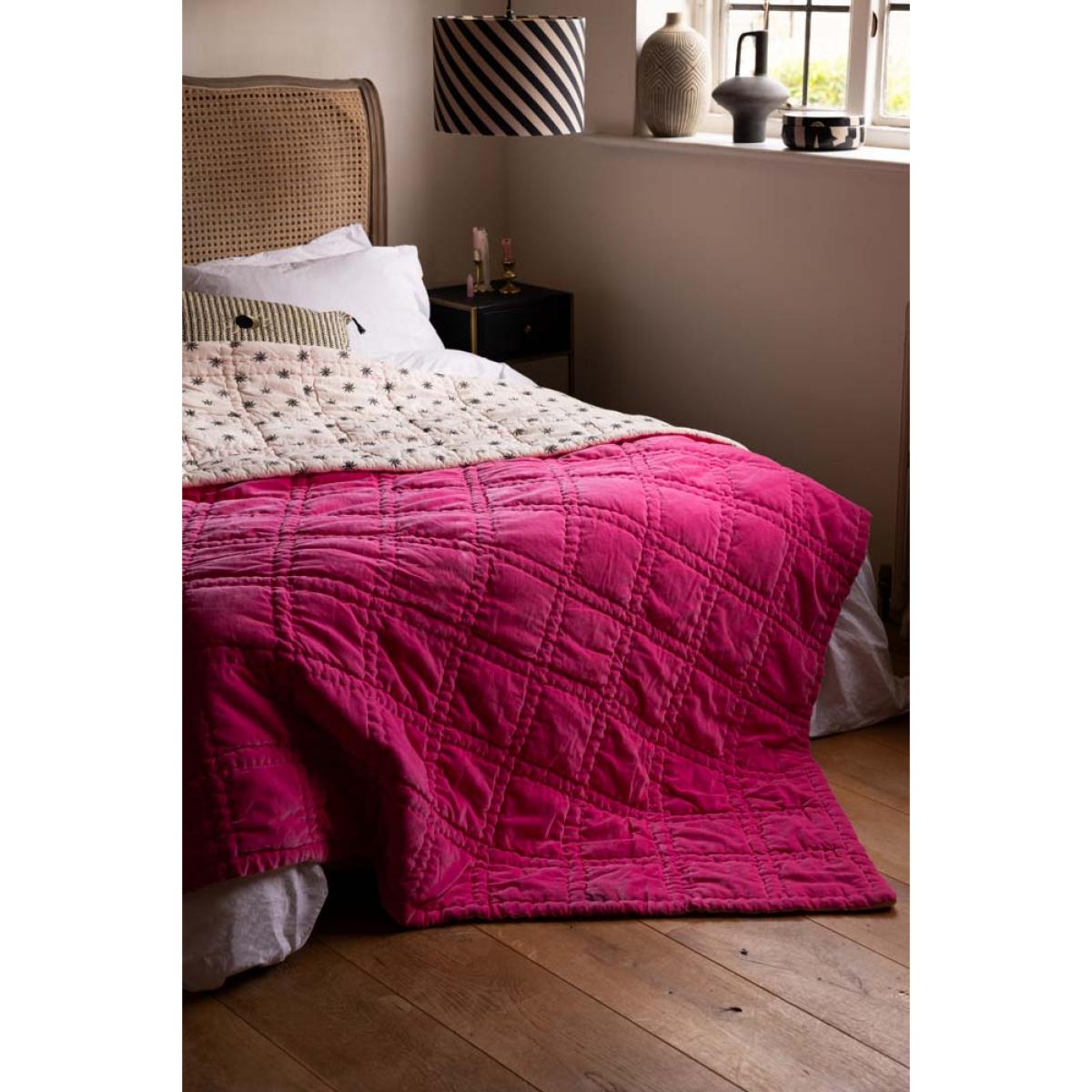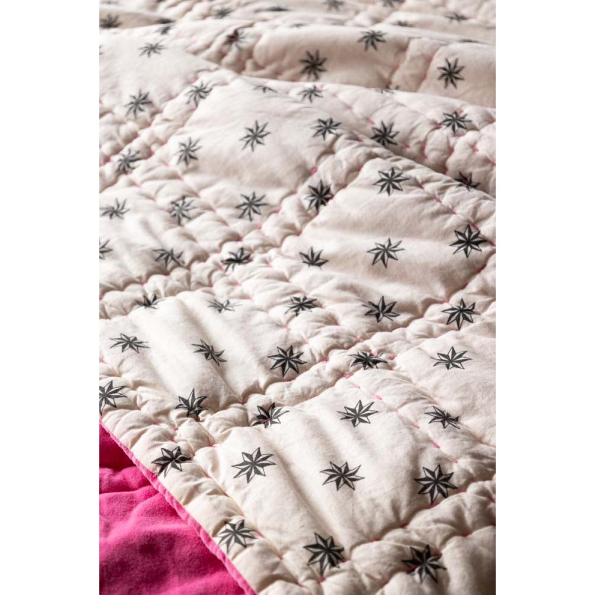 This gorgeous Pink Star Reversible Throw is designed to dazzle, captivate and comfort. Created using a confident pop of colour that’s just perfect for making everyday moments brighter, one side features an opulent confection of vibrant pink velvet to add splash of magical sophistication to any room, while the reverse consists of a chic monochrome star pattern to provide a stylish contrast. It gives you the flexibility to switch up your style with ease, whether this is your go-to piece for snuggling down with for an evening of Netflix, or using in the bedroom as a mood-boosting statement piece that ties the entire room together. - Reversible Hot Pink Star Throw- Measures: 220cm x 240cm - Rockett St George Exclusive Design - Material: 100% Cotton and Velvet - Velvet is dry clean only - As a raised pile fabric, velvet can show subtle crushing lines and bruising from the manufacturing process - this is not considered a flaw. - Please note that this throw features hand-dyed velvet and artisan block printed fabric, with variation in colour and print expected. <!--td -->