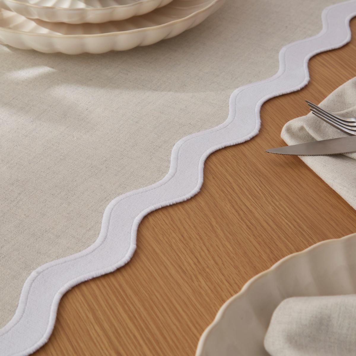 I really like the reversible scallop runner for its versatility and classic charm. It’s a great way to add a subtle decorative touch to farmhouse or cottage-style interiors, especially when layered over natural wood or painted tabletops. Its scalloped edges help soften the look and bring a bit of visual interest without being overpowering. Practical styling-wise, it works well for both casual everyday meals and more relaxed dinner parties-simply swap the side facing up to change the tone of the table setting. To keep it looking fresh, pair it with coordinating napkins and crockery, and it can even transition into a runner for sideboards or console tables when folded or turned around.
