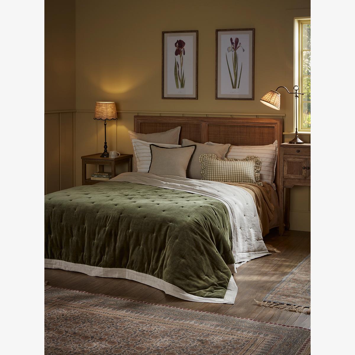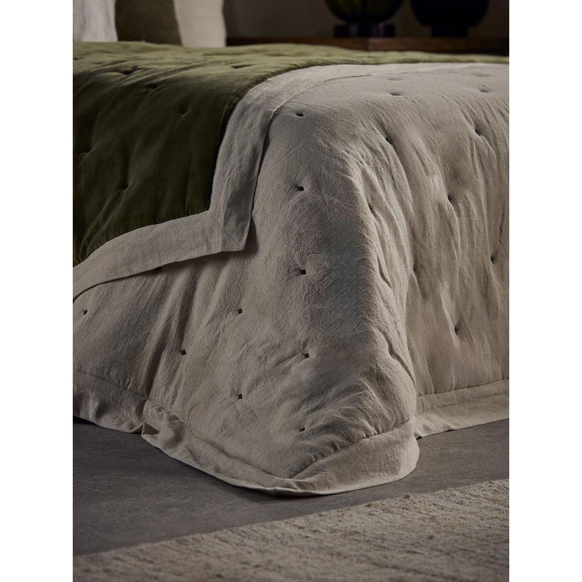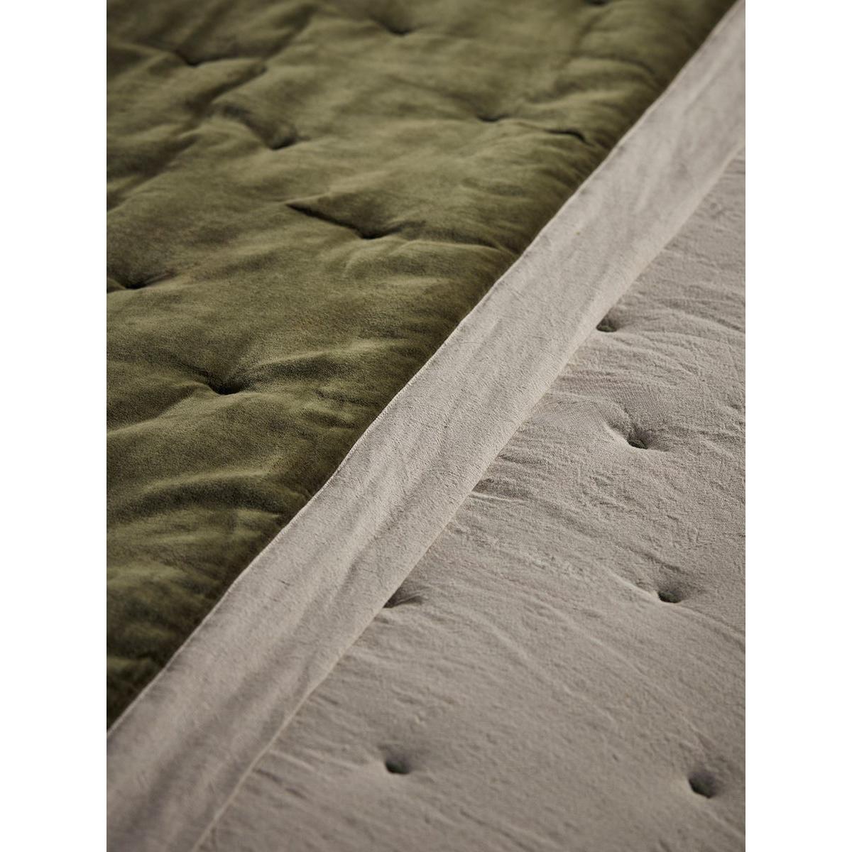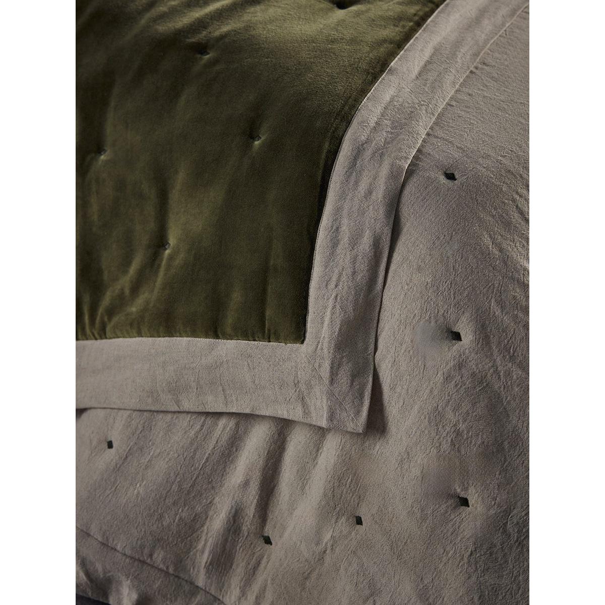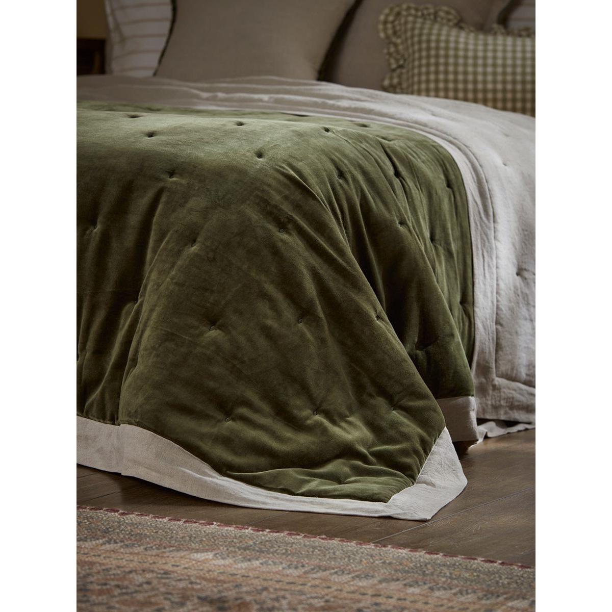Reversible Velvet & Cotton Linen Kingsize Quilt - Moss Green