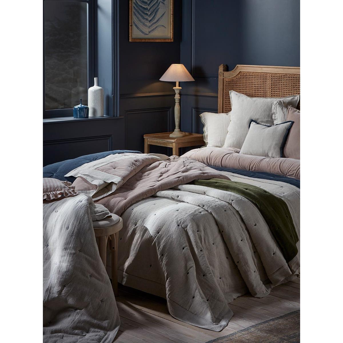 This moss green quilt is a versatile addition that adds a touch of calm and sophistication to a bedroom. I love its reversible design-switching between velvet and cotton linen makes it adaptable for both cosy, plush nights and lighter, more breathable layers. It works particularly well in neutral, earthy interior schemes or bedrooms with natural wood accents, adding colour without overpowering. Practical tips include using it as a layered throw over your bed for added texture and colour, or as a statement single layer if you favour a more minimalist look. Its rich hue pairs beautifully with other muted tones or contrasting fabrics for a contemporary yet inviting aesthetic.