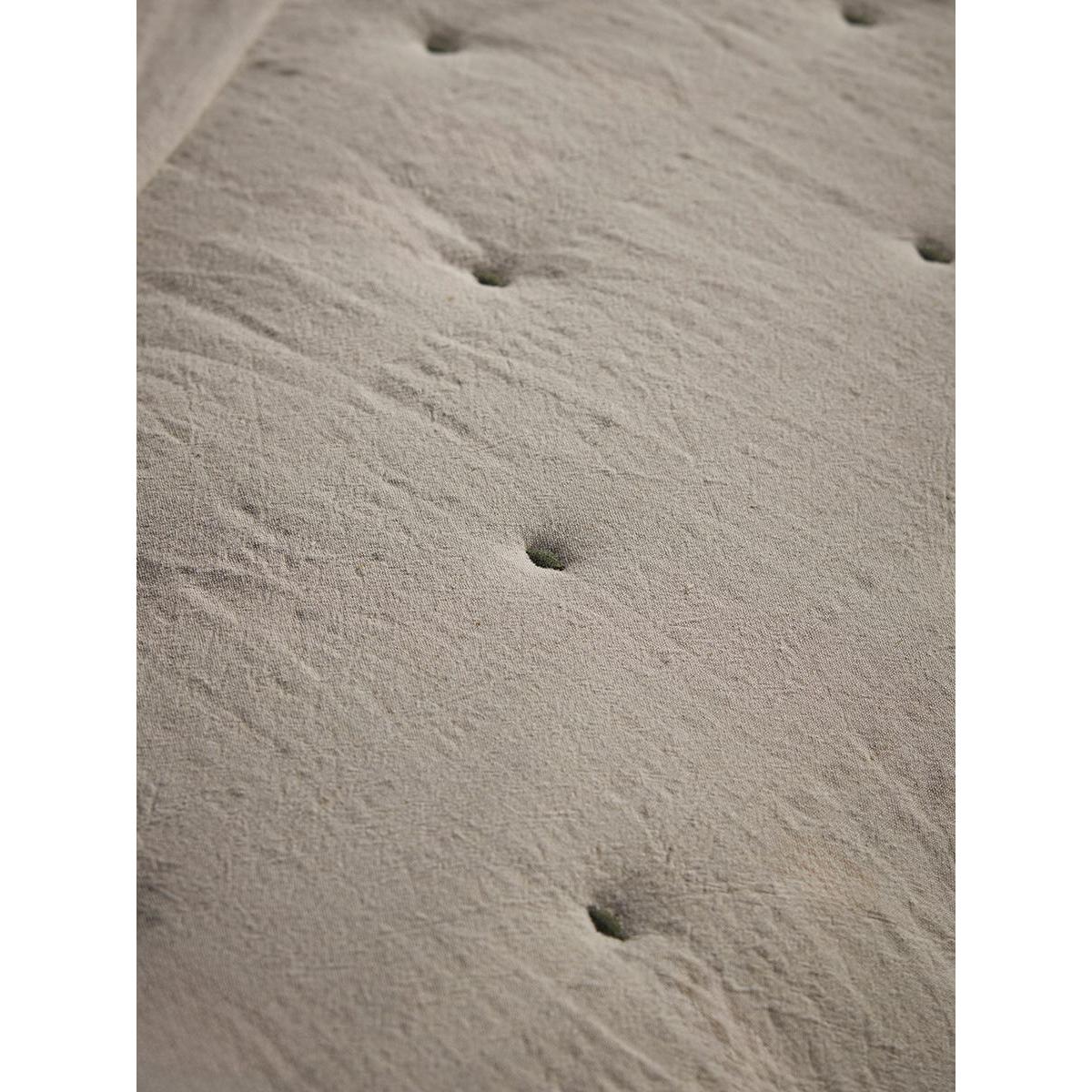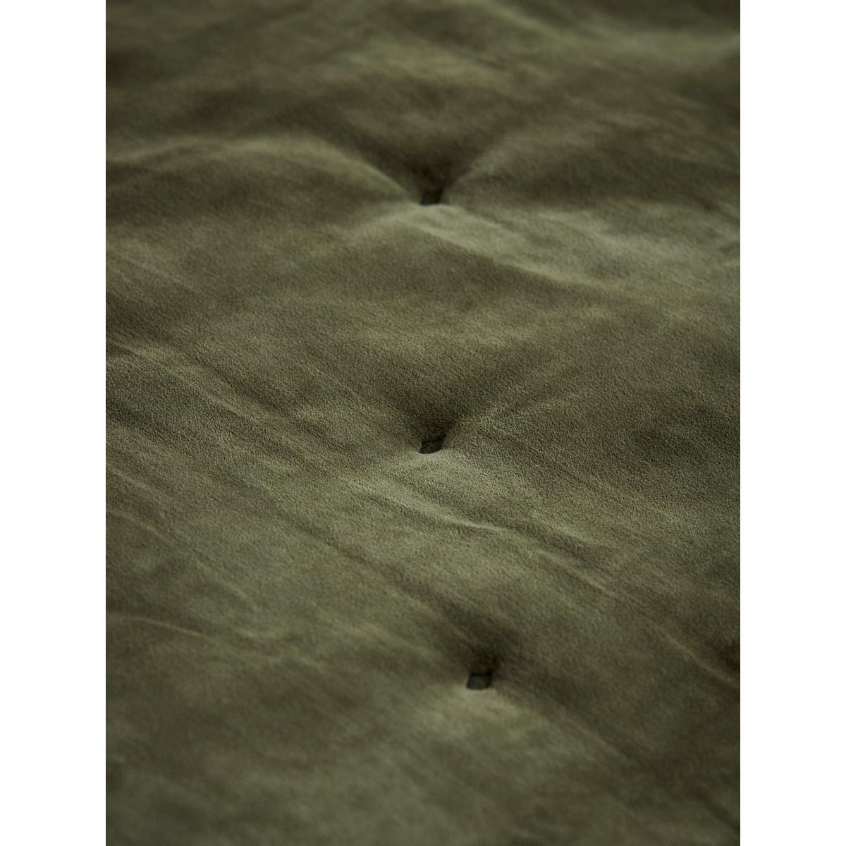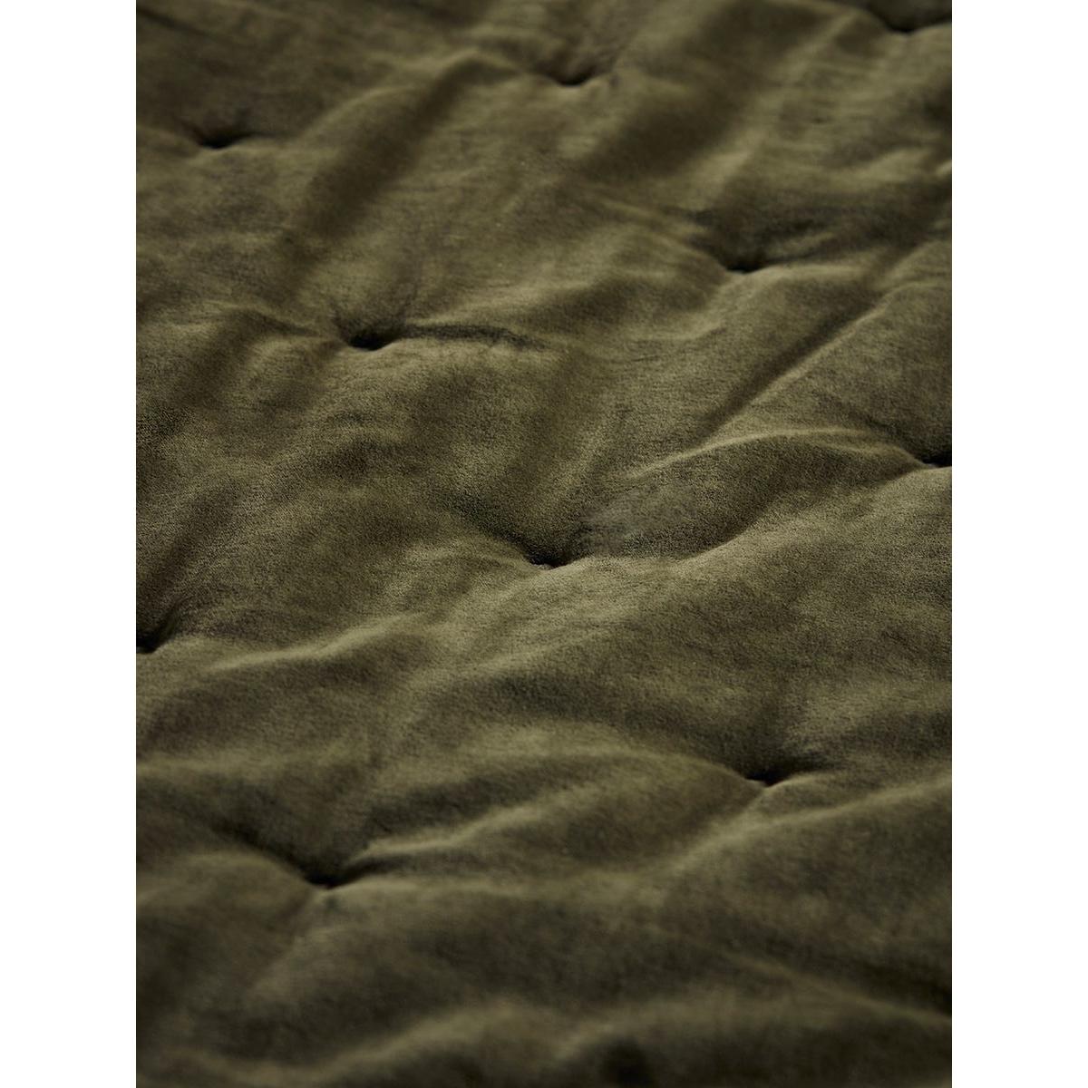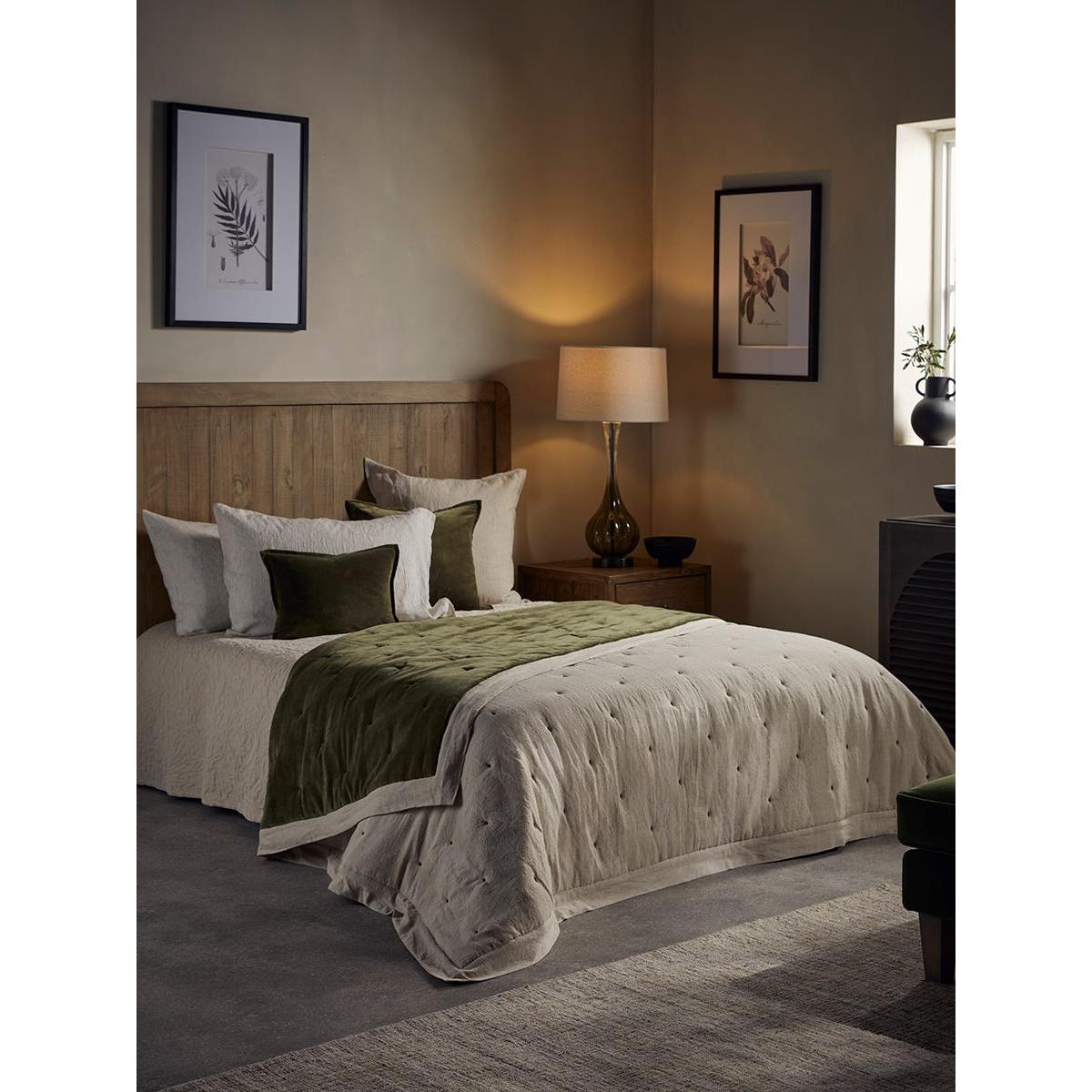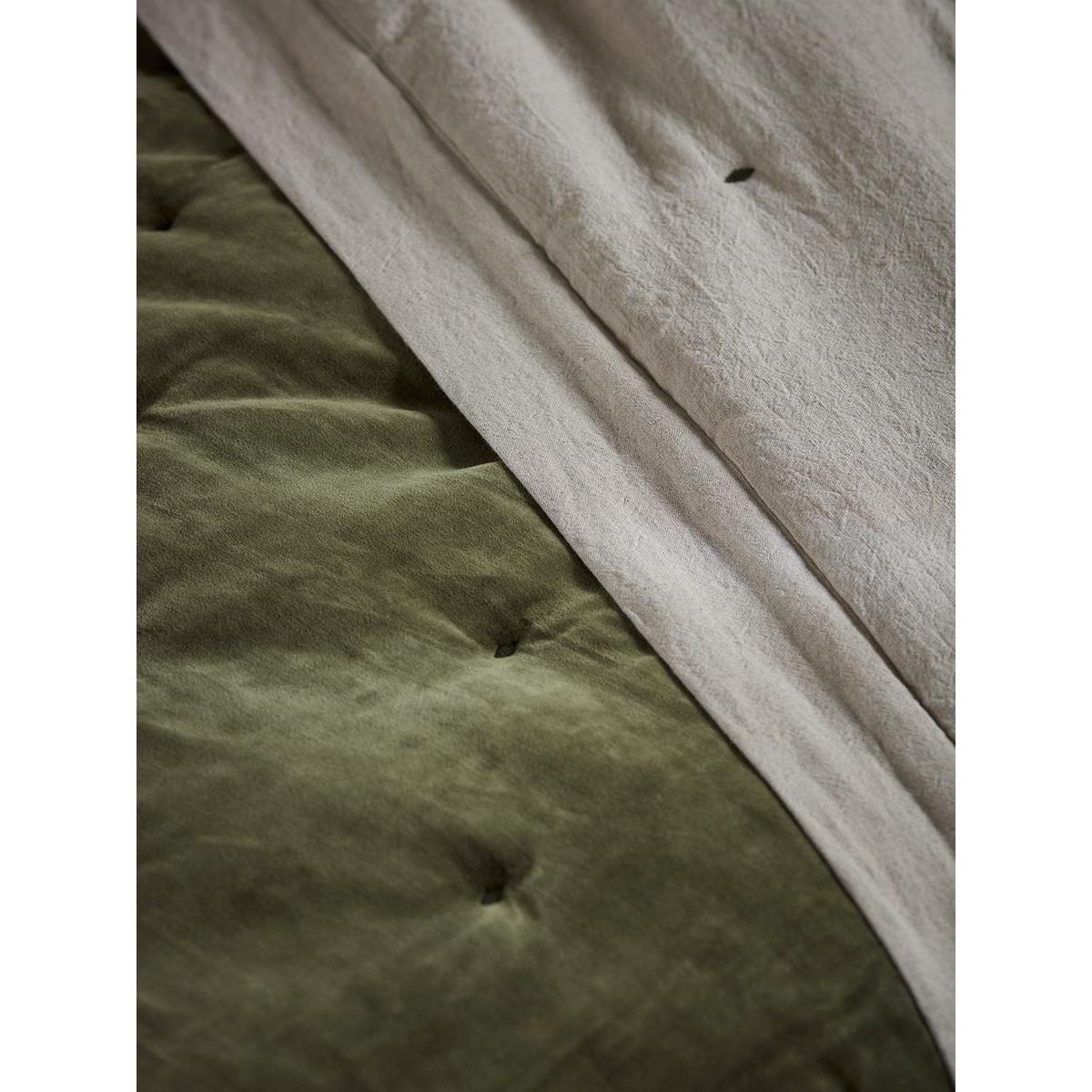 Crafted from cotton velvet in deep moss green tones, this throw presents a luxurious nature, with quilted dimples further enhancing this. With incredible versatility, this throw has a reverse crafted from a blend of cotton and linen in neutral tones, creating a contrasting texture for a different feel and vibe, depending on what style or energy your style embodies.