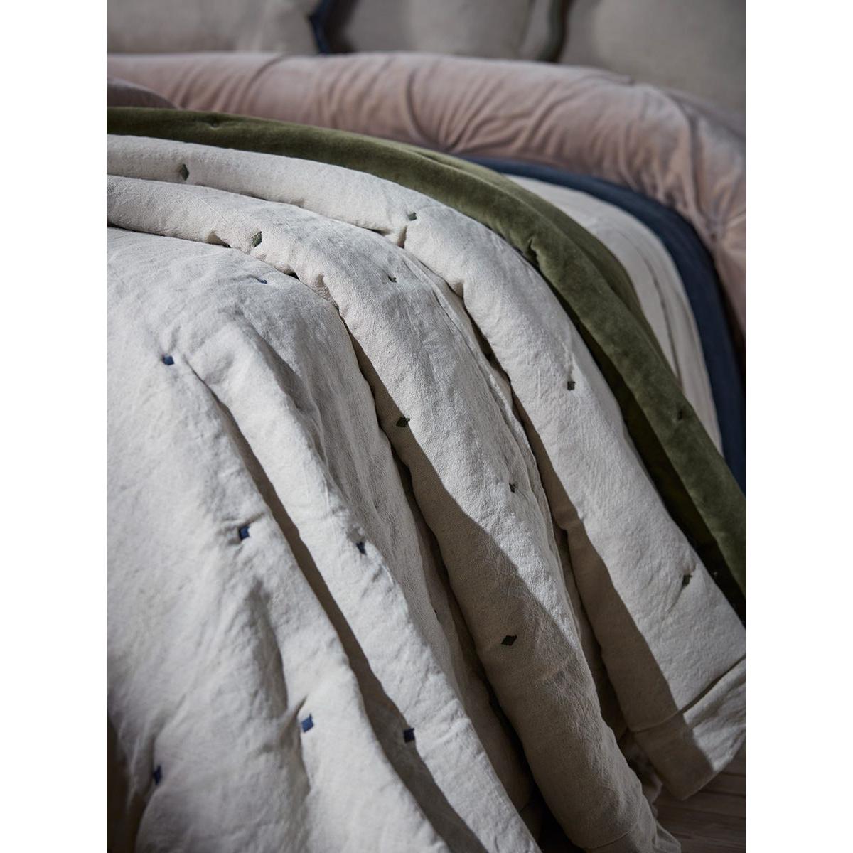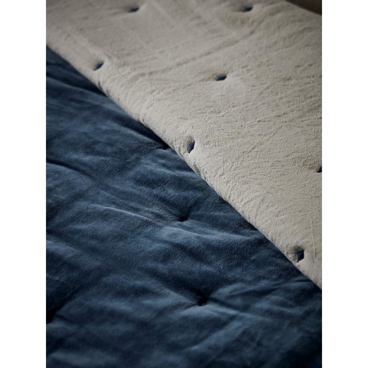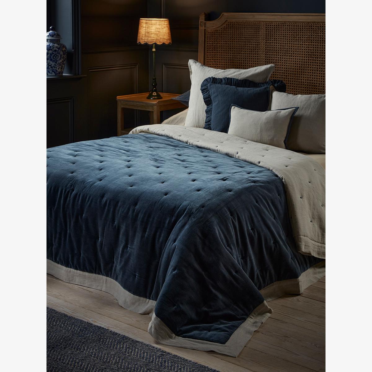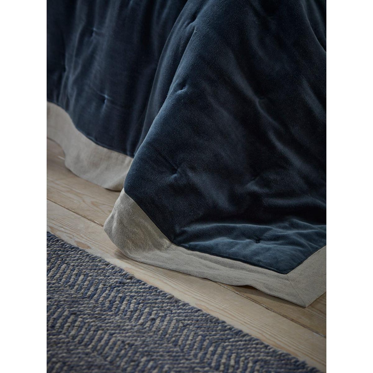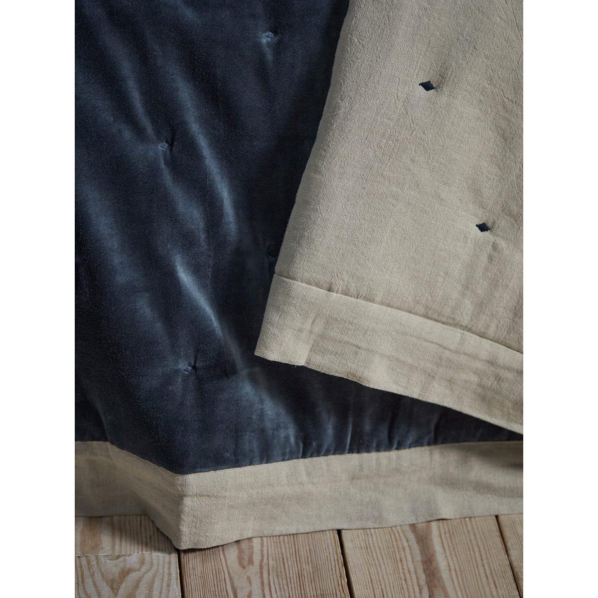 Reversible Velvet & Cotton Linen Kingsize Quilt - Steel Blue
