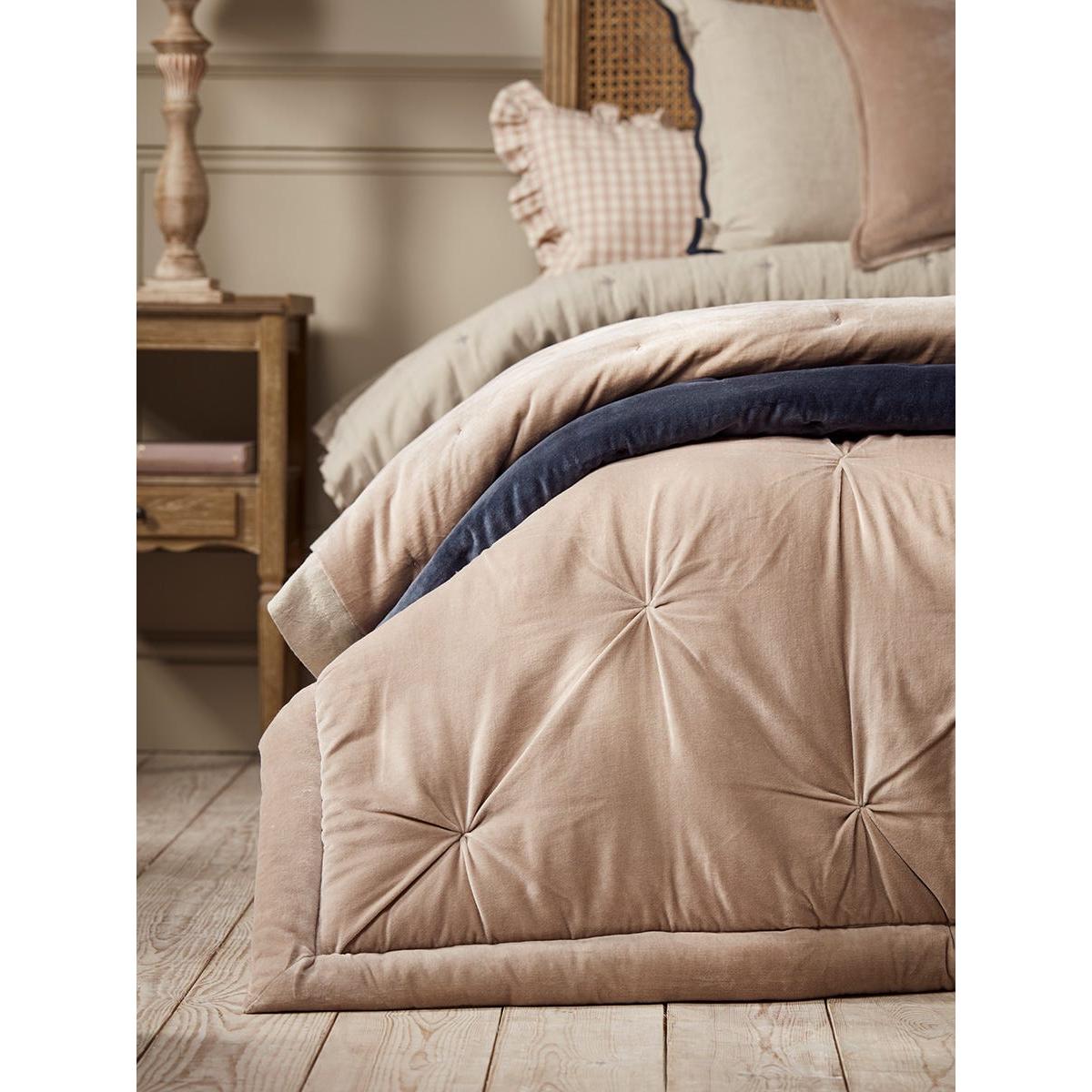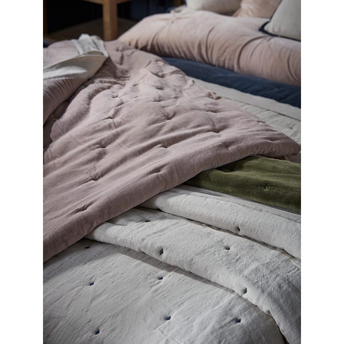 Crafted from cotton velvet in tones of midnight blue, this throw presents a luxurious nature, with quilted dimples further enhancing this. With incredible versatility, this throw has a reverse crafted from a blend of cotton and linen, creating a contrasting texture for a different feel and vibe, depending on what style or energy your style embodies.  Also available in pink.