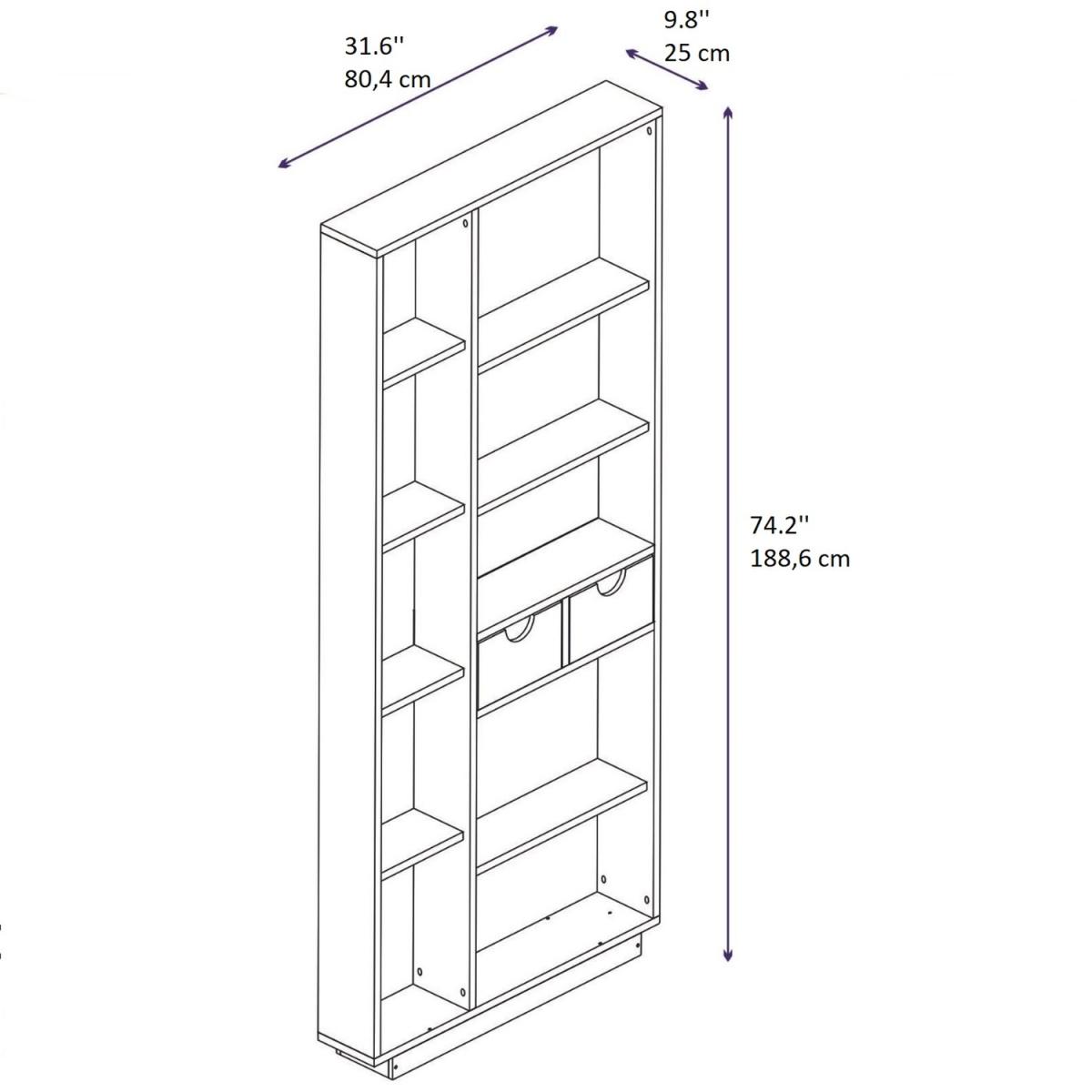 The bookcase is made of a thick high-quality melamine coated particleboard. The manufactured wood surface is water-resistant to some extent and the edges are banded with PVC edge banding tape. First-class assemblyinstallation hardware and accessories are used. Our products are produced from certified quality raw materials that do not contain carcinogenic substances and comply with European Union health norms.