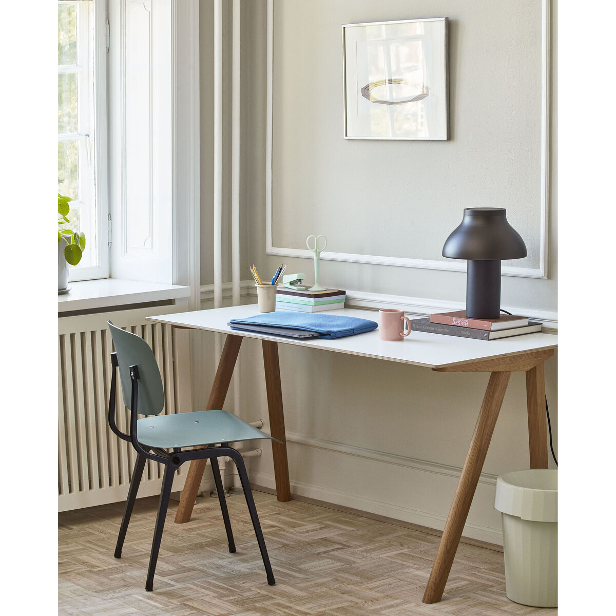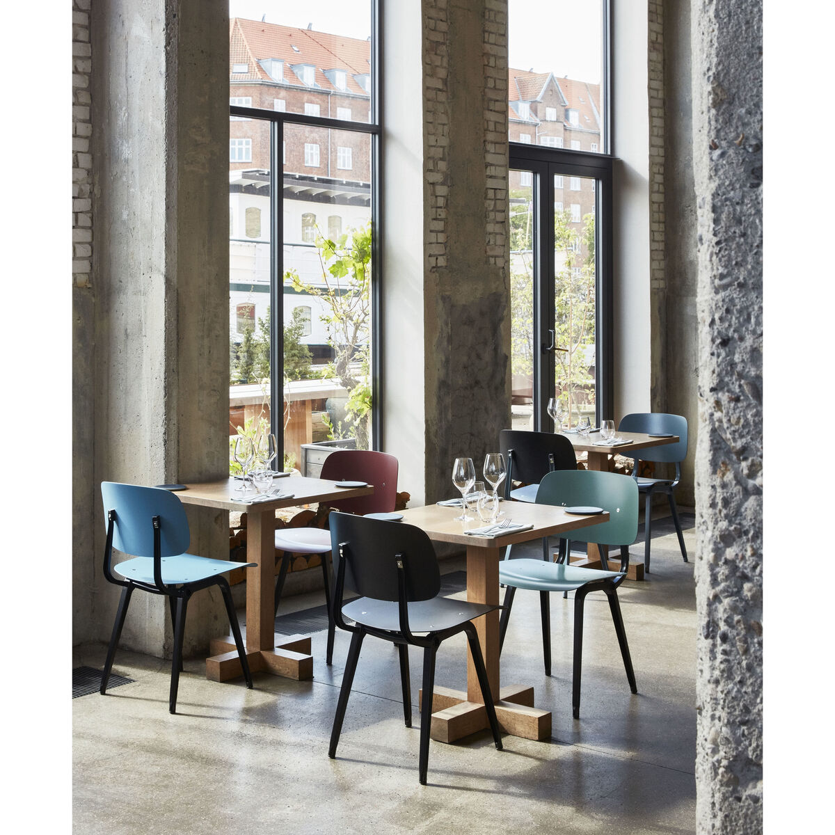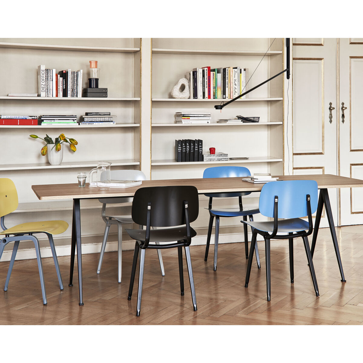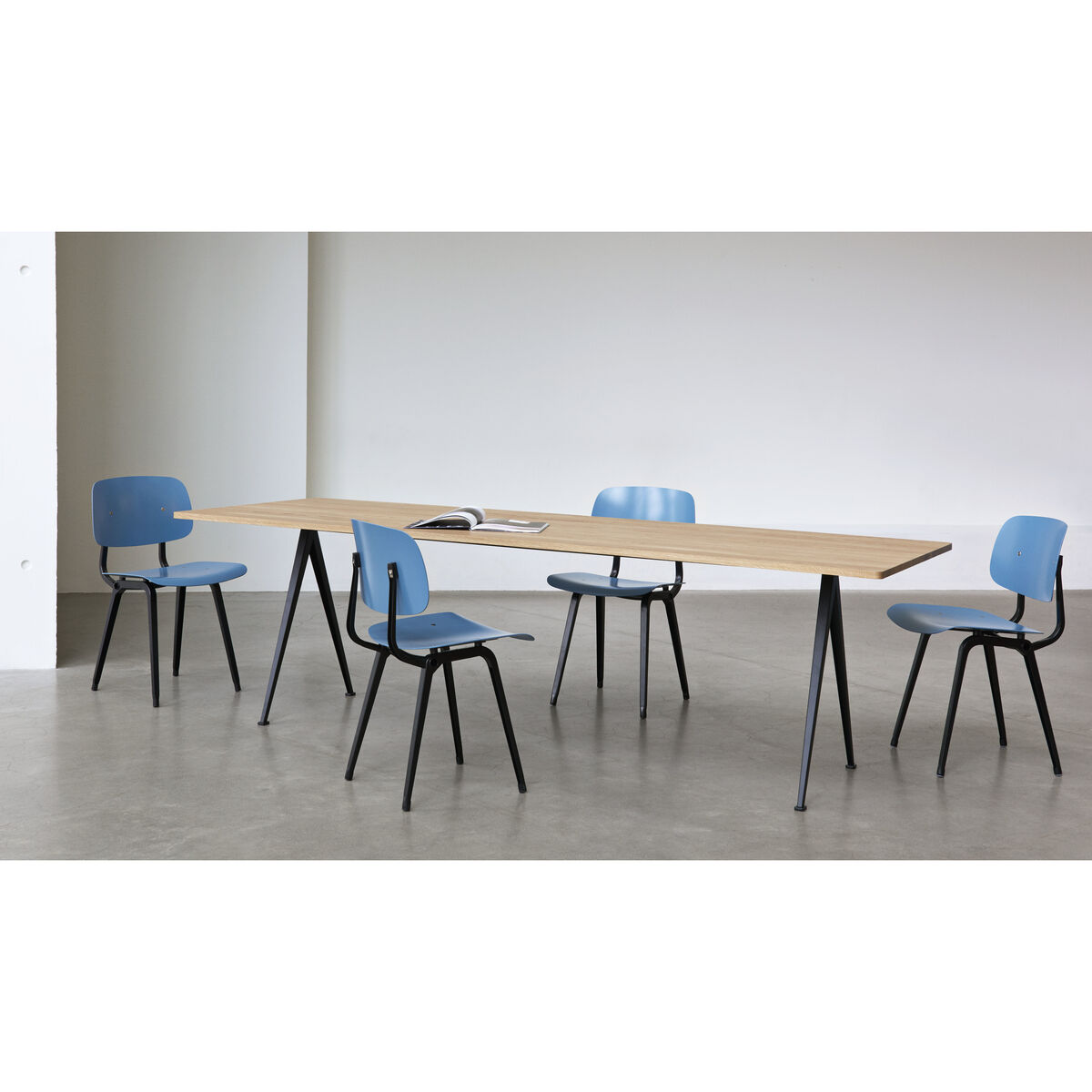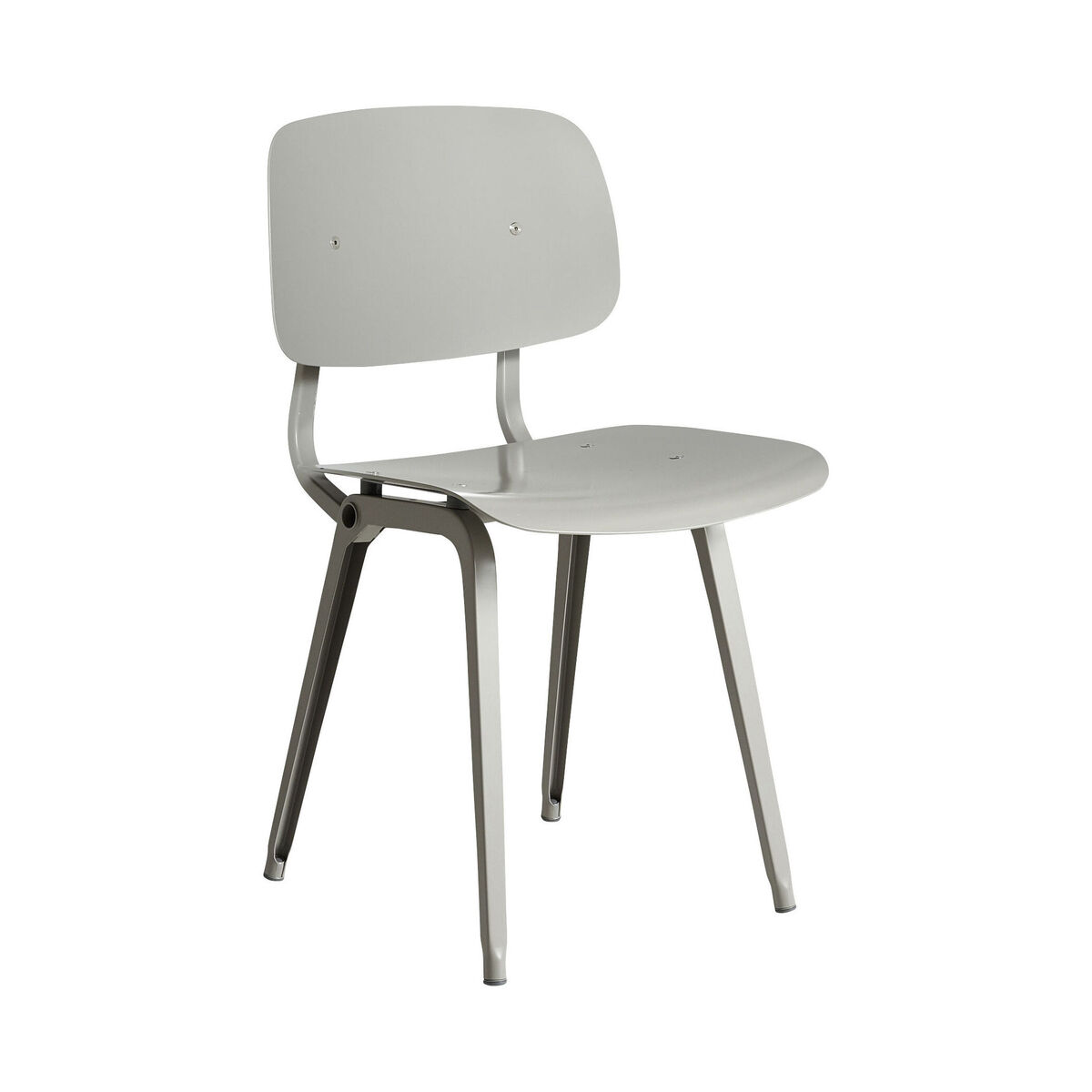The Result chair is an icon of vintage and industrial design. It was designed in the 1950s by the famous designer Friso Kramer, considered the Netherlands’ Jean Prouvé. A true classic of mid-century Dutch design, the Revolt chair is undoubtedly Friso Kramer's best-known work. Inspired by Eames, this chair was originally made from steel and plywood. Its design was revolutionary for the time: Kramer used a bent sheet steel frame instead of a traditional tubular frame. These new "U" profiles are more resistant to pressure and reduce material consumption, resulting in a lighter, less expensive chair. This chair was also ahead of the principles of ergonomics. Revolt was the first true mass-produced industrial product in the Netherlands: truly revolutionary, it fully deserves its name! This lightweight, affordable chair found its way into post-war schools, offices, libraries and homes around the world. Production of Revolt was interrupted for decades and was then relaunched in 2004 by Ahrend, the historic Dutch manufacturer of office furniture. This new version is the result of the collaboration between Ahrend and Hay. True to the original design, it stands out for its use of a sustainable material: the seat and backrest are made of recycled ABS, available in a wide range of colours. The frame is made of pressed, moulded sheet steel. The Revolt chair offers first-class comfort thanks to its ergonomic backrest that tilts and moves with you, for optimal posture. Revolt remains fully in line with the design philosophy of Friso Kramer: a perfectly usable, functional chair with no frills. A pragmatic chair. A chair for everyone.