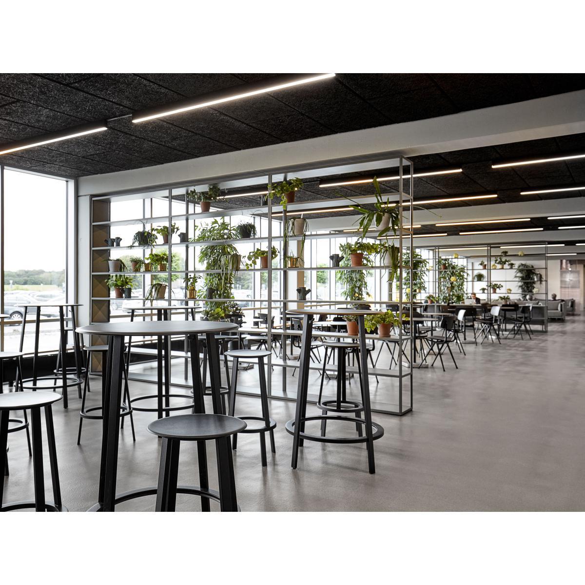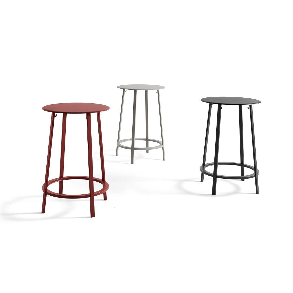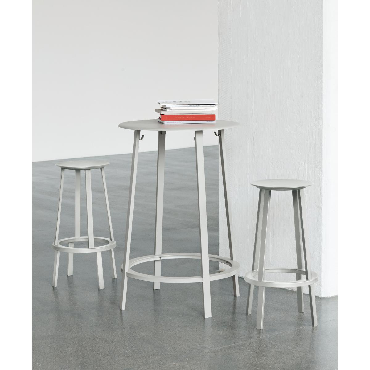 Created by New York designer Leon Ransmeier, this steel high table displays an industrial look. It forms a perfect set with the Revolver bar stools. This high table has an unusual silhouette marked by its rounded edges and very strong symmetrical lines. Very practical, this high table has a circular footrest and four hooks (located under the top) for hanging bags and coats. This piece of furniture perfectly illustrates Ransmeier’s work: graphic furniture that does not at first glance reveal its specific functionality. It’s only by using them that we realise the intelligence of their construction. This sturdy high table adapts to a wide variety of private or public contexts (cafes, restaurants, etc).