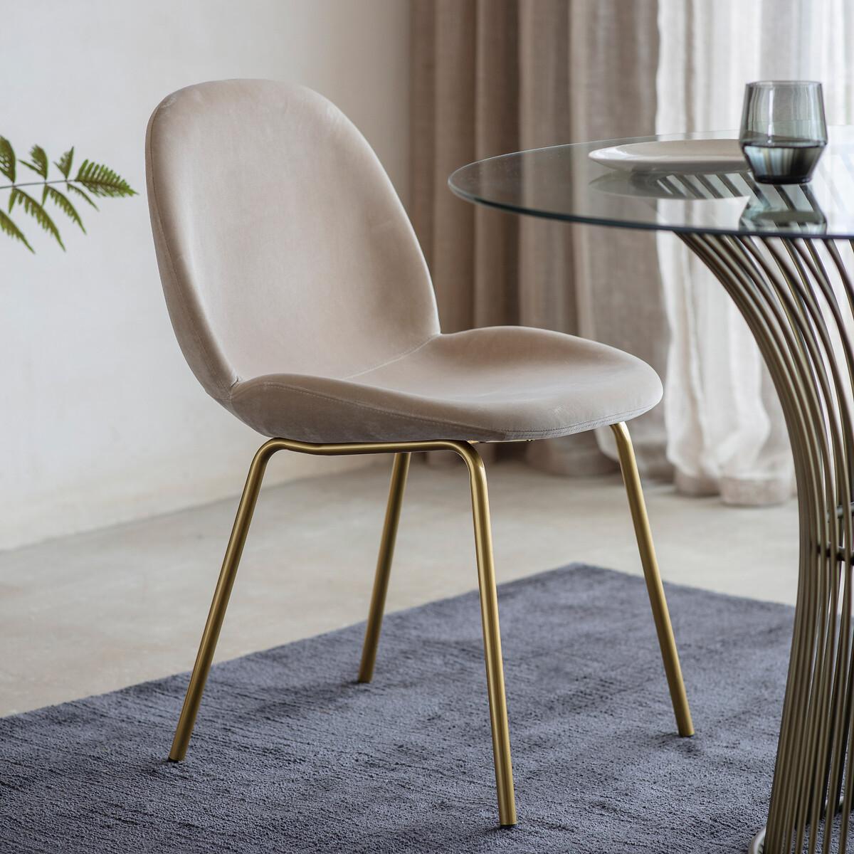 I’m a fan of the Rewari chairs for their sleek silhouette and soft velvet upholstery paired with slender gold legs - they instantly lift a dining area without overwhelming it. They suit contemporary, Scandi-inspired or even Art Deco-leaning schemes, thanks to that muted sheen and minimal frame. For practical styling, balance their luxe feel with a glass or light timber table and keep accessories pared back: a simple runner, a cluster of low-vase florals or a couple of modern place settings. They look particularly smart against neutral walls but will also pop against richer tones like deep teal or charcoal.
