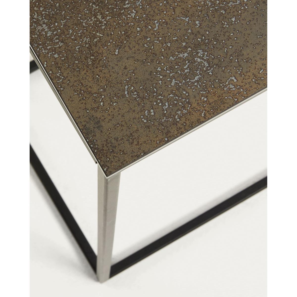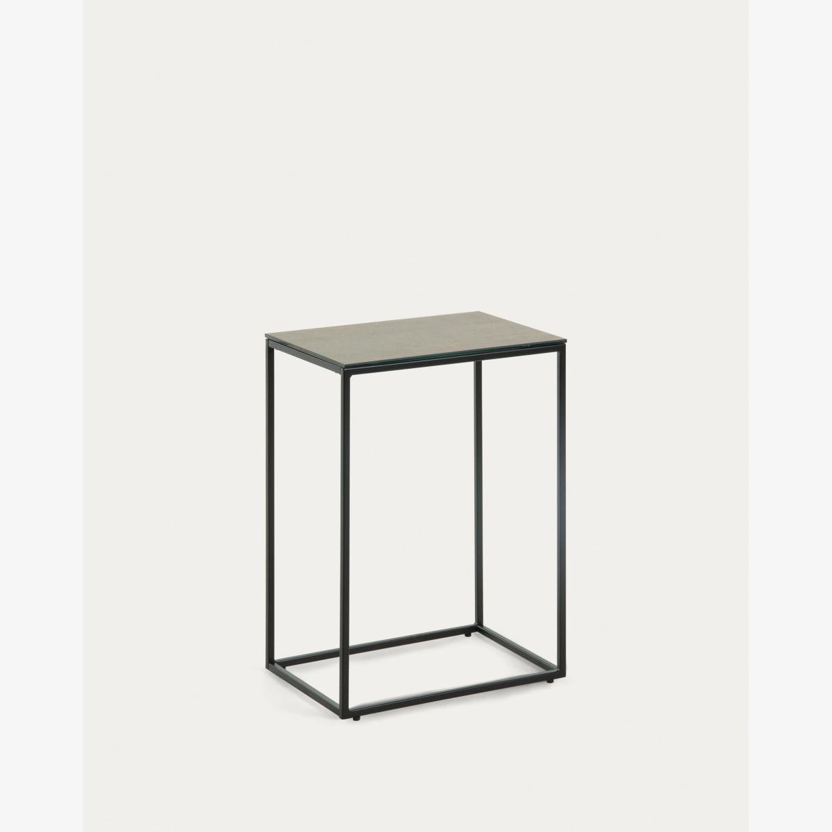 Rewena porcelain side table in brown with black steel legs 45 x 30 cm