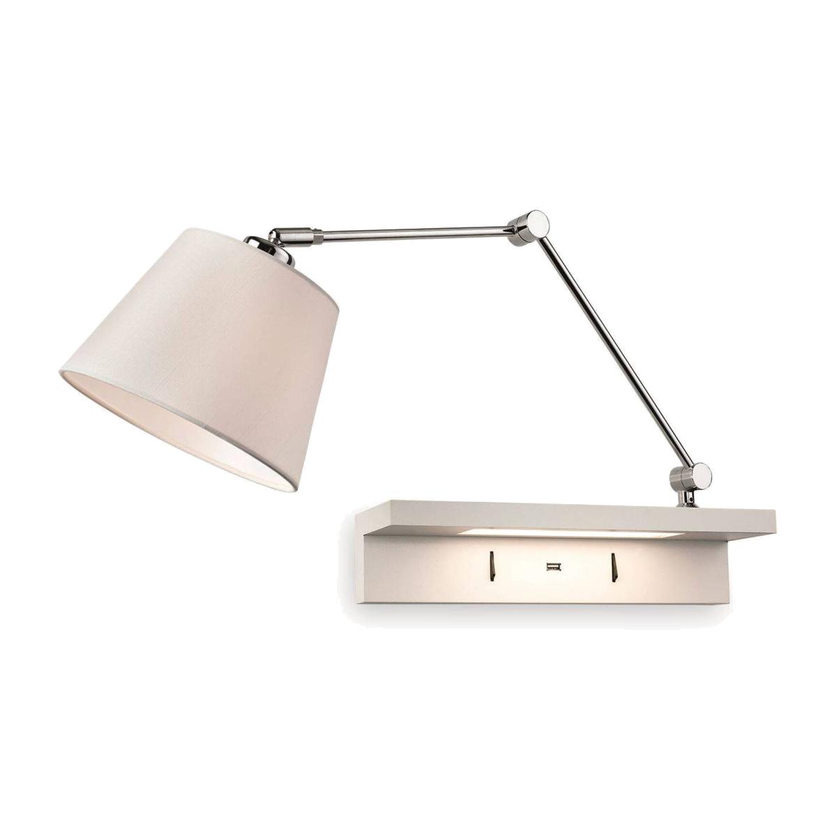 Rex 1 Light Indoor Wall Light Light Shelf USB Port Chrome Cream Shade and - Chrome