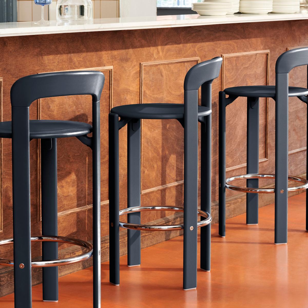 Rey High Bar stool wood blue / H 75 cm - By Bruno Rey x Dietiker, 1971 - Hay