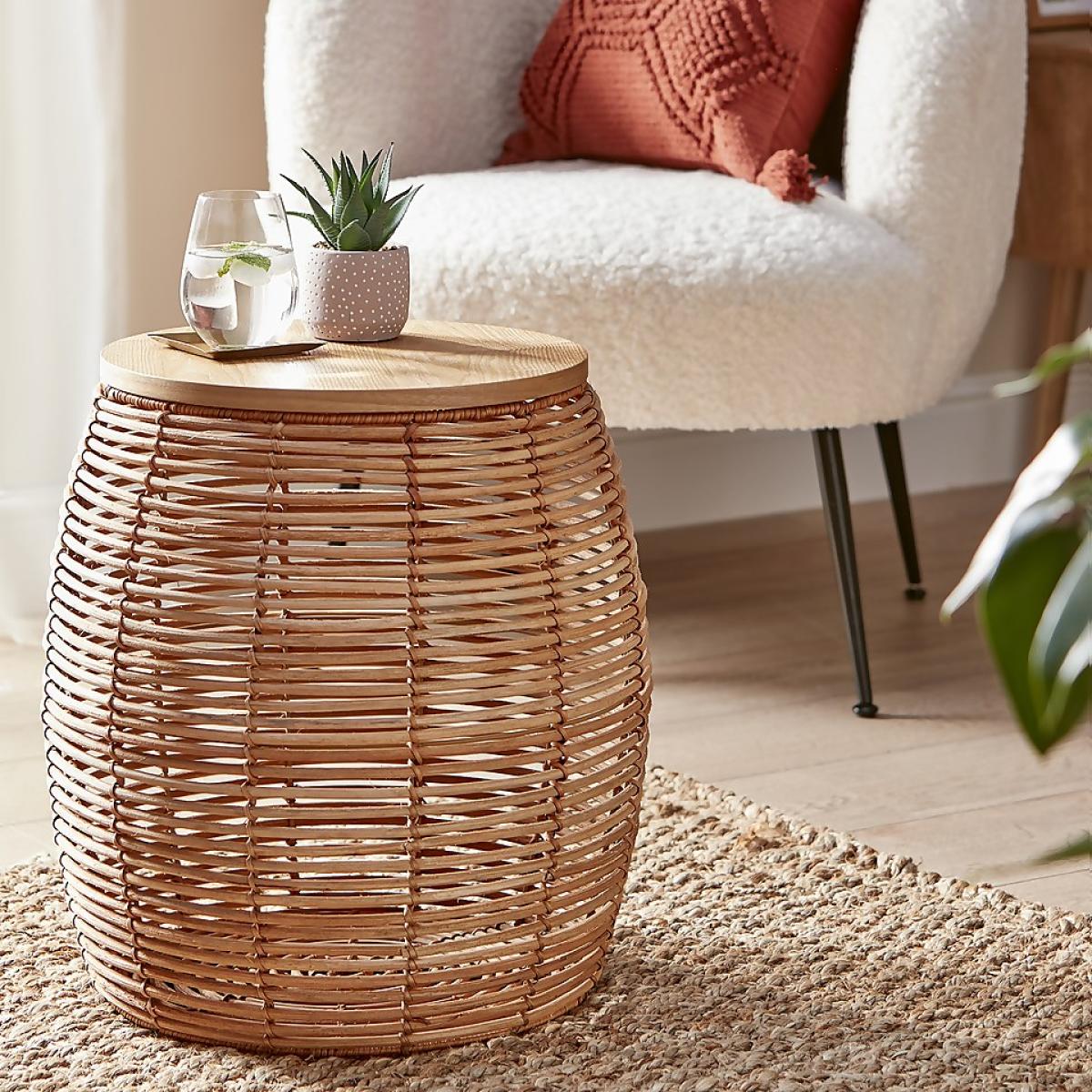 This handcrafted real rattan side table oozes character and will bring an authentic natural look where ever you place it in your home. The Rey storage side table features real rattan, on a sturdy metal frame, and a real Ash veneer wood top. As an added feature the top is removable, providing valued storage space.