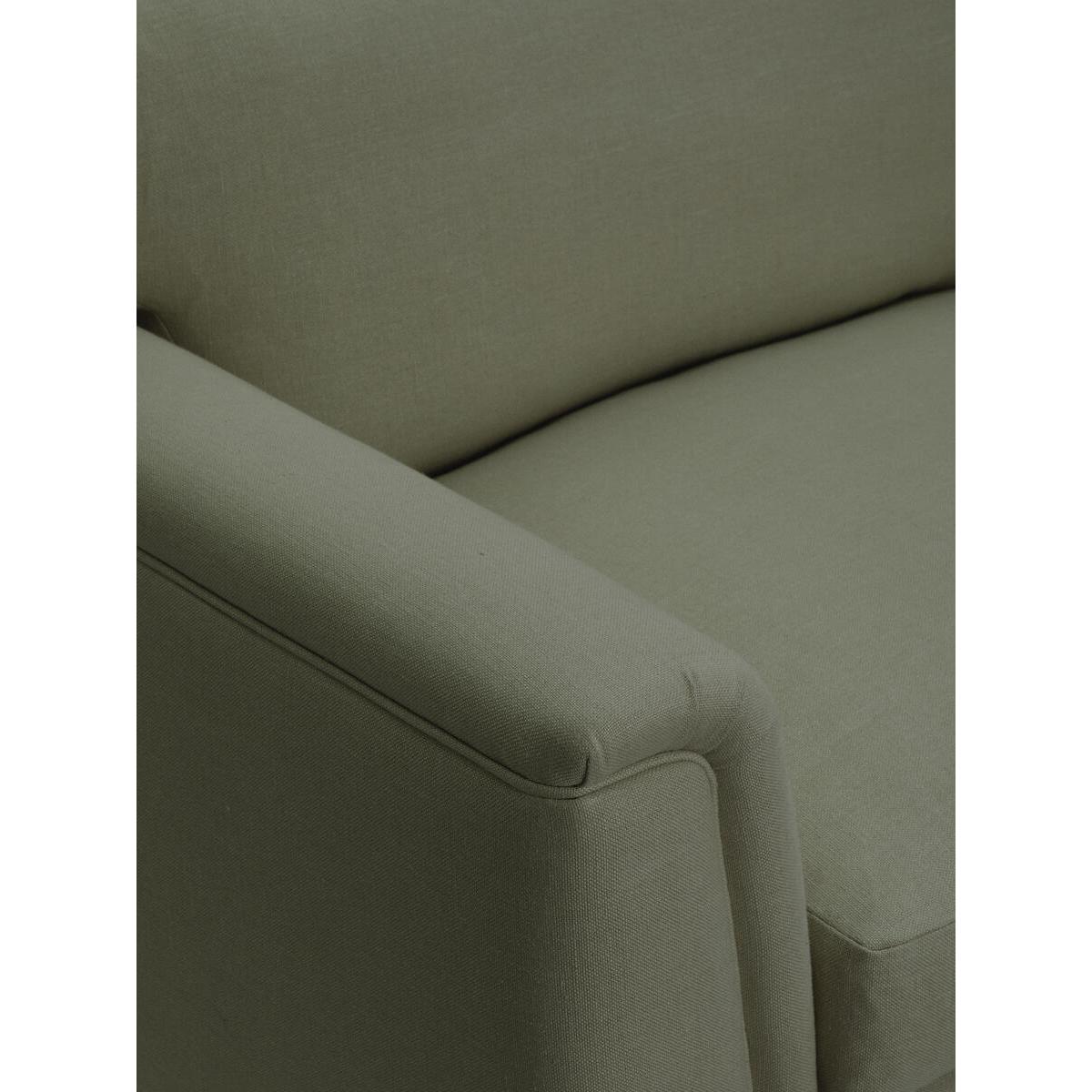 With its subtle curved corners and cushioned armrests, the linen Reya loveseat is influenced by the furniture at DUMBO House in. Brooklyn. Slender turned beech legs lift it off the floor to createa sense of space, while the feather and down-wrapped cushion has afoam core for extra comfort. Each one is handcrafted in Long Eaton,Derbyshire by a family firm of furniture makers. Linen loveseat with cushioned armrests. Scandinavian birch frame. Turned solid beech legs. Handmade in England. Foam-wrapped feather and down cushion. Inspired by DUMBO House.