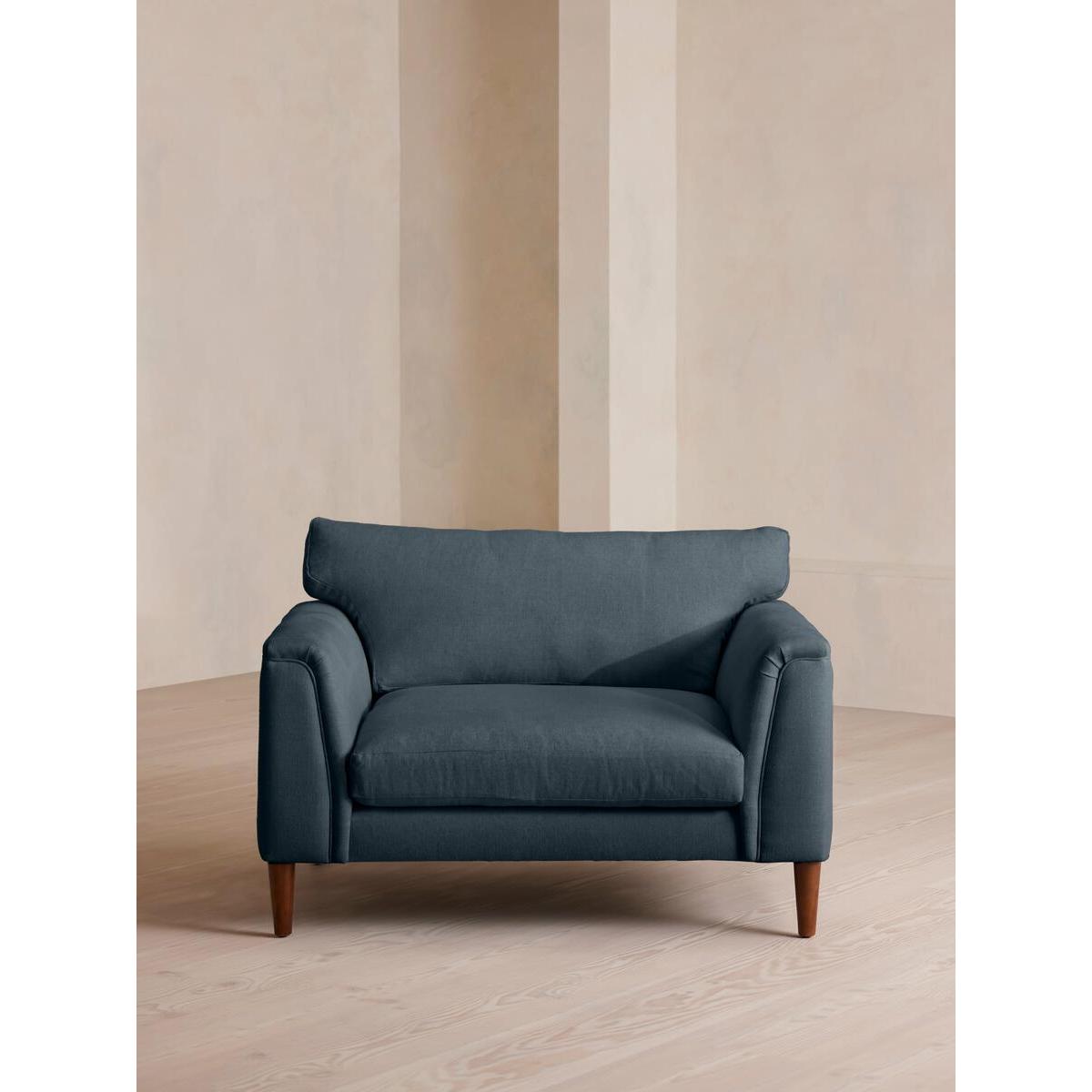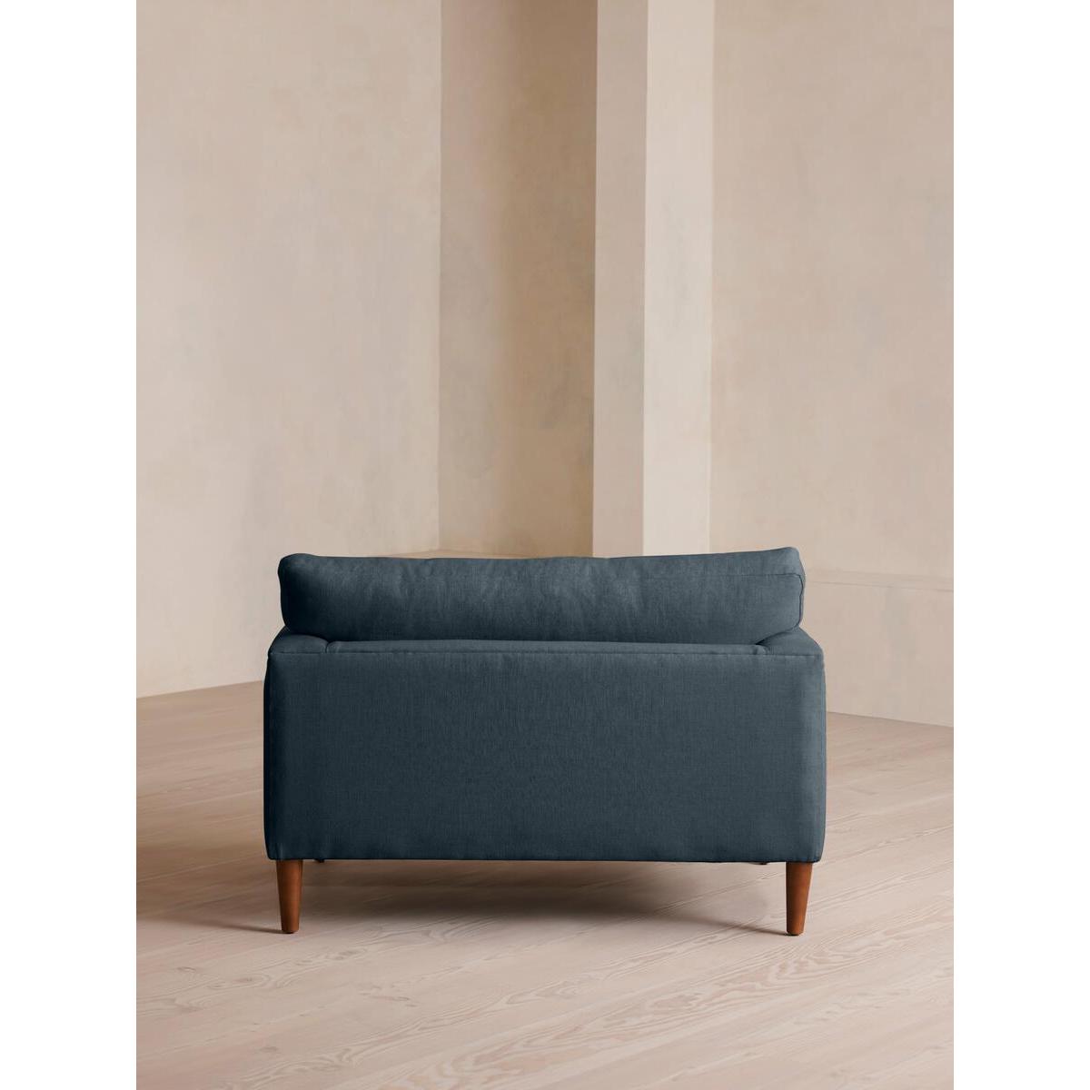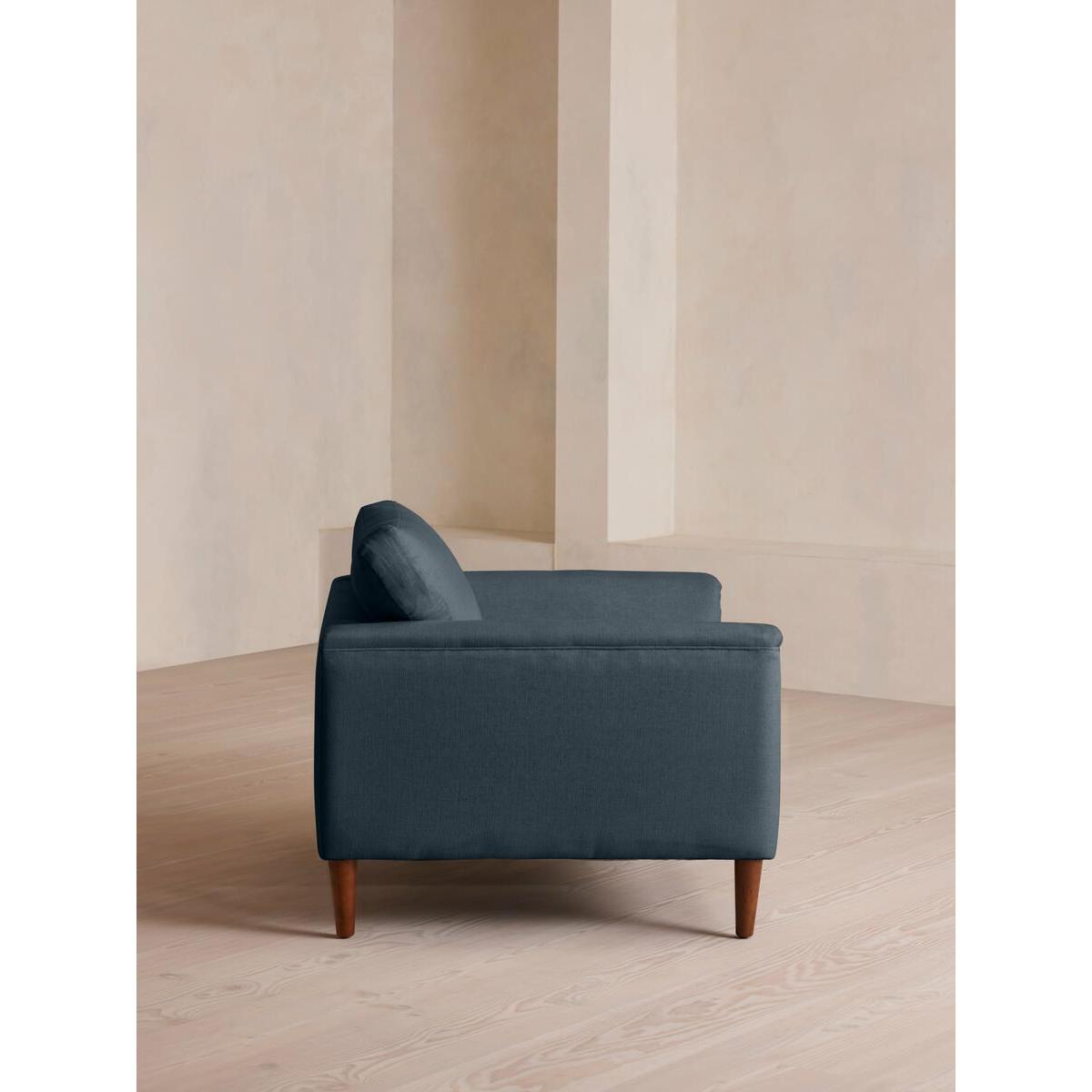 Our Reya loveseat invites you to sink into its comforting, cushioned profile with only relaxation in mind. The mid-century design takes inspiration from similar interiors seen throughout DUMBO House with linen upholstery and cushioned armrests. Turned walnut legs lift this sofa off the floor to create the illusion of more space. Pair with our Reya ottoman for a cosy corner set-up. Loveseat with cushioned armrests Scandinavian birch frame Upholstered in 100% linen Available in other colours and fabrics Mid-century design Cushioned armrests Turned solid beech legs Foam core feather-wrapped seat cushions Inspired by DUMBO House, Brooklyn