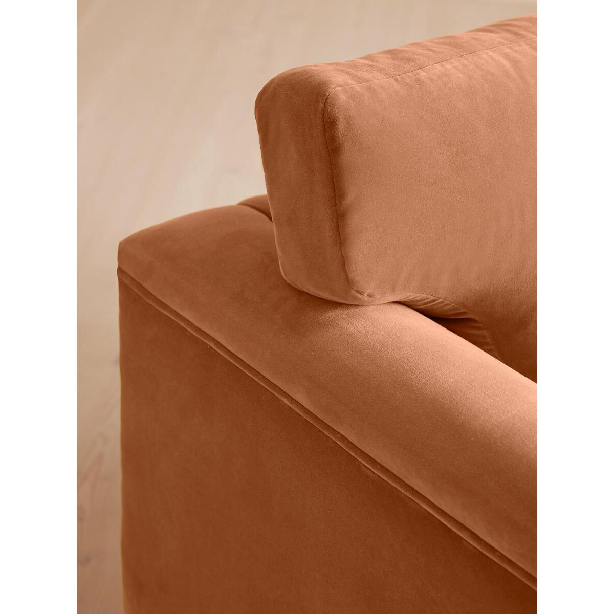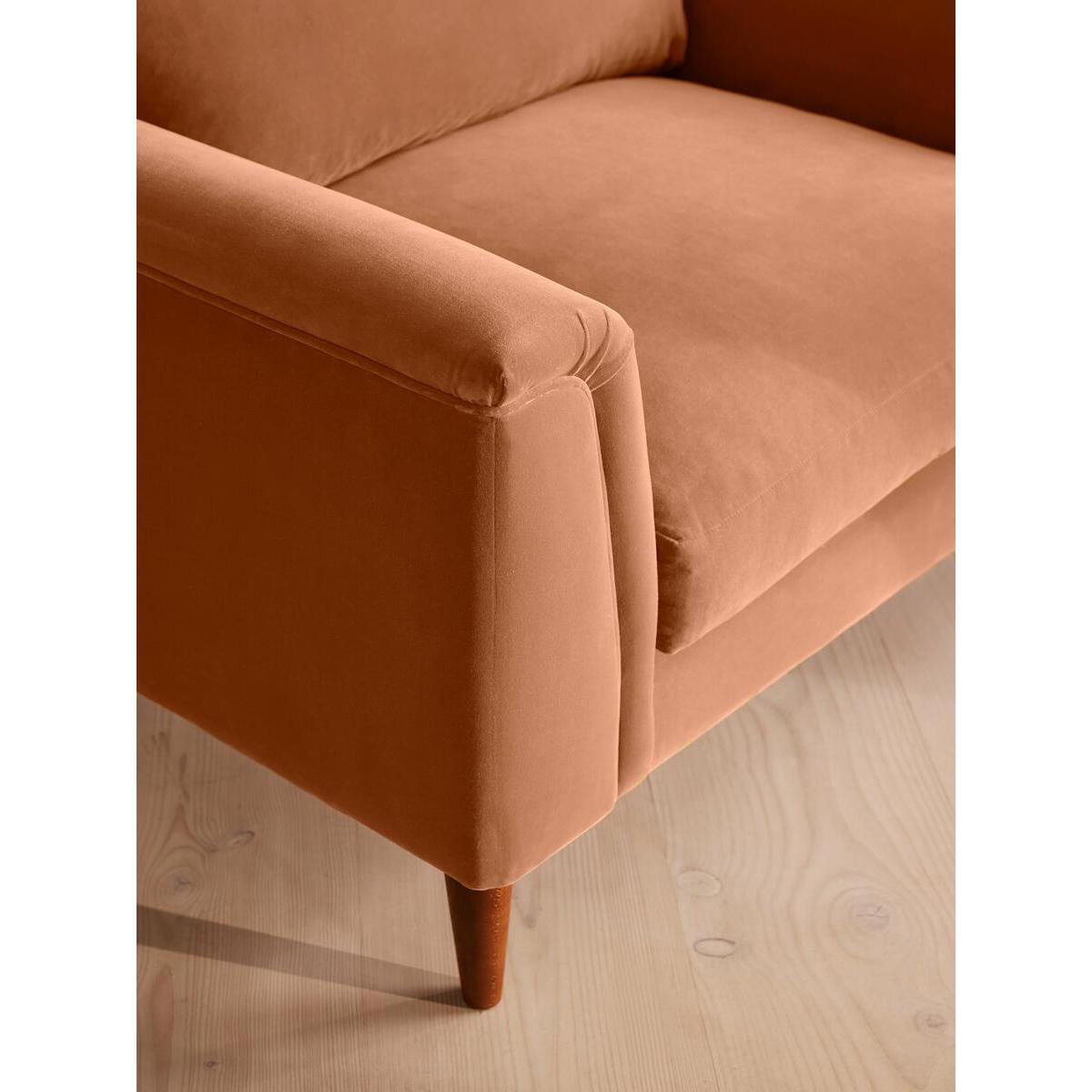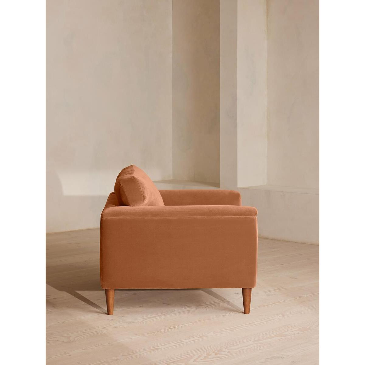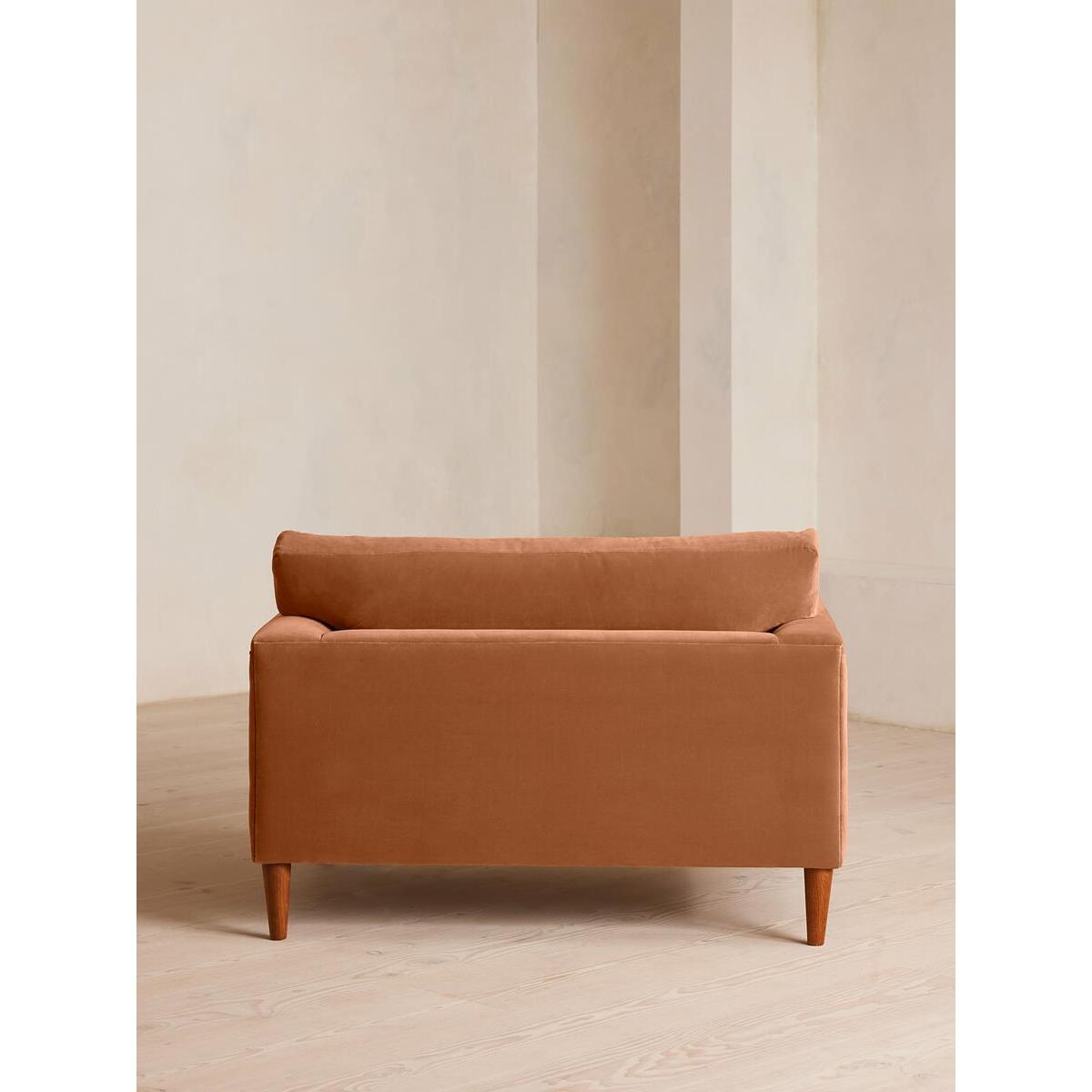 Our Reya loveseat invites you to sink into its comforting, cushioned profile with only relaxation in mind. The mid-century design takes inspiration from similar interiors seen throughout DUMBO House with rich velvet upholstery and cushioned armrests. Turned walnut legs lift this sofa off the floor to create the illusion of more space. Pair with our Reya ottoman for a cosy corner set-up. Loveseat with cushioned armrests Scandinavian birch frame Upholstered in cotton velvet Available in other colours and fabrics Mid-century design Cushioned armrests Turned solid beech legs Foam core feather-wrapped seat cushions Inspired by DUMBO House, Brooklyn