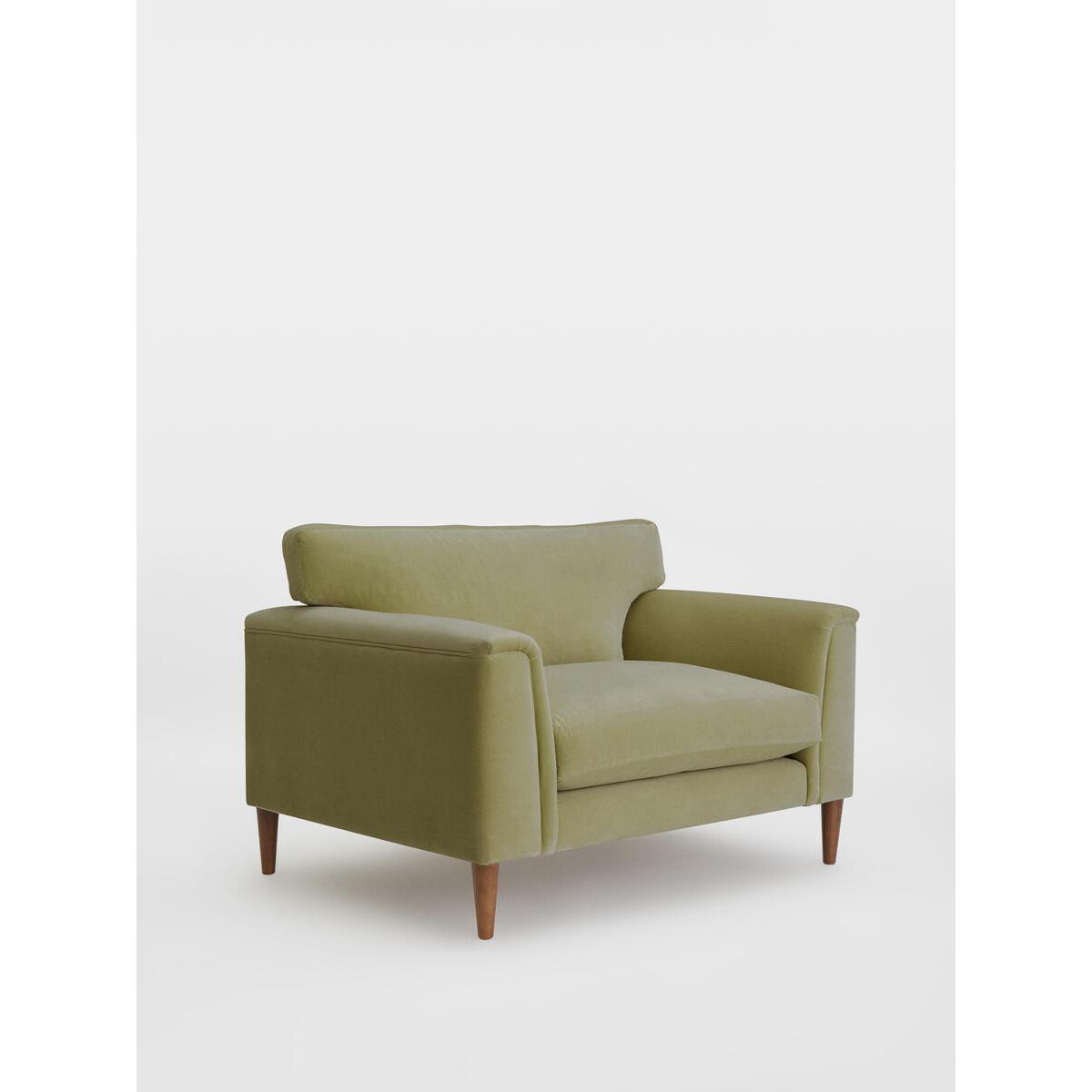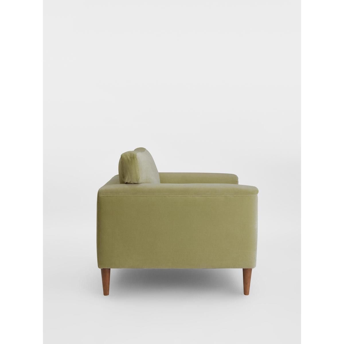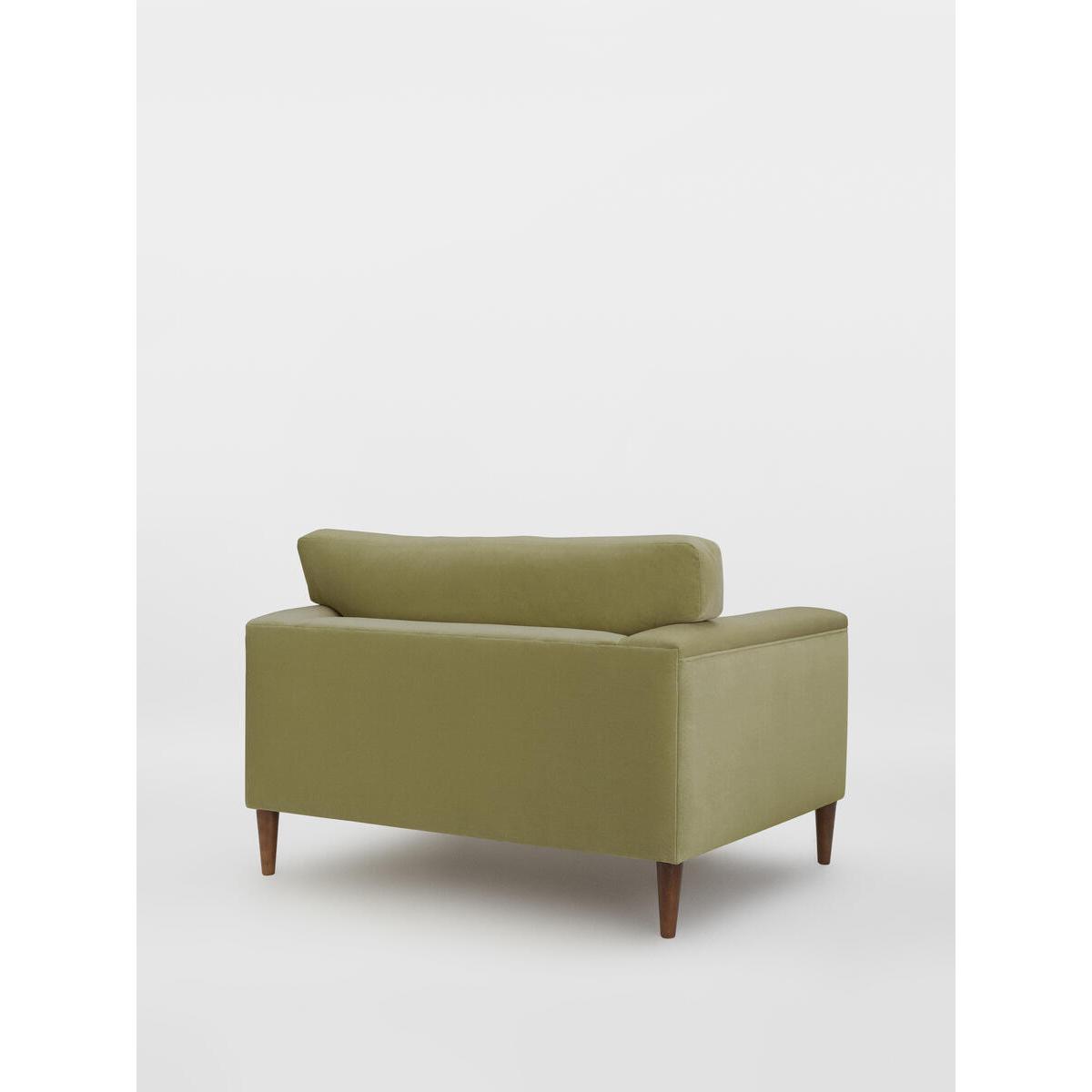 With its subtle curved corners and cushioned armrests, thevelvet Reya loveseat is influenced by the furniture at DUMBO Housein Brooklyn. Slender turned beech legs lift it off the floor tocreate a sense of space, while the feather and down-wrapped cushionhas a foam core for extra comfort. Each one is handcrafted in Long. Eaton, Derbyshire by a family firm of furniture makers. Velvet loveseat with cushioned armrests. Scandinavian birch frame. Turned solid beech legs. Handmade in England. Foam-wrapped feather and down cushion. Inspired by DUMBO House.