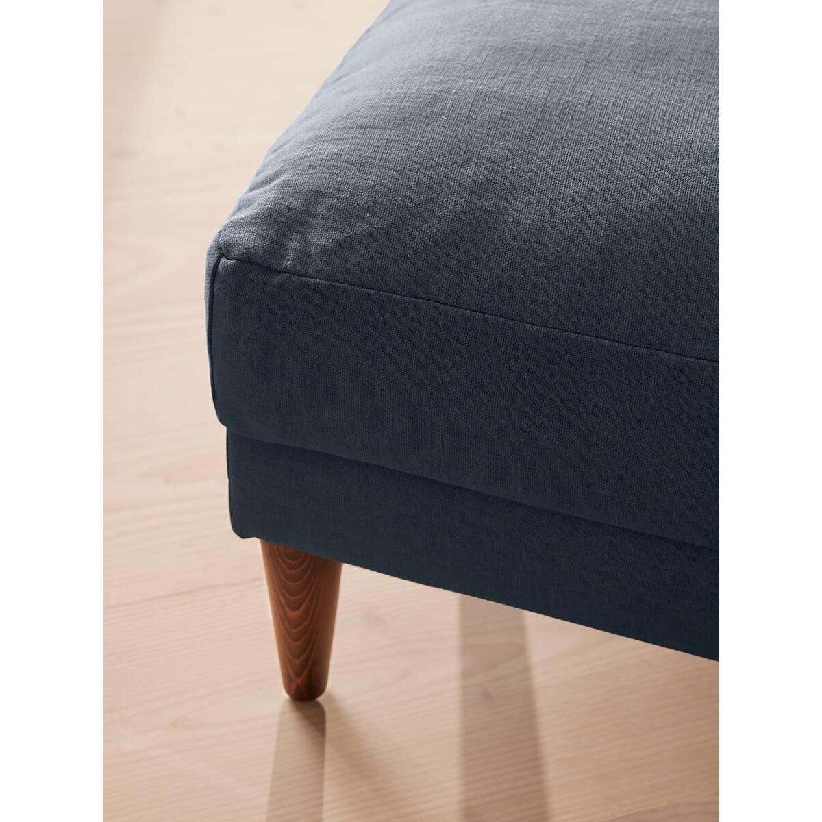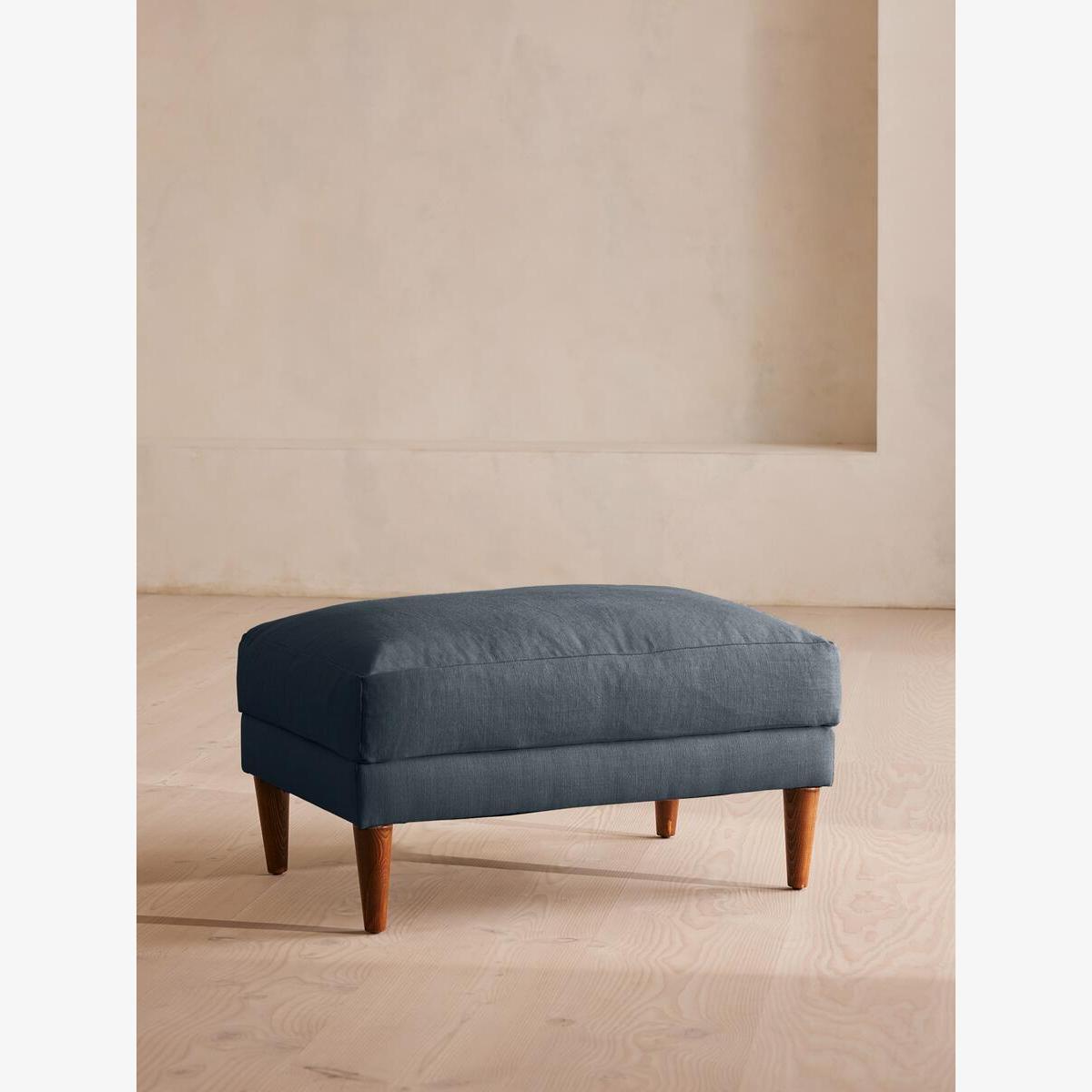 Handcrafted in North Carolina, our Reya ottoman is ideal for putting your feet up and relaxing. Inspired by the furniture at DUMBO House, Brooklyn, the foam cushioned profile is upholstered in natural linen with turned walnut legs. Use as an extra seat for guests, or as a footstool to create a cosy reading nook as we do in the Houses. Rectangle ottoman Upholstered in 100% linen Available in other colours and fabrics Plywood frame Turned solid walnut legs Handmade in North Carolina, USA Fibre-wrapped foam cushion Inspired by DUMBO House