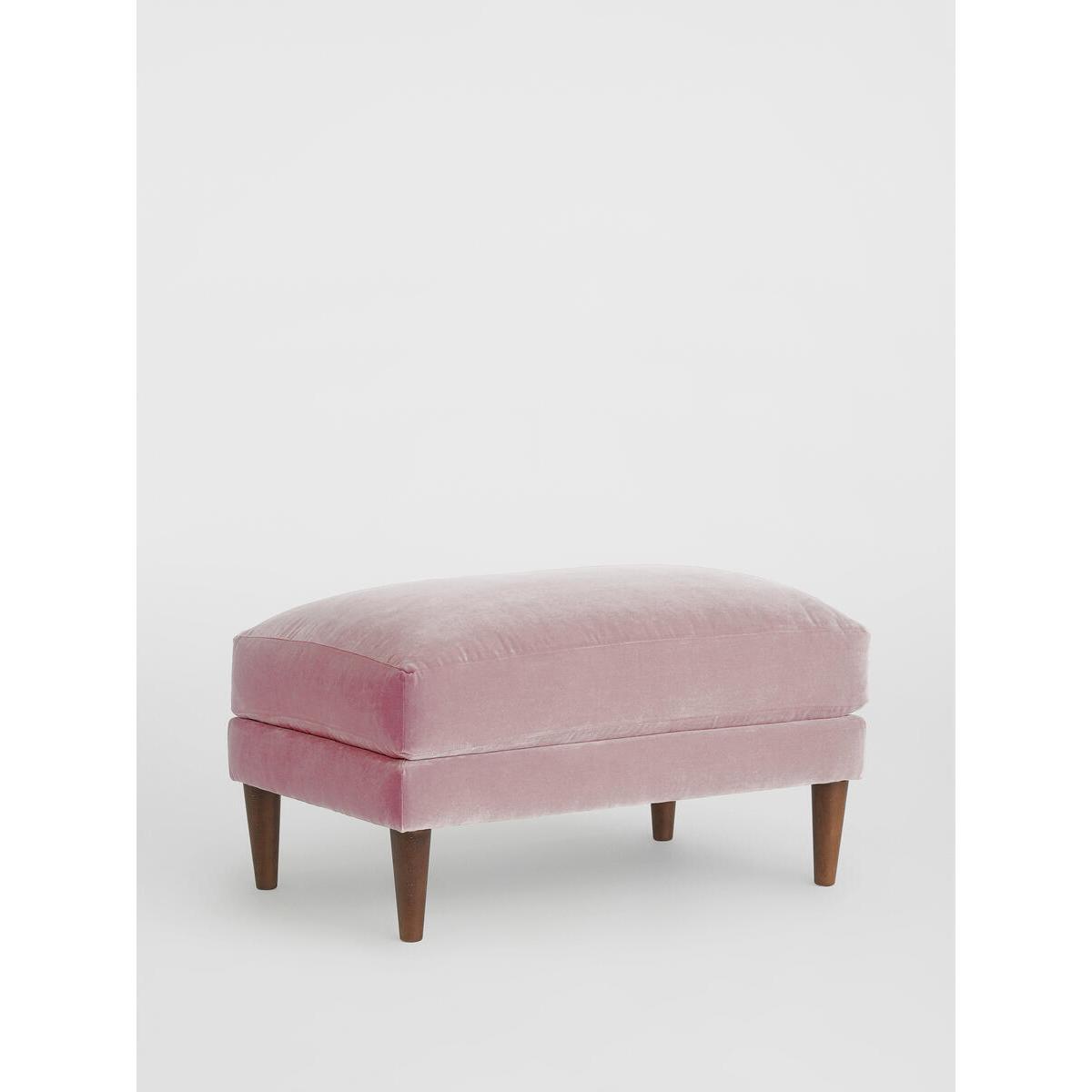 I love the lush velvet and soft rosewater shade of this footstool - it instantly elevates a neutral or pastel-toned living space. It works well in a variety of interiors, from contemporary minimalism to more traditional schemes, thanks to its versatile colour and texture. For styling tips, try pairing it with a cosy sofa or layering it with textured cushions for added visual interest. It’s also practical as a footrest or additional seating, and because of its understated elegance, it can serve as a statement piece without overwhelming the room. To keep it looking pristine, avoid direct sunlight to maintain the velvet’s lush appearance and consider adding a velvet or fabric protector for longevity.