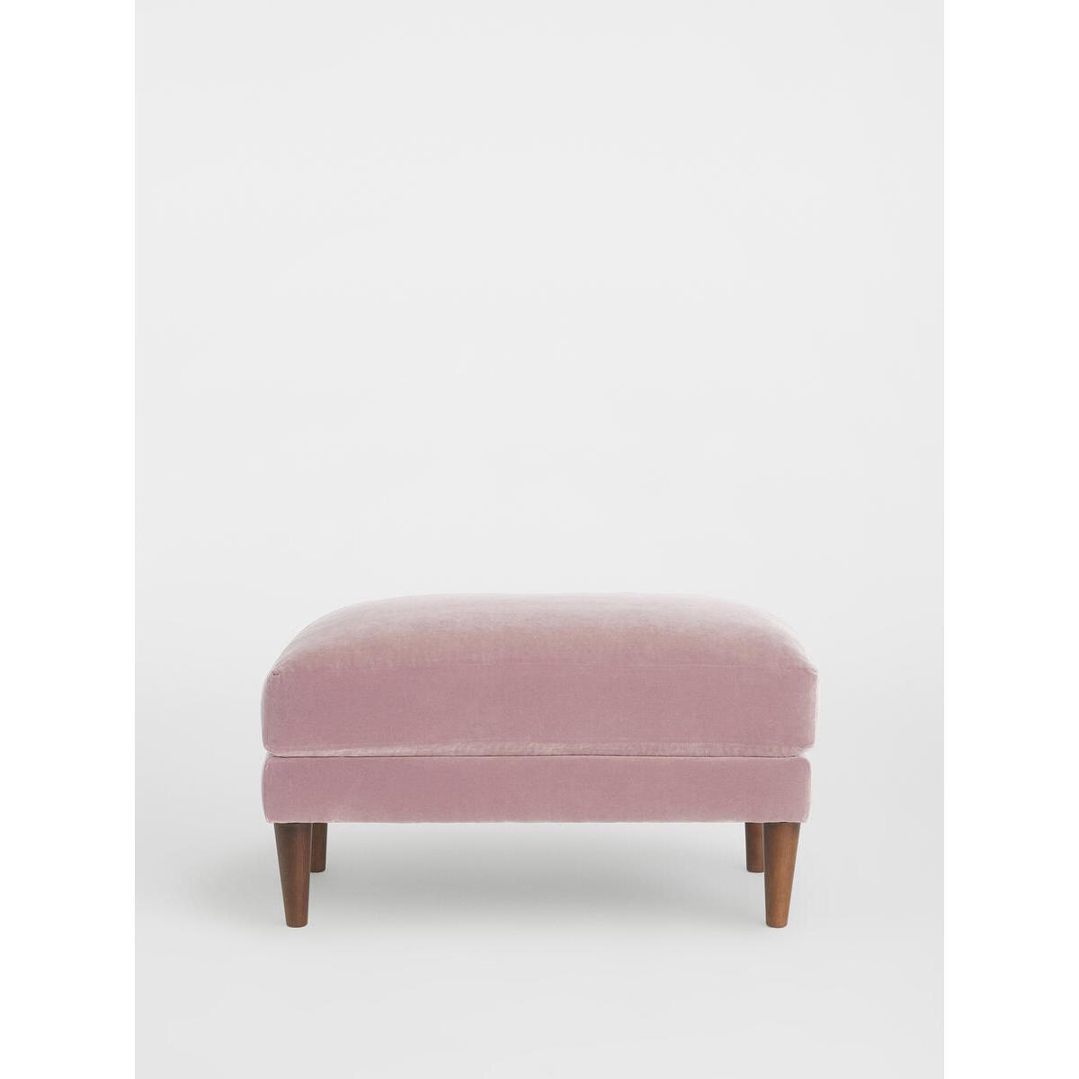 Handcrafted in North Carolina, the velvet Reya ottoman is inspired by the furniture at DUMBO House in Brooklyn. Slender, turned walnut legs lift it off the floor to create a sense of space, while a fibre-wrapped foam cushion provides added comfort. Use it as an extra seat for guests, or as a footstool. Velvet ottoman FSC-certified, Kiln-dried ply frame Turned solid walnut legs Handmade in North Carolina, USA Fibre-wrapped foam cushion Inspired by DUMBO House