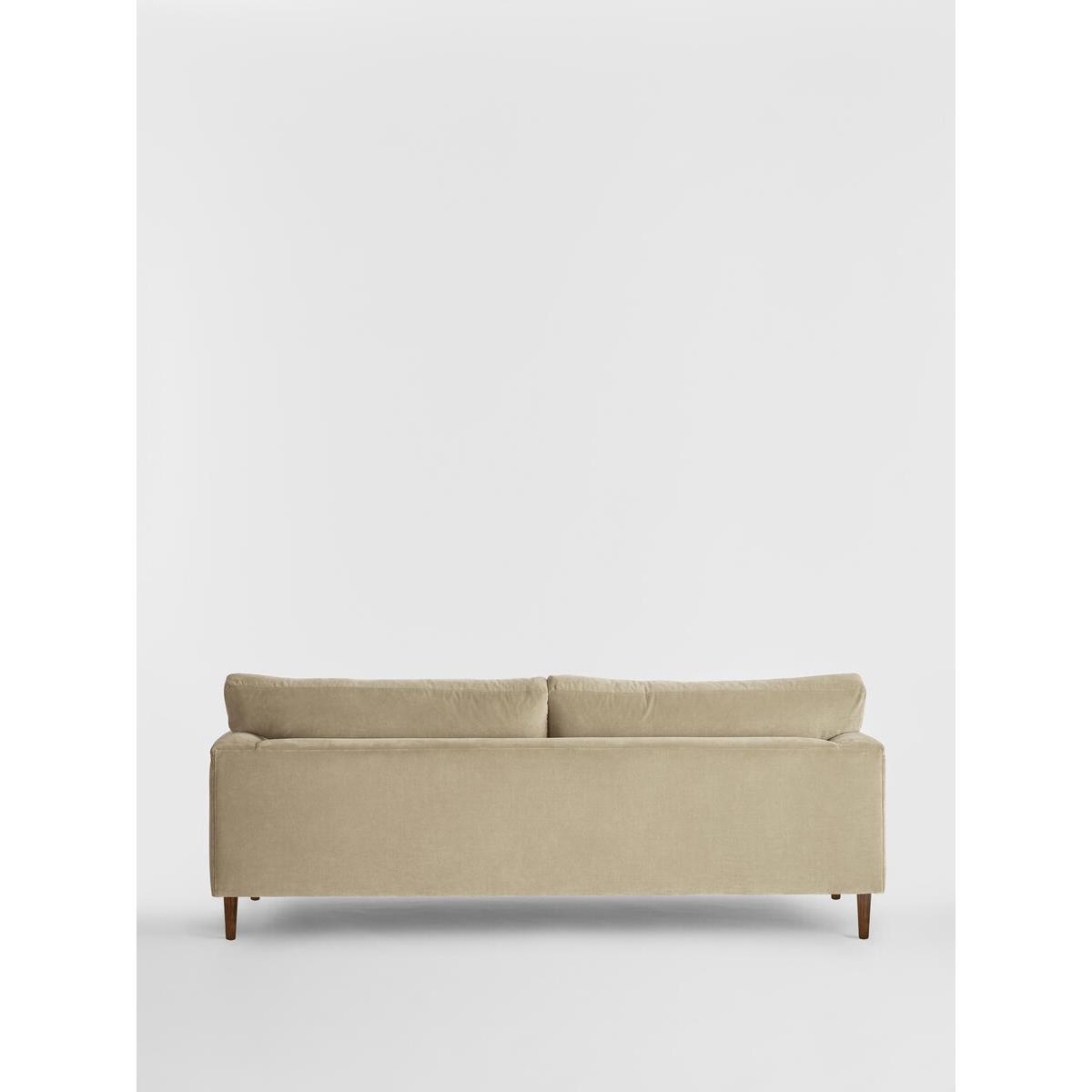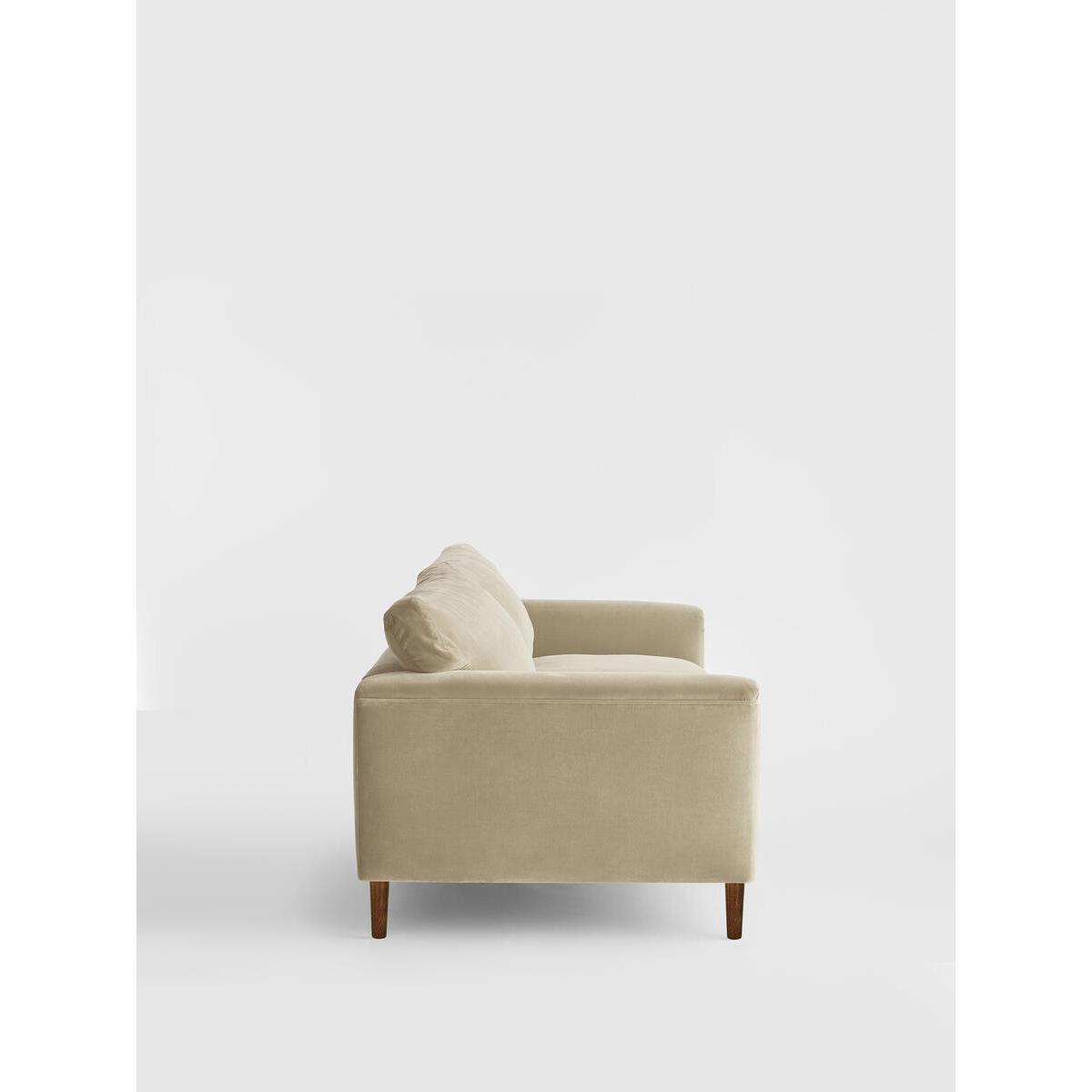 With its subtle, curved corners and cushioned armrests, Reya's Mid Century style is influenced by the furniture at DUMBO House in. Brooklyn. Slender turned beech legs lift it off the floor to createa sense of space, while the cushions have a foam core that'swrapped in feather and down making them extra comfy and robust. Handcrafted in Long Eaton, Derbyshire by a family firm of furnituremakers, each sofa bears the signature of the specialist upholstererwho made it. Mid Century sofa with cushioned armrests. Solid hardwood Scandinavian birch frame. Turned solid beech legs. Hand made in England. Foam wrapped feather and down cushions. Reversible cushions for durability and longevity. Inspired by DUMBO House.