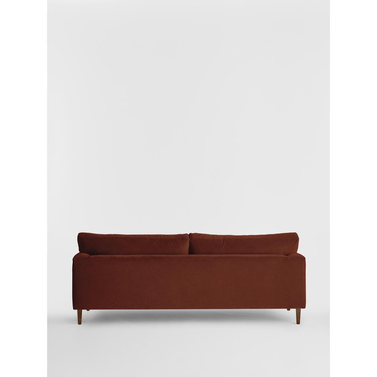 With its subtle, curved corners and cushioned armrests, Reya's Mid Century style is influenced by the furniture at DUMBO House in. Brooklyn. Slender turned beech legs lift it off the floor to createa sense of space, while the cushions have a foam core that'swrapped in feather and down making them extra comfy and robust. Handcrafted in Long Eaton, Derbyshire by a family firm of furnituremakers, each sofa bears the signature of the specialist upholstererwho made it. Mid Century sofa with cushioned armrests. Solid hardwood Scandinavian birch frame. Turned solid beech legs. Hand made in England. Foam wrapped feather and down cushions. Reversible cushions for durability and longevity. Inspired by DUMBO House.