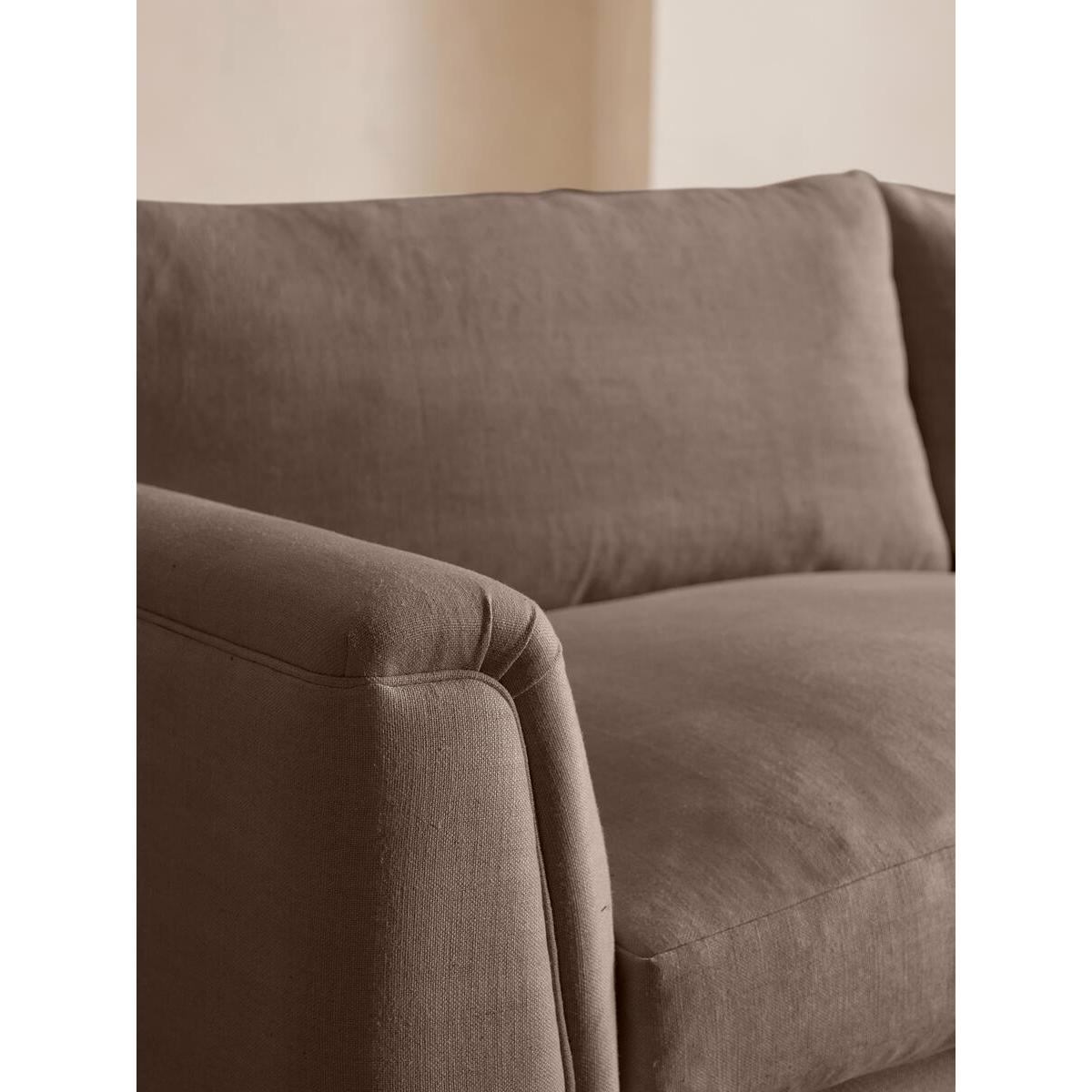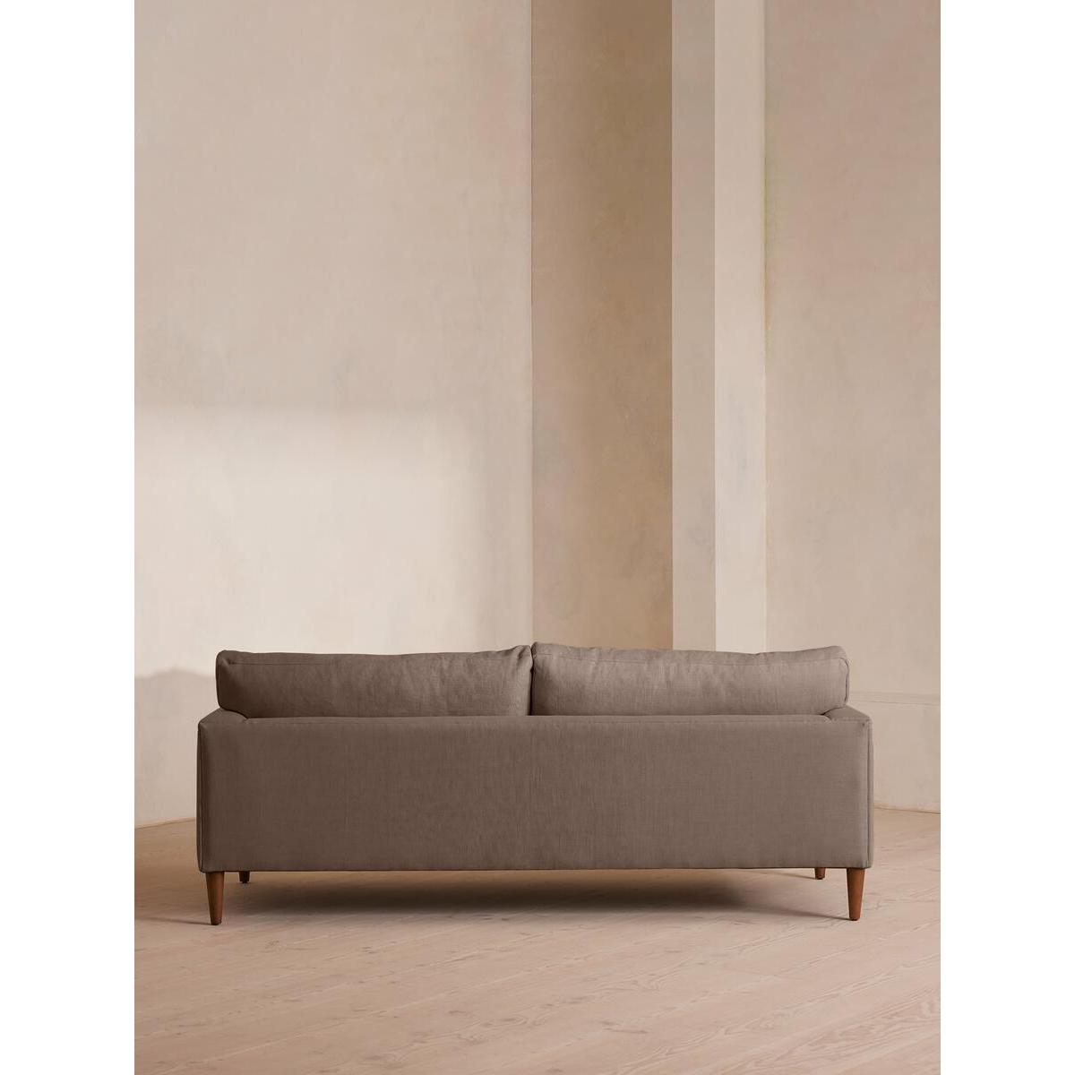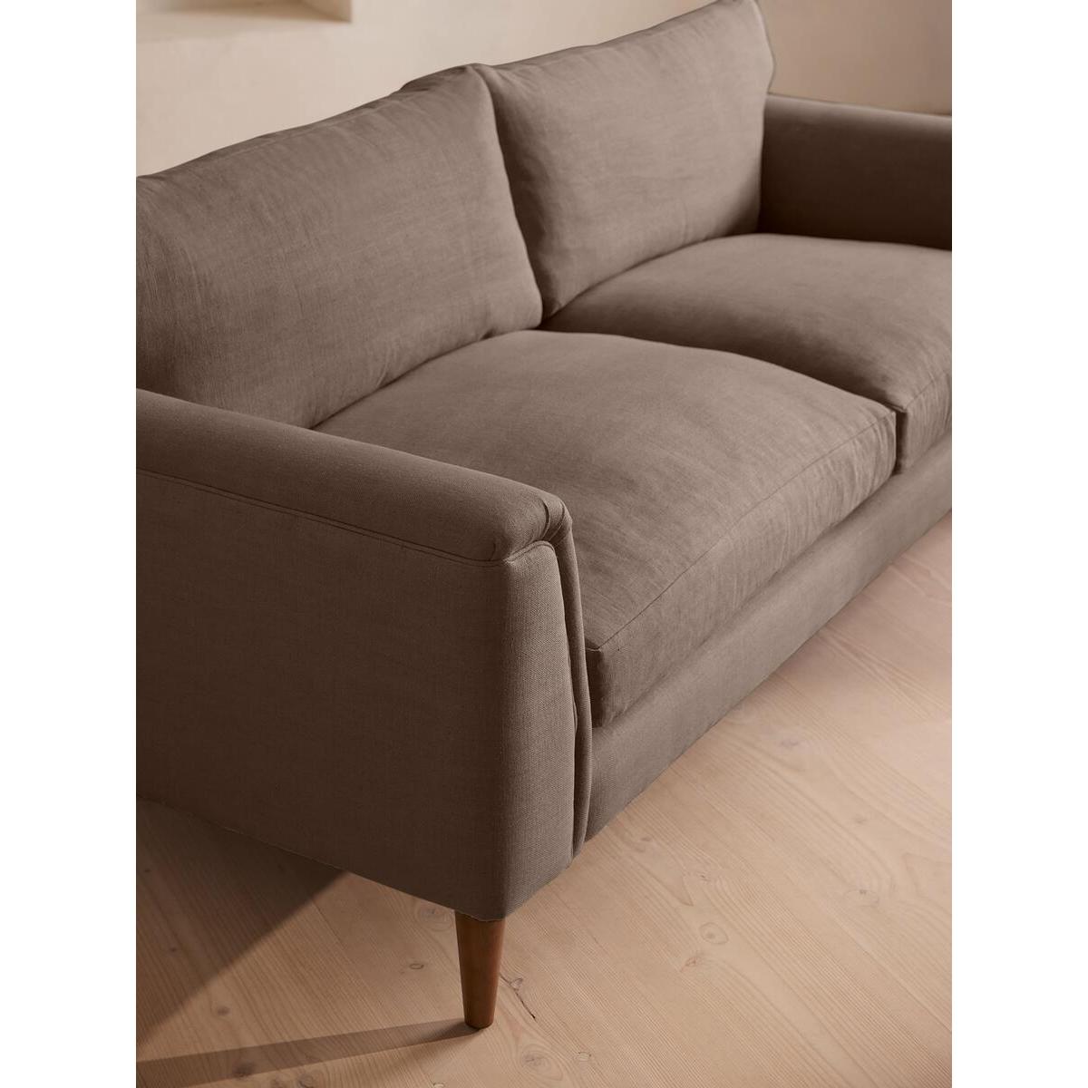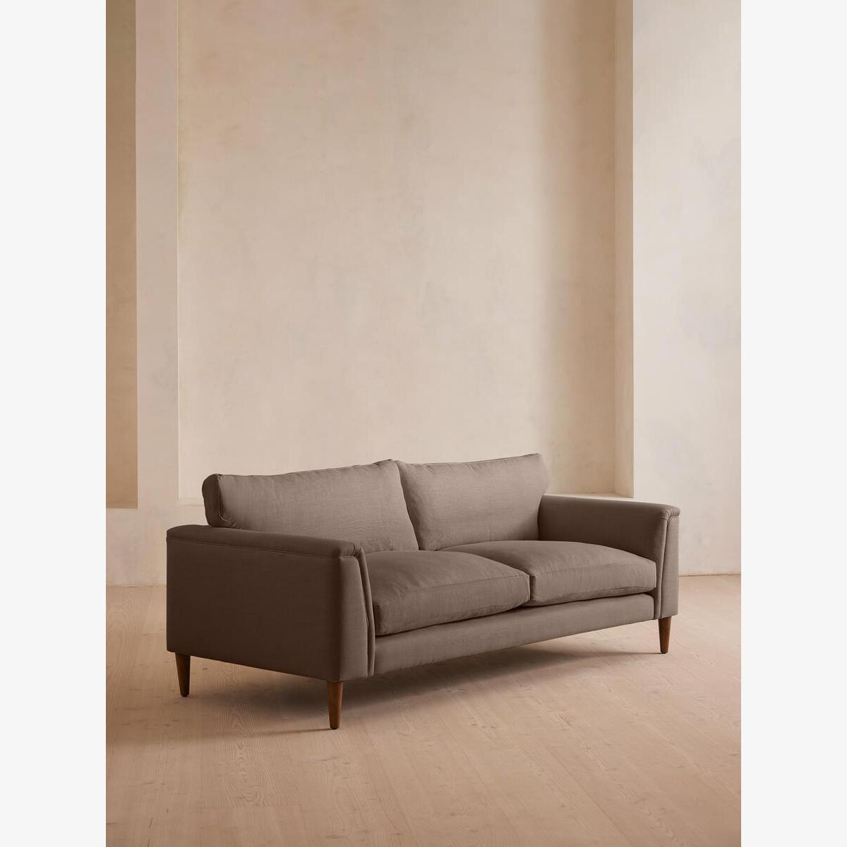 I love this sofa for its versatile, neutral tone and sleek, simple silhouette, making it a great anchor piece in both contemporary and traditional interiors. The linen fabric adds a soft, approachable texture that pairs well with both patterned and solid accessories. It works particularly well in minimalist, Scandi, or even mid-century styled spaces, where its understated elegance can really shine. Practical tips include layering with cosy throws and cushions in contrasting textures or colours to add personality, and pairing it with a statement coffee table or sideboard for a balanced, functional look. Its classic shape and muted hue make it adaptable, so it can easily evolve with your decor over time.