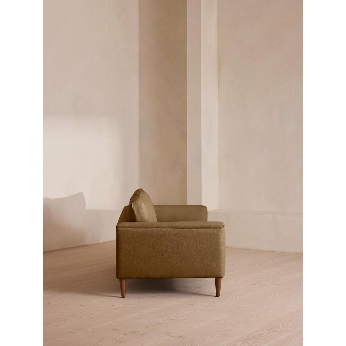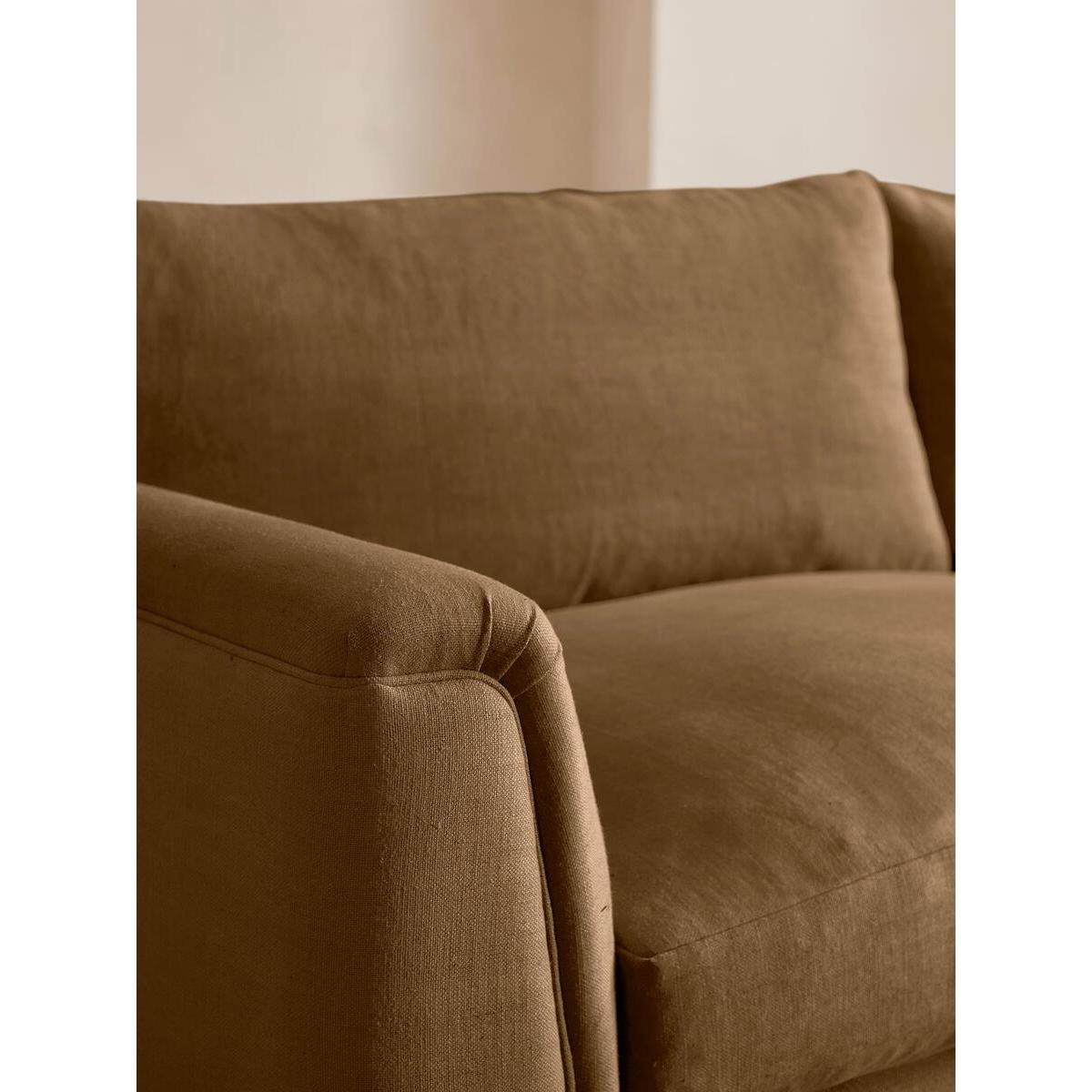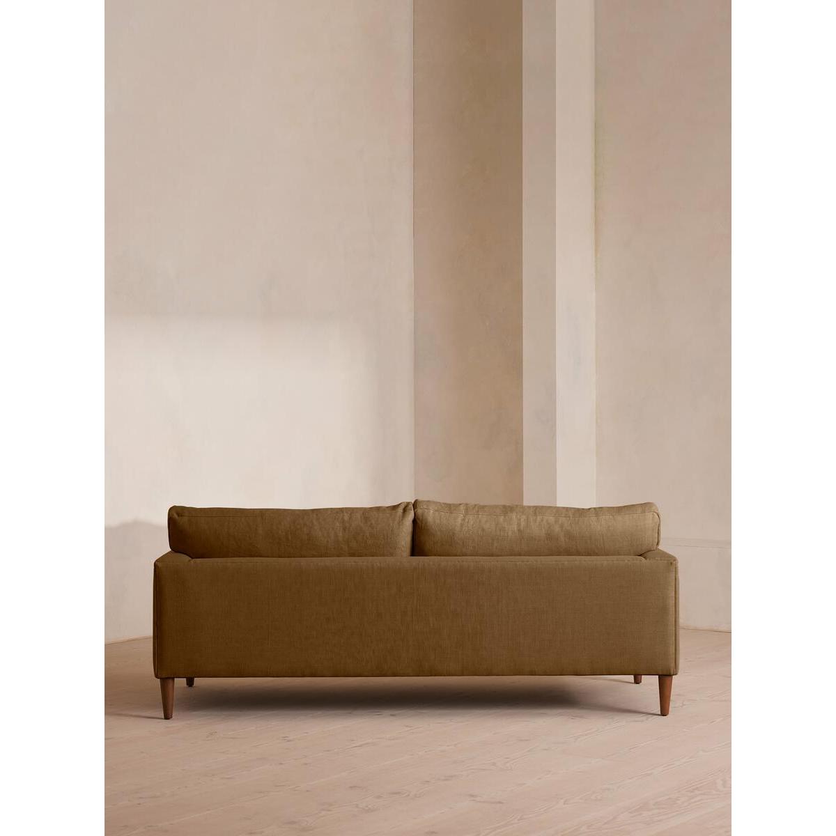 I love this three-seater sofa for its versatile and timeless appeal. The linen fabric in ochre adds warmth and a hint of colour, making it an excellent statement piece in both modern and more traditional interiors. It works well in neutral-toned living rooms, where it can be complemented with textured cushions and layered throws, or in Scandinavian-inspired spaces for a pop of earthy hue. Practical styling tips include pairing it with minimalist coffee tables and soft lighting to highlight its simple elegance. Its sleek profile and subtle wooden legs make it adaptable, ensuring it remains a focal point without overwhelming a room.