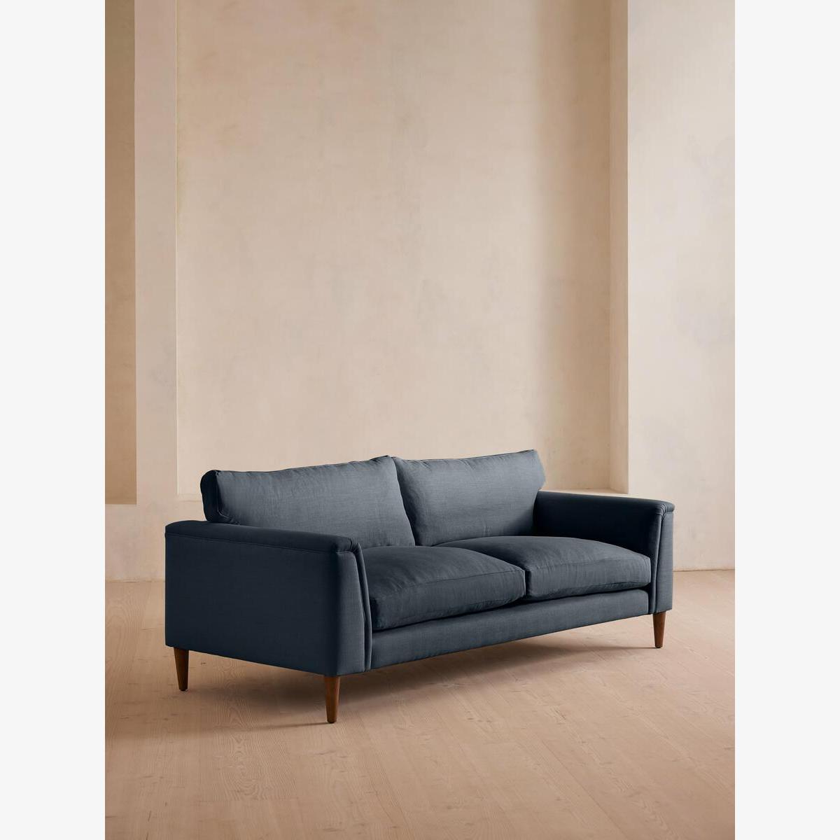 Reya Three Seater Sofa, Linen, Prussian Blue