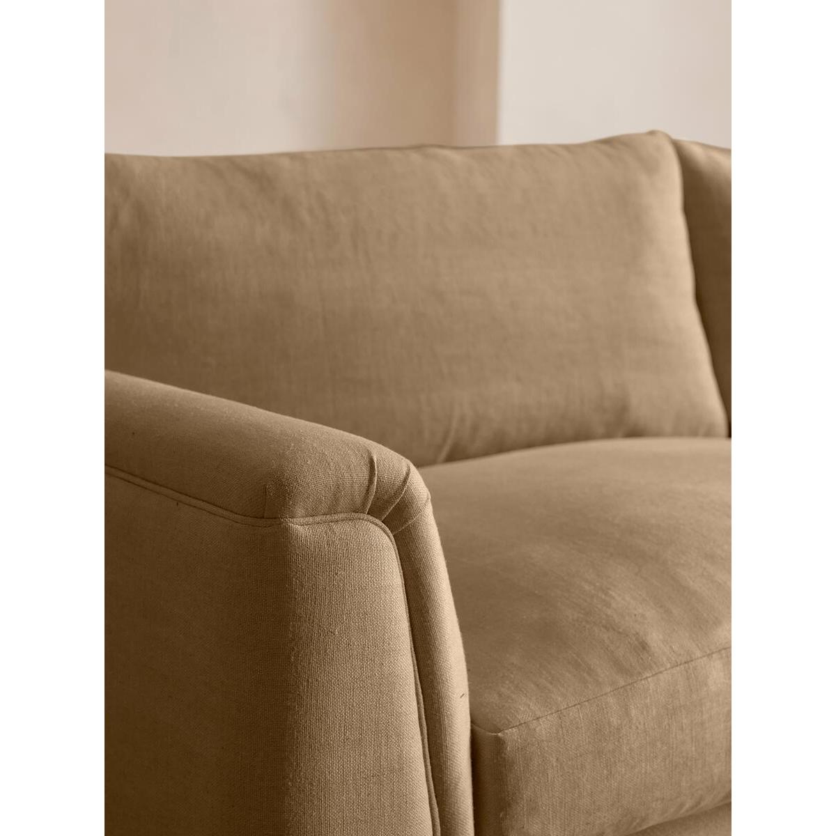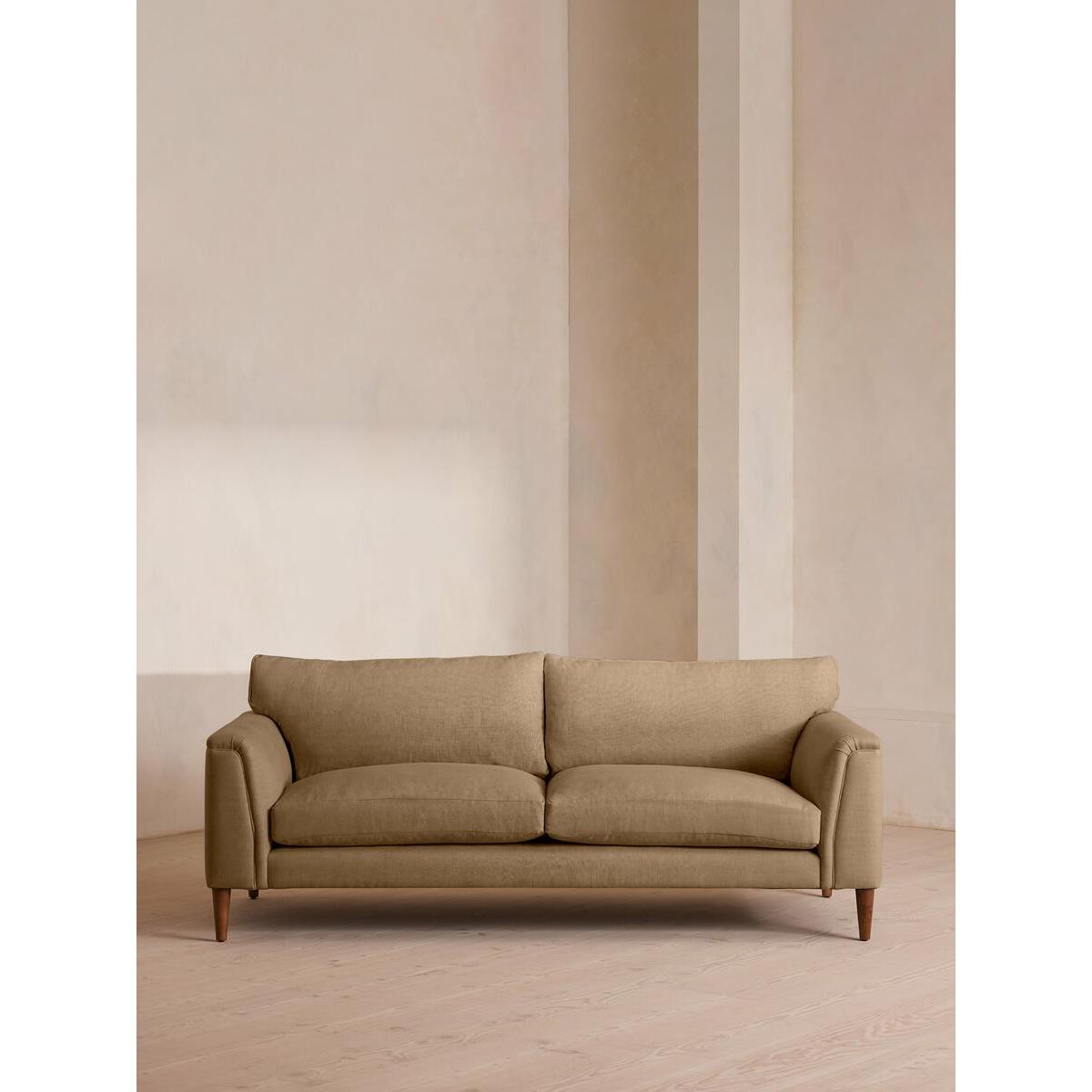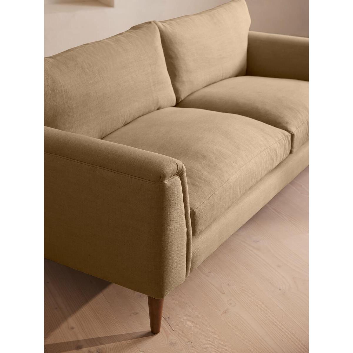 Our Reya sofa invites you to sink into its comfortable, cushioned curves for only relaxing moments in mind. The mid-century design takes inspiration from similar interiors seen throughout DUMBO House, with rich velvet upholstery and turned walnut legs that lift this sofa off the floor creating the illusion of more space. Pair with our Reya ottoman and loveseat for the full look. Three-seater sofa Upholstered in cotton velvet Available in other colours and fabrics Mid-century design Cushioned armrests Slender turned walnut legs Foam core feather-wrapped seat cushions Inspired by DUMBO House, Brooklyn