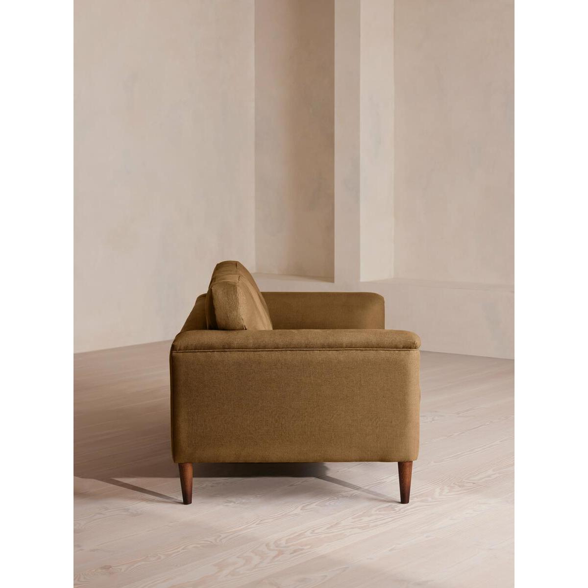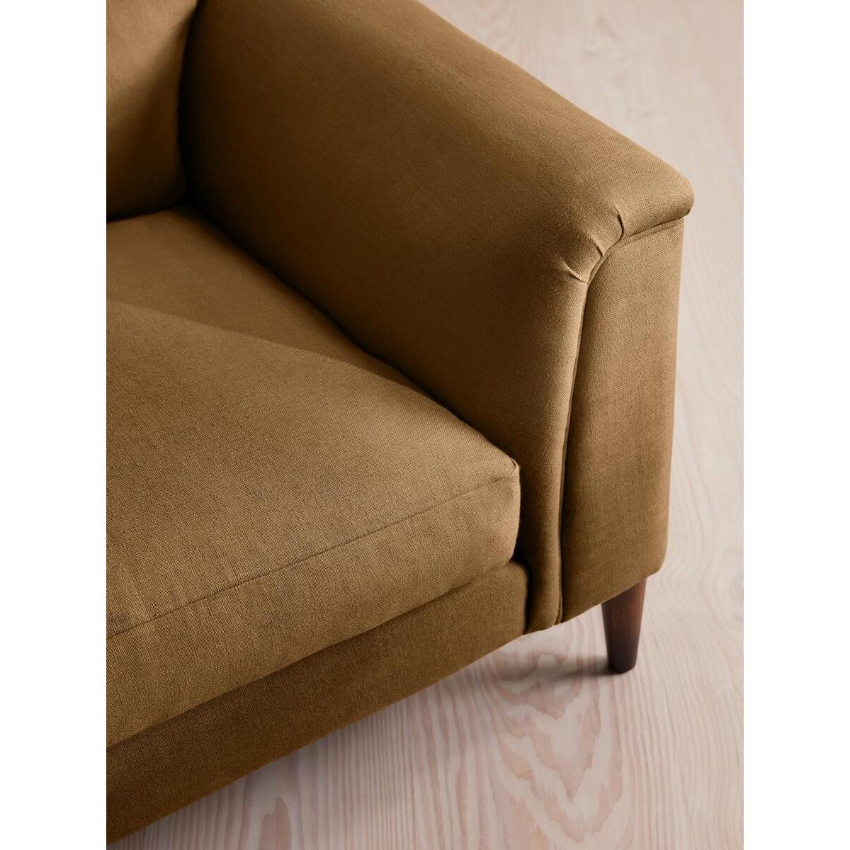 Our Reya sofa invites you to sink into its comfortable, cushioned curves for only relaxing moments in mind. The mid-century design takes inspiration from similar interiors seen throughout DUMBO House, with linen upholstery and turned walnut legs that lift this sofa off the floor creating the illusion of more space. Pair with our Reya ottoman and loveseat for the full look. Three-seater sofa Upholstered in 100% linen Available in other colours and fabrics Mid-century design Cushioned armrests Slender turned walnut legs Foam core feather-wrapped seat cushions Inspired by DUMBO House, Brooklyn