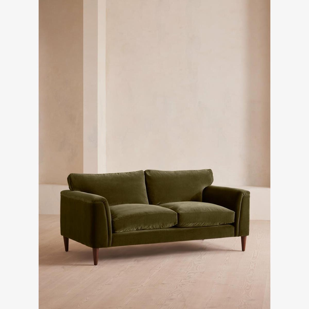 Reya Two Seater Sofa, Velvet, Olive