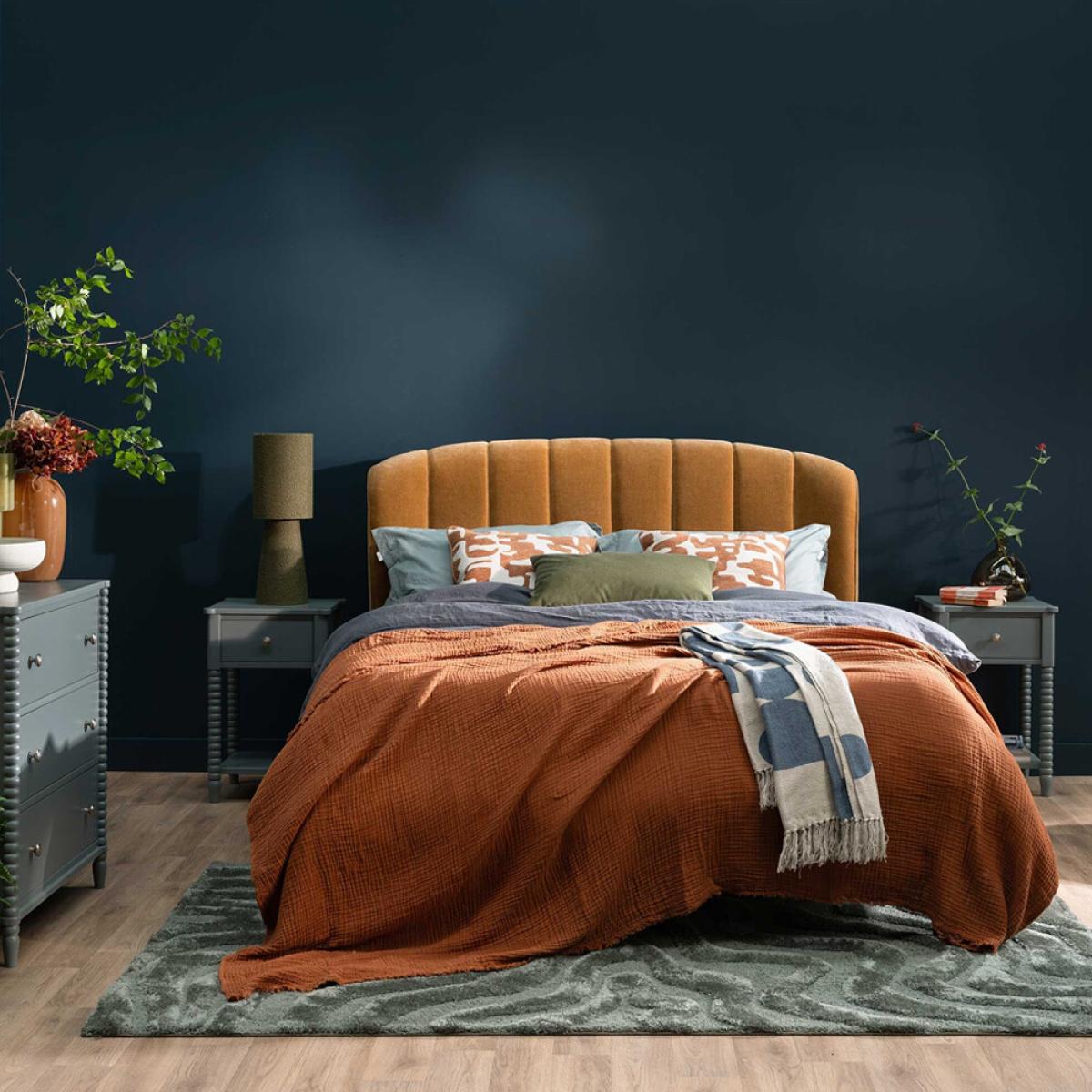 I love this bedframe for its versatile style and understated elegance. The grey fabric finish gives it a contemporary yet timeless appeal, making it easy to incorporate into a range of interiors from modern minimalism to cozy traditional schemes. It's particularly effective in bedrooms aiming for a soft, neutral palette, as it adds texture and warmth without overwhelming the space. For practical styling, consider pairing it with crisp white bedding and layered textiles like throws and cushions in muted tones or subtle patterns. Its clean lines and understated profile also make it a great base for accessorising with statement bedside lamps, artwork, or a textured rug to create a well-balanced and inviting bedroom aesthetic.