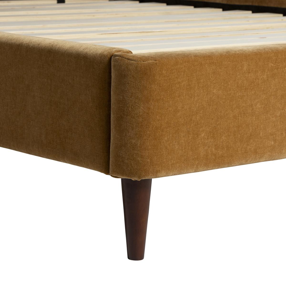 The elegant Reyes Double Bed Frame, upholstered in rich brown fabric made from 100% polyester, combines style and durability. The sturdy eucalyptus wood frame and plywood bed slats ensure lasting support and stability. The headboard and sides are generously filled with foam and fiber, offering enhanced comfort and a plush, inviting feel. The bed is elevated by rubberwood feet with a lacquer finish, adding a touch of sophistication and durability. Perfectly blending functionality and contemporary design, this bed is a versatile centerpiece for any modern bedroom.