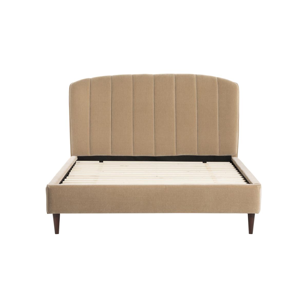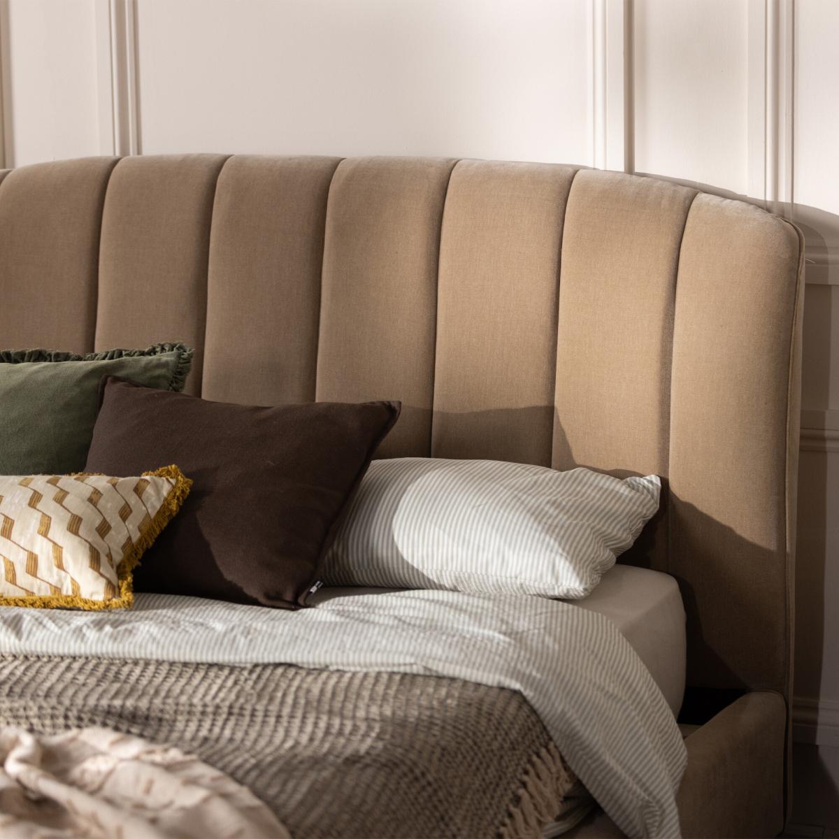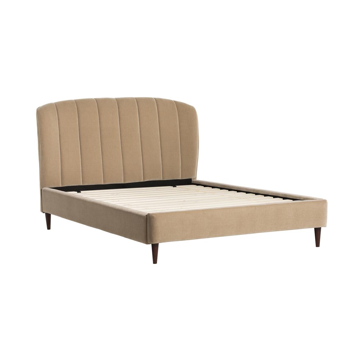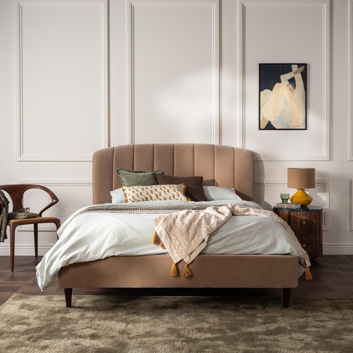 The elegant Reyes King Bed Frame, upholstered in soft light brown fabric made from 100% polyester, offers a refined balance of style and durability. Its robust eucalyptus wood frame and supportive plywood slats provide reliable strength and long-lasting stability. Generously cushioned with foam and fibre, the headboard and side panels deliver superior comfort and a plush, welcoming appearance. The bed is elevated on lacquer-finished rubberwood feet, adding both sophistication and sturdy support. Seamlessly blending modern design with everyday functionality, this bed serves as a versatile and stylish focal point for any contemporary bedroom.