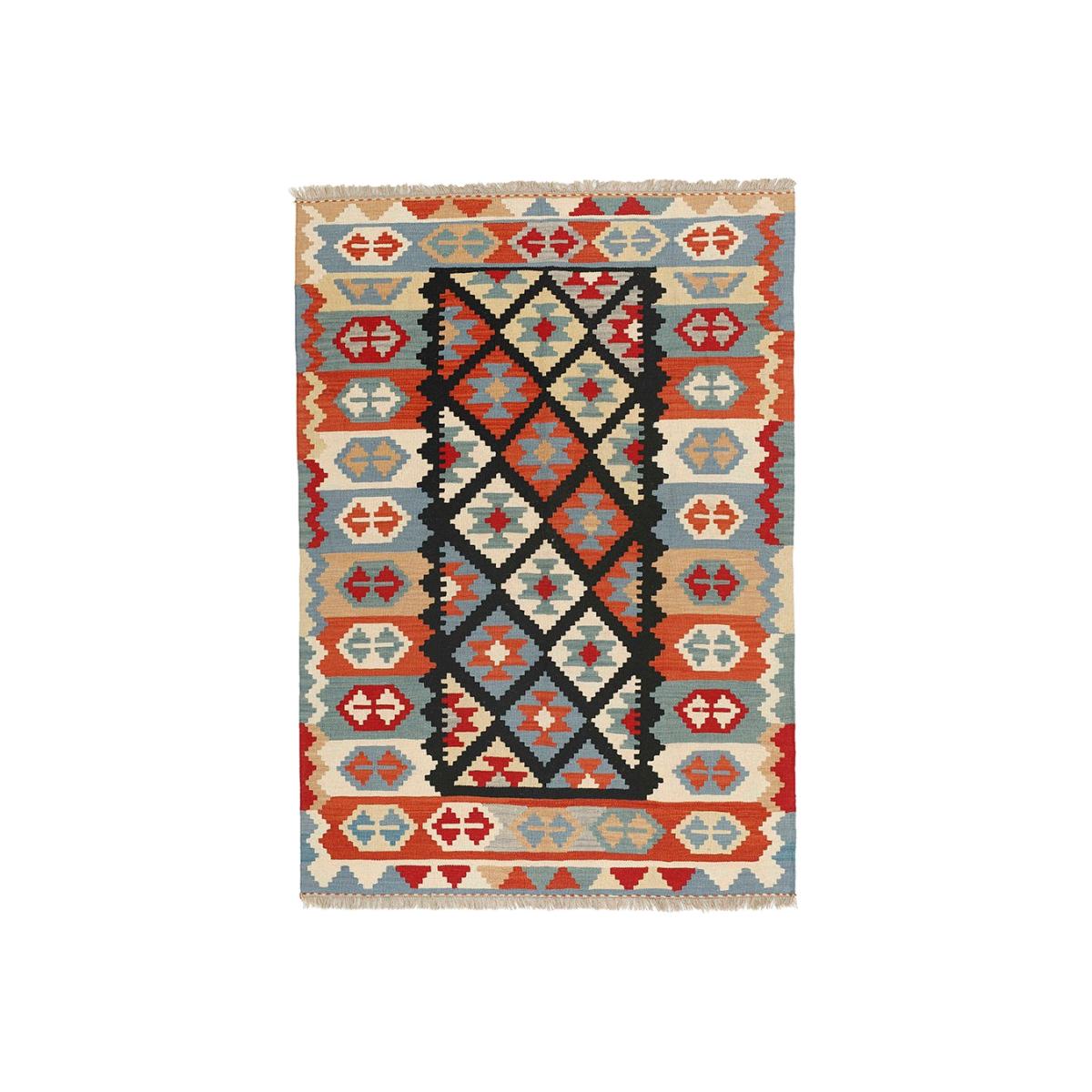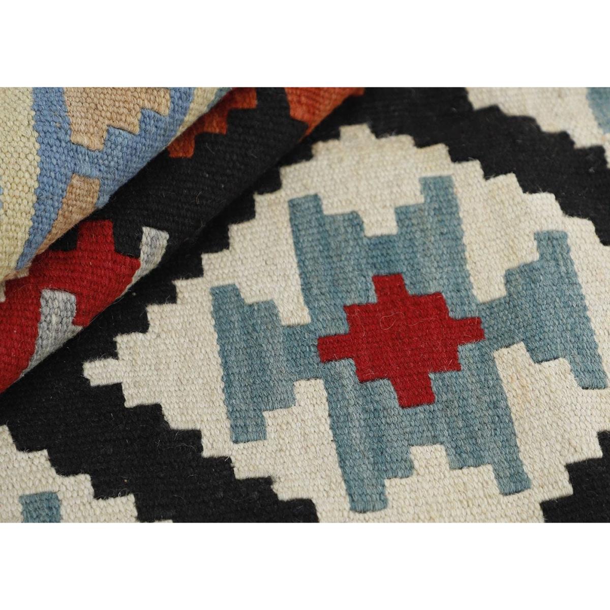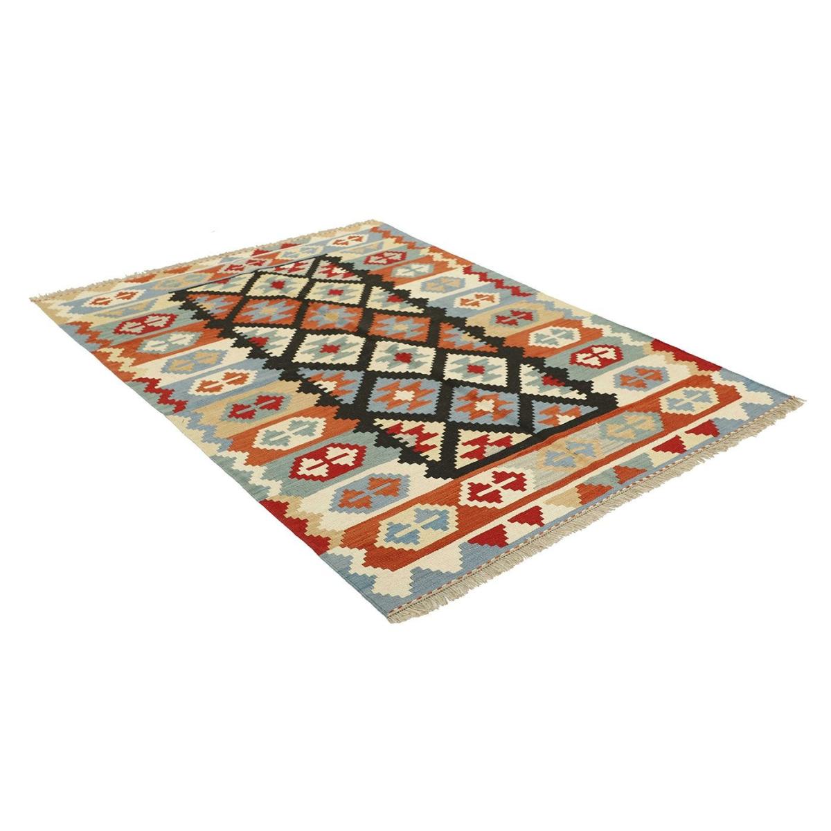 Afghan Kelim rugs are hand knotted by Turkmens in northern Afghanistan. The designs on kelim rugs are created by carefully weaving bright tones, shades and colours in a flatweave style. Durable and hard wearing.