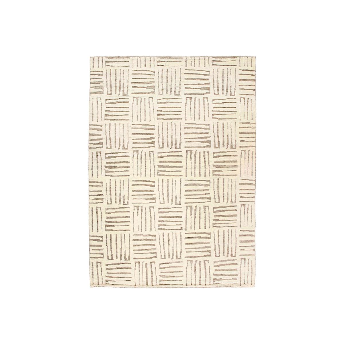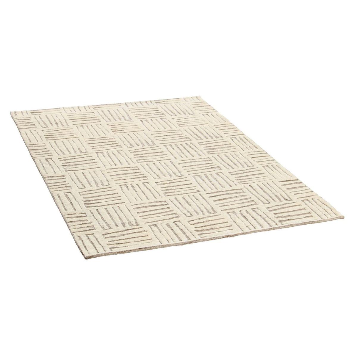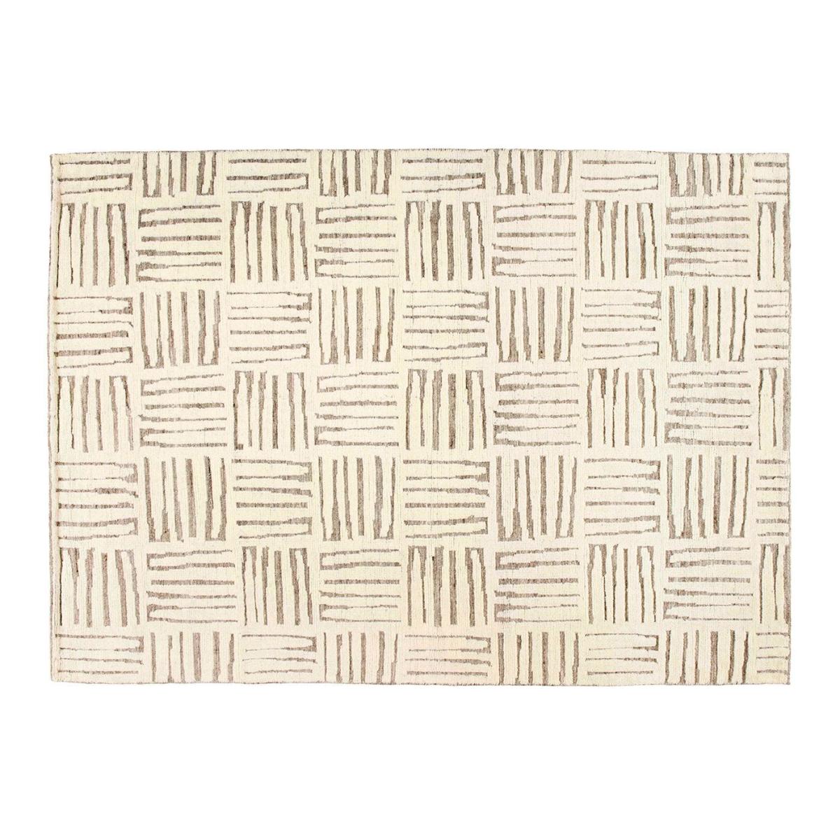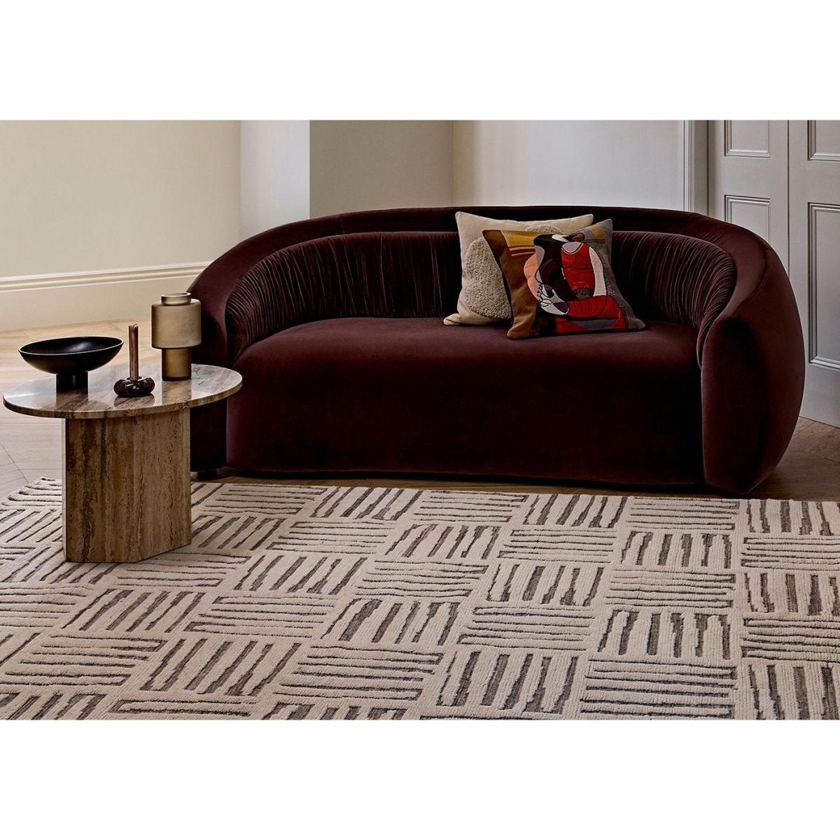 I love this bigger rug for its understated geometric pattern, which makes it very versatile for both modern and minimal interiors. It works particularly well in open-plan living areas or under a dining table, where its neutral tones can anchor the space without overpowering it. To style it effectively, consider pairing it with natural textures like wood or linen, and keep furniture in a contrasting colour or darker shade to add depth. Its size makes it ideal for creating a cosy zone in larger rooms, and it’s practical for high-traffic areas thanks to its durable look. A simple yet stylish choice that can easily complement a variety of interior schemes.