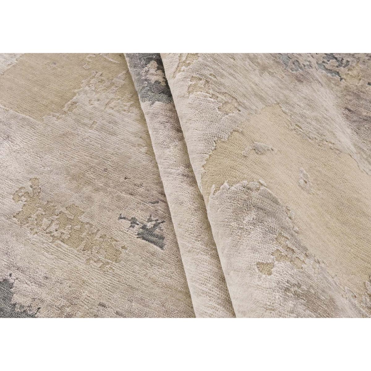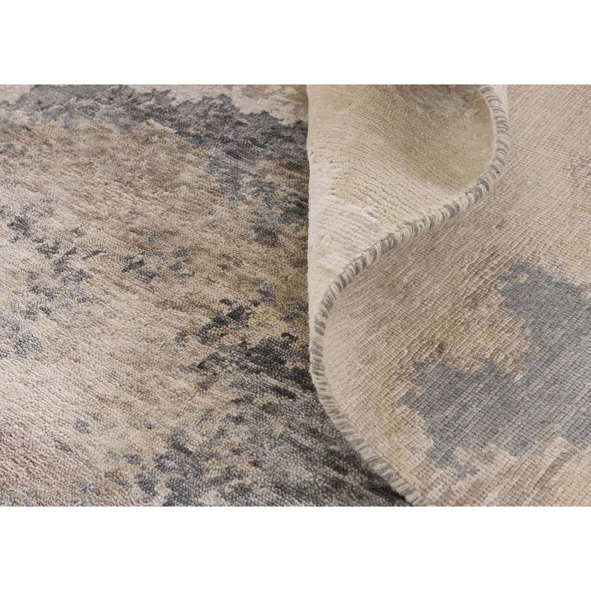 Hand-knotted in India with a blend of premium-quality wool and viscose, the Vanity design offers a luxurious, silky touch that enhances the natural warmth of its woollen base. Storm is a blend of warm naturals and metallic tones, designed to bring life, beauty, and abstract harmony to your space.