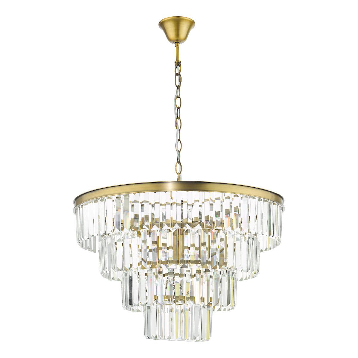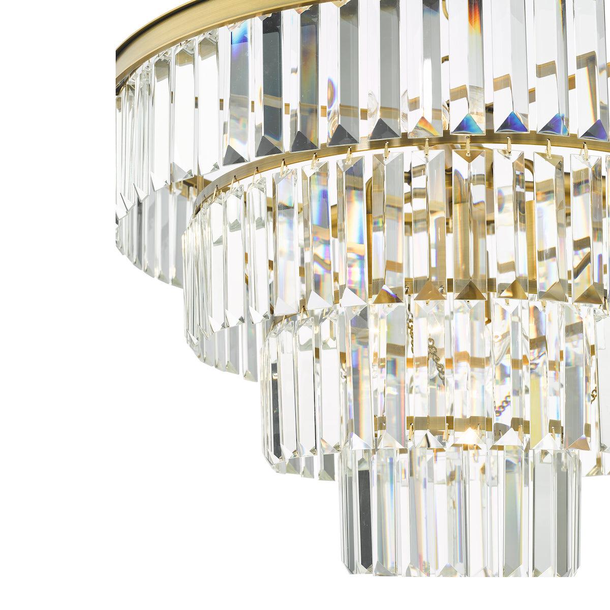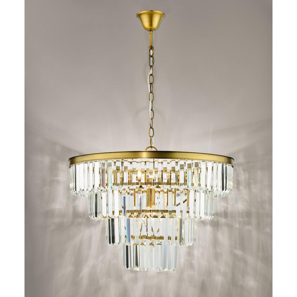 With four stepped tiers of bevelled crystals suspended from a bronze frame, the Rhapsody 6-Light Natural Brass Chandelier combines luxury materials with grand proportions to create a real statement wherever it is placed. Supplied with 2 metres of cable and matching bronze chain, Rhapsody can be adjusted from just under 60cm to just over 2.5 metres, making it as versatile as it is captivating. Height is adjustable at the point of installation (62-258cm)